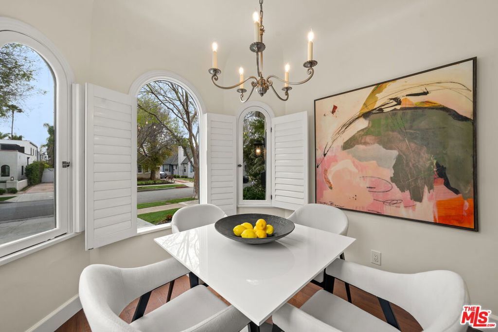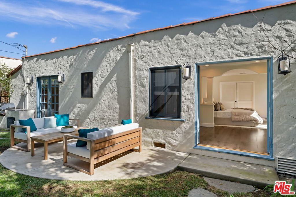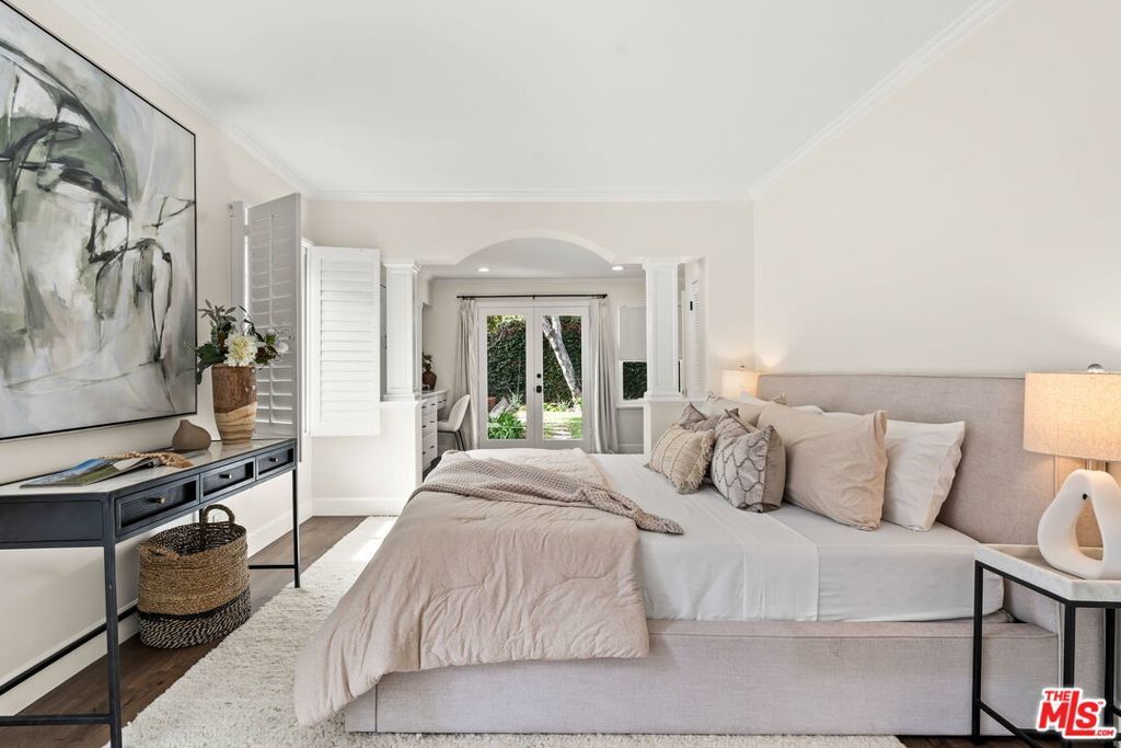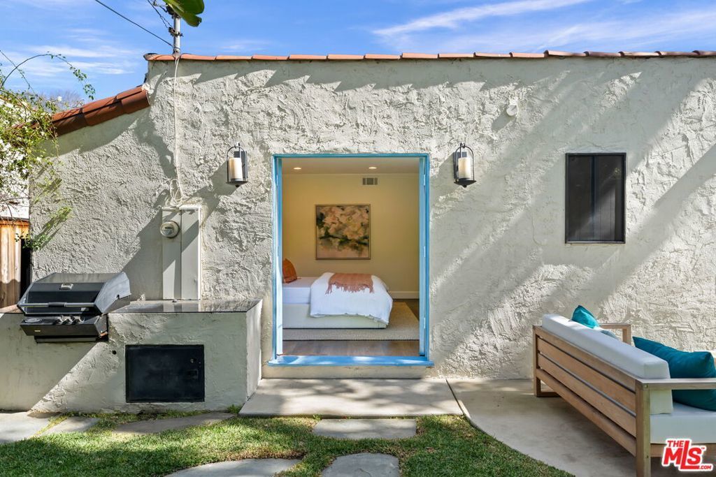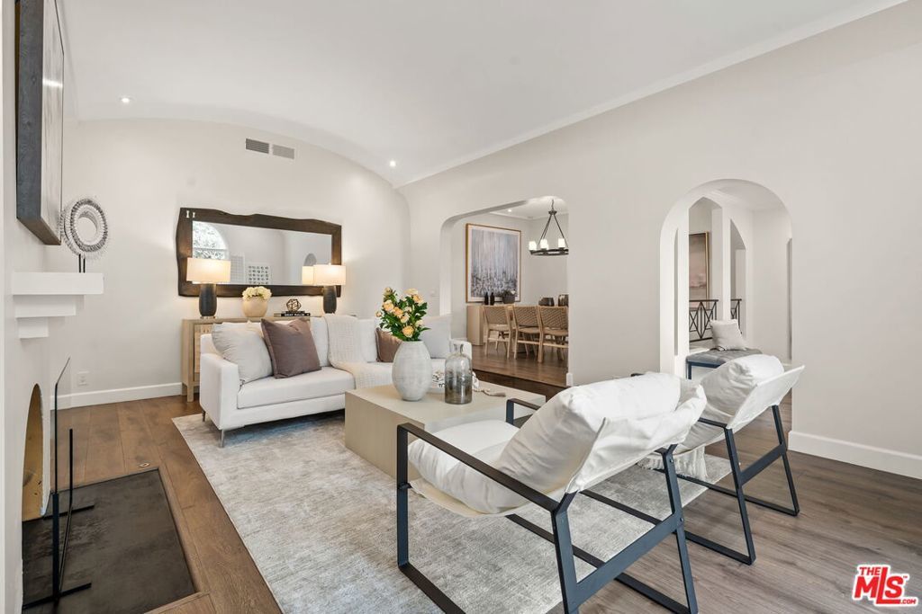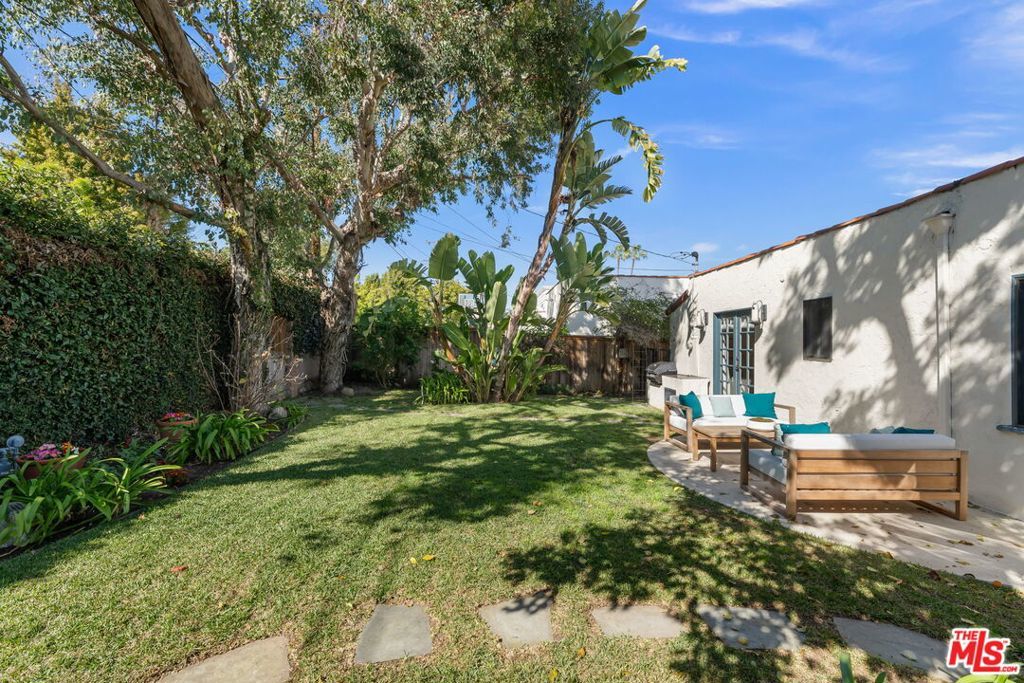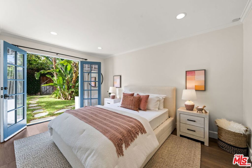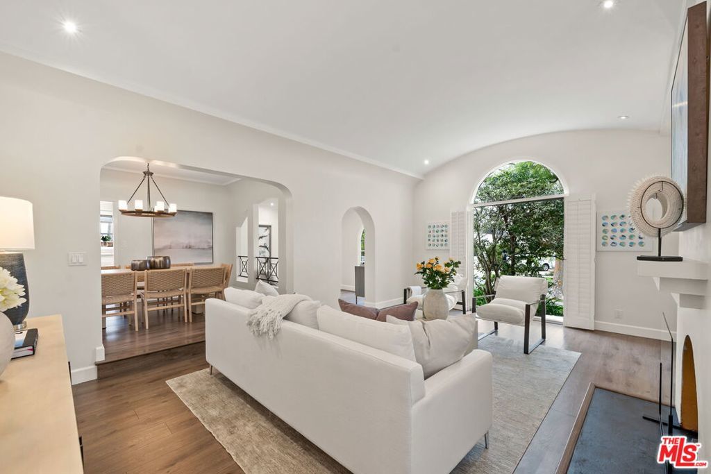 Welcome to this gorgeous 4 bed, 3 bath Spanish home in the heart of Beverly Hills. A formal entry opens to a spacious living room with a barrel ceiling, fireplace, and high-arched picture window that fills the space with natural light. The dining room leads to a remodeled kitchen with stone counters, stainless steel appliances, and a separate breakfast room featuring built-ins and sunny picture windows in this charming home. An exceptional highlight is the enormous primary bedroom, complete with a versatile sitting area ideal for dressing, a home office, or gym, and an en suite bath with travertine tiles and a granite countertop. Both the primary suite and rear bedroom open through classic French doors to a generous grassy backyard with a built-in BBQ, creating seamless indoor-outdoor flow for relaxing or entertaining. Additional features include a laundry room, ample storage, and wood flooring throughout. The 4th bedroom's closet was modified to create a den and can easily be reconfigured. Located just blocks from Horace Mann Elementary School and Beverly Vista Middle School within the Beverly Hills Unified School District, and close to world-class shopping, dining, markets, Cedars-Sinai Medical Center, and places of worship. Don't miss the opportunity to own this desirable gem on a peaceful residential street in the heart of Beverly Hills.