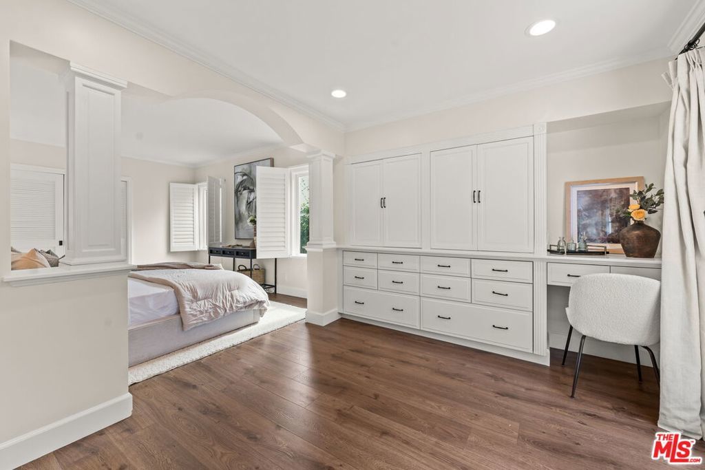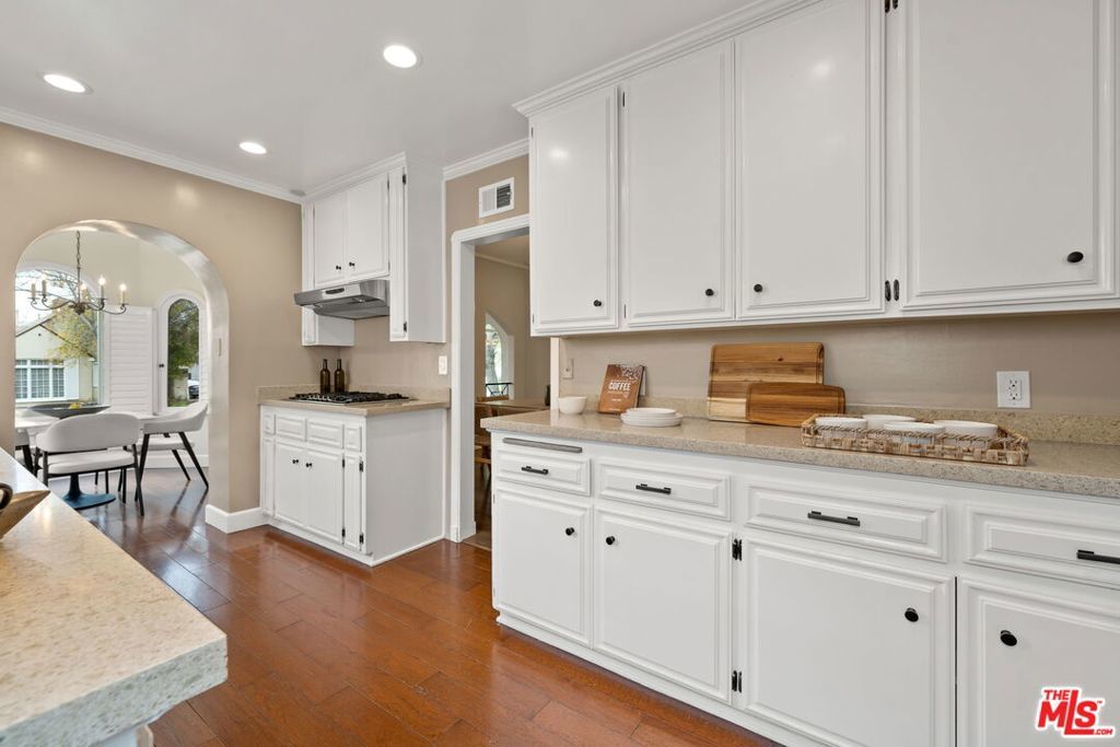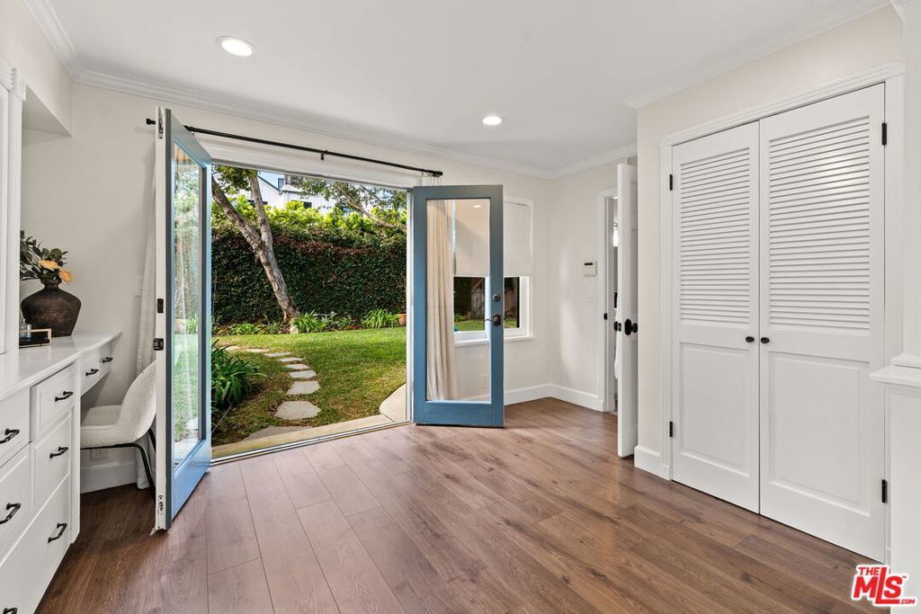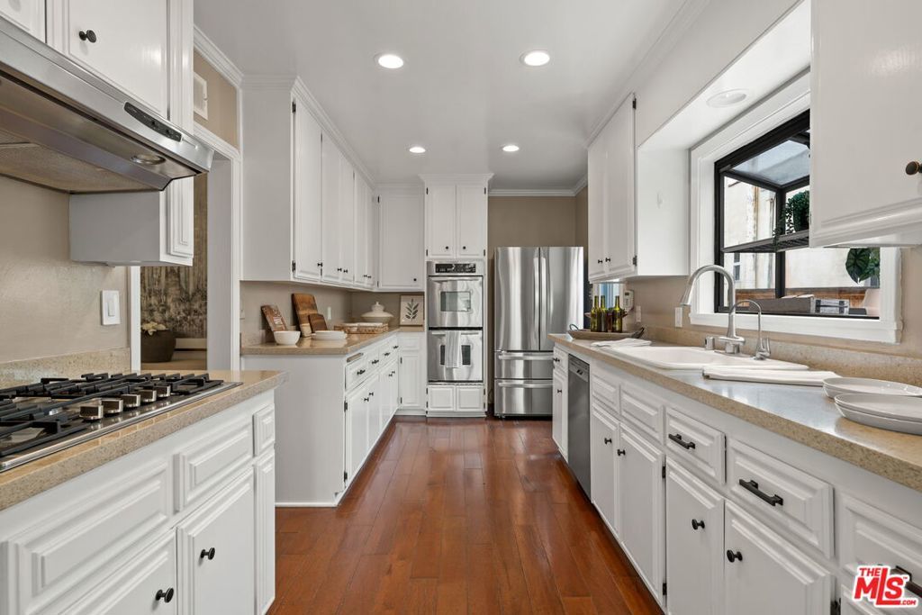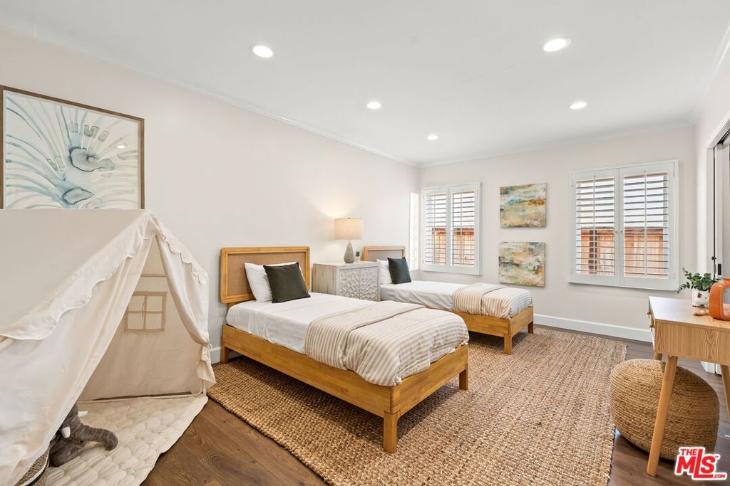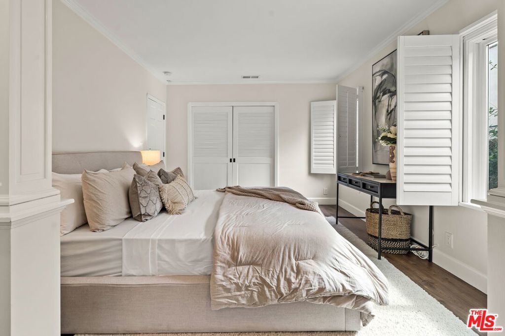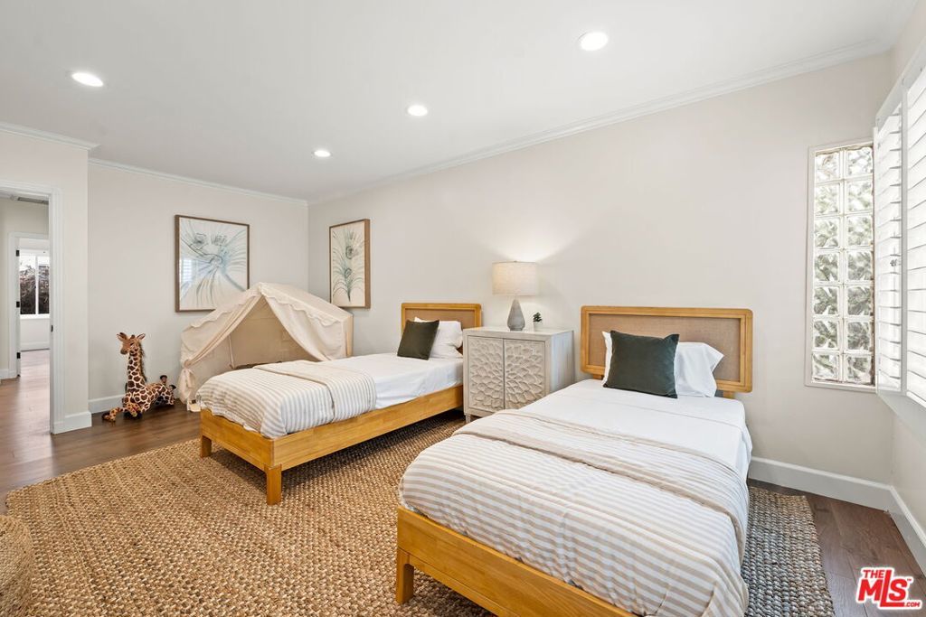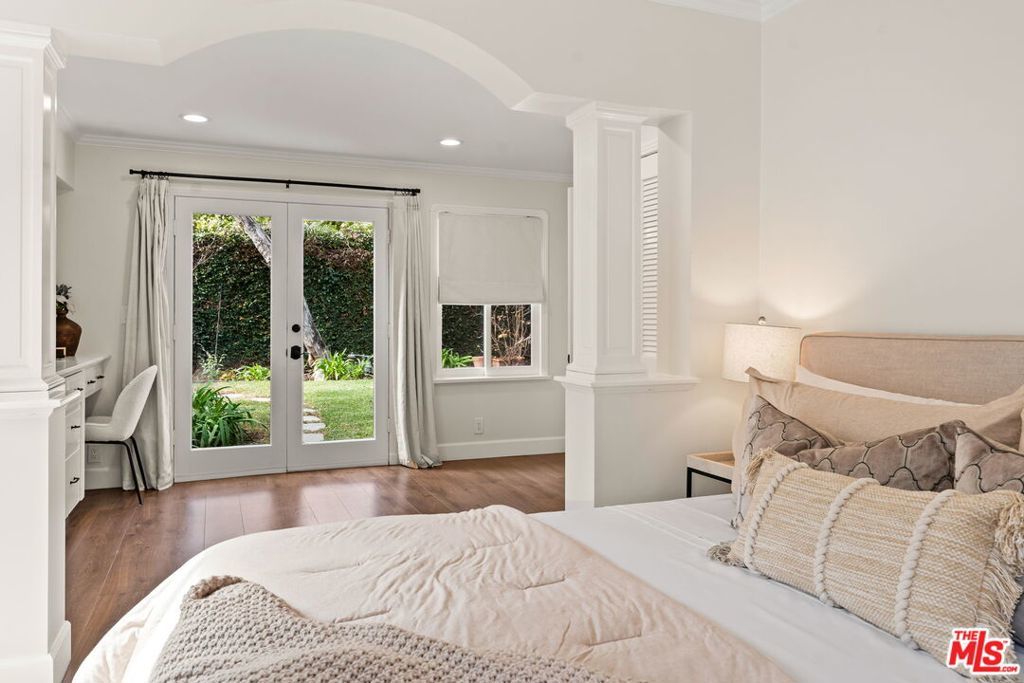 Welcome to this gorgeous 4 bed, 3 bath Spanish home in the heart of Beverly Hills. A formal entry opens to a spacious living room with a barrel ceiling, fireplace, and high-arched picture window that fills the space with natural light. The dining room leads to a remodeled kitchen with stone counters, stainless steel appliances, and a separate breakfast room featuring built-ins and sunny picture windows in this charming home. An exceptional highlight is the enormous primary bedroom, complete with a versatile sitting area ideal for dressing, a home office, or gym, and an en suite bath with travertine tiles and a granite countertop. Both the primary suite and rear bedroom open through classic French doors to a generous grassy backyard with a built-in BBQ, creating seamless indoor-outdoor flow for relaxing or entertaining. Additional features include a laundry room, ample storage, and wood flooring throughout. The 4th bedroom's closet was modified to create a den and can easily be reconfigured. Located just blocks from Horace Mann Elementary School and Beverly Vista Middle School within the Beverly Hills Unified School District, and close to world-class shopping, dining, markets, Cedars-Sinai Medical Center, and places of worship. Don't miss the opportunity to own this desirable gem on a peaceful residential street in the heart of Beverly Hills.
