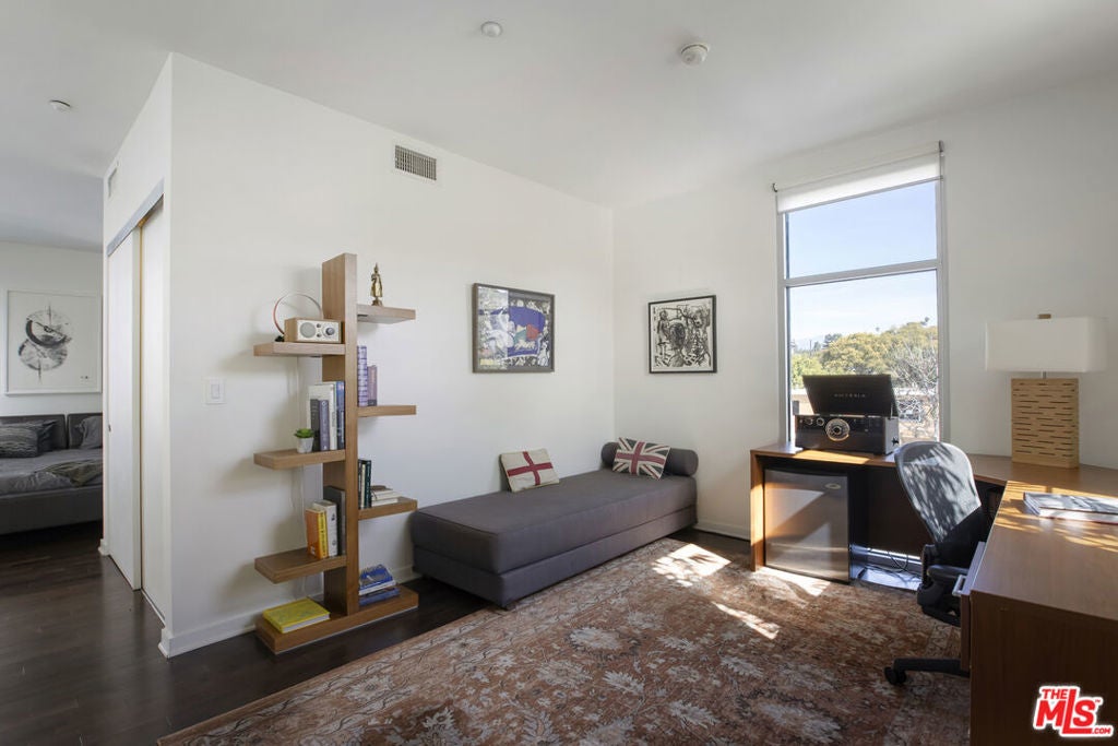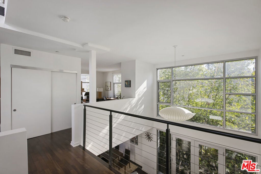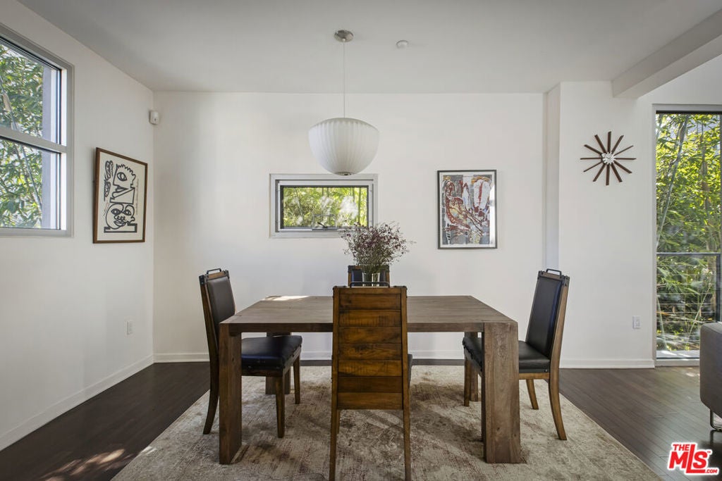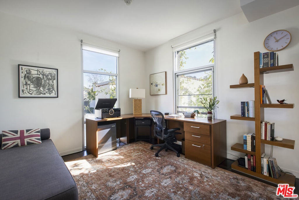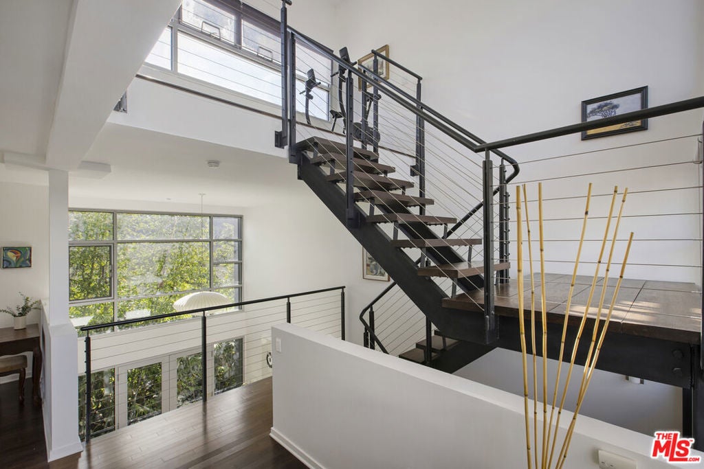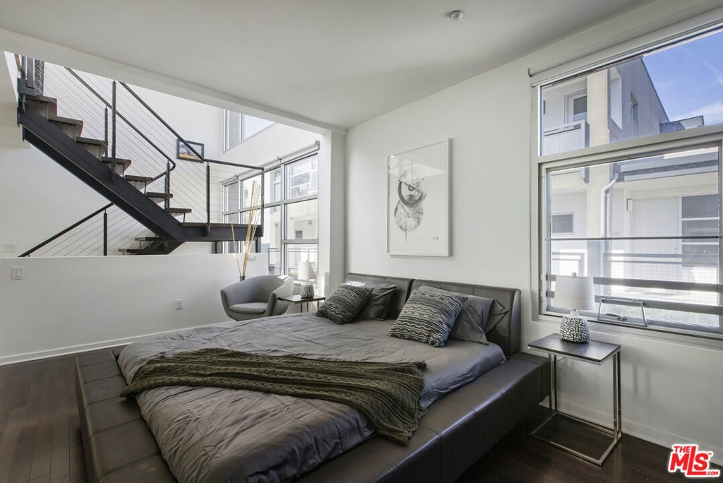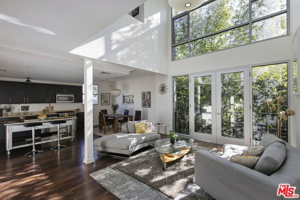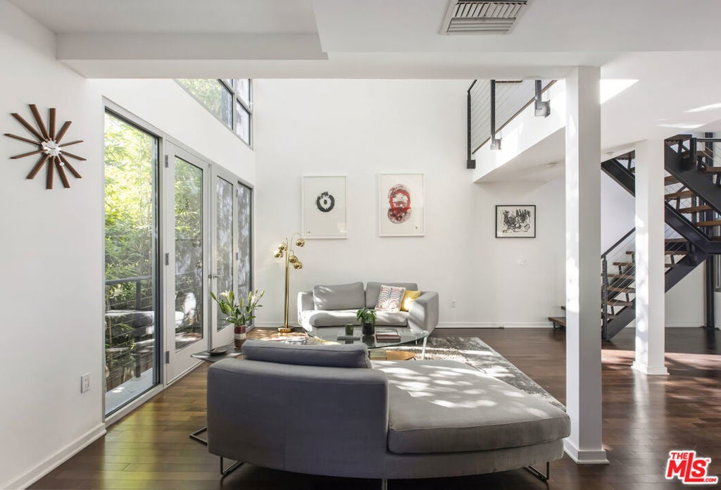 Between the Myra Avenue Bridge and the Manzanita Street gardens stands 4111 Sunset Blvd. Designed and constructed in 2007 by Rothenberg-Sawasy Architects, the Sunset Silver Lake Lofts remain one of the most sought-after Live/work buildings in Silver Lake. Just steps from Sunset Junction, you're within walking distance of some of the neighborhood's best Erewon, Tartine, Intelligentsia, Sweetgreen, Pine & Crane, and La Colombe. This one bedroom, two-bath open-concept New Yorkstyle loft offers the feel of downtown Manhattan in the heart of Silver Lake. This unit could easily be turned into a two bedroom by adding a few stem walls and doors. With soaring 17-foot ceilings, wood floors, and tall east-facing steel-framed windows that flood the space with dappled morning light through the verdant bamboo hedge. The home feels both dramatic and serene. Unit 220 is located in the middle of the complex sheltered from Sunset Blvd, Manzanita and Myra and has only one common wall. This unit enjoys a quieter, more peaceful setting. The sophisticated bi-level live/work layout is open and airy, with expansive white walls perfect for showcasing large-scale art. Step onto your private third story deck above the primary suite and take in views of the Franklin Hills and beyond. Bask in dramatic afternoon sunsets with a bottle of your favorite bubbly. The unit features two full bathrooms, one on each level, along with a stackable laundry closet in the downstairs bathroom. There is two-car tandem underground parking. Modern, architectural, and ideally located this is Silver Lake loft living at its best. Location, sophistication and convenience.