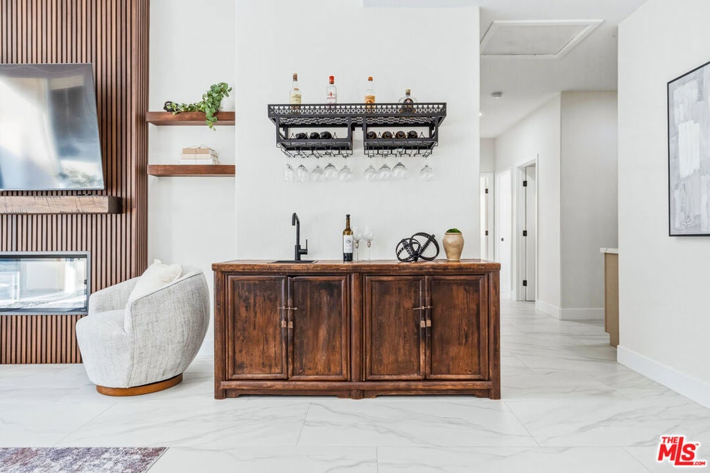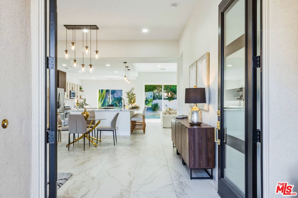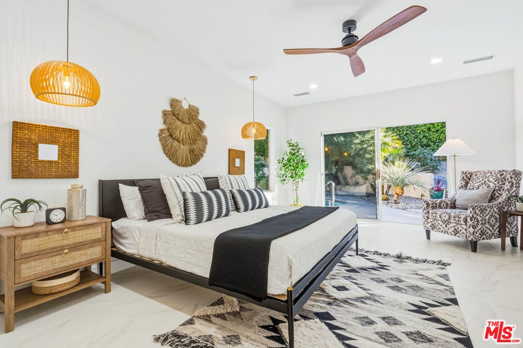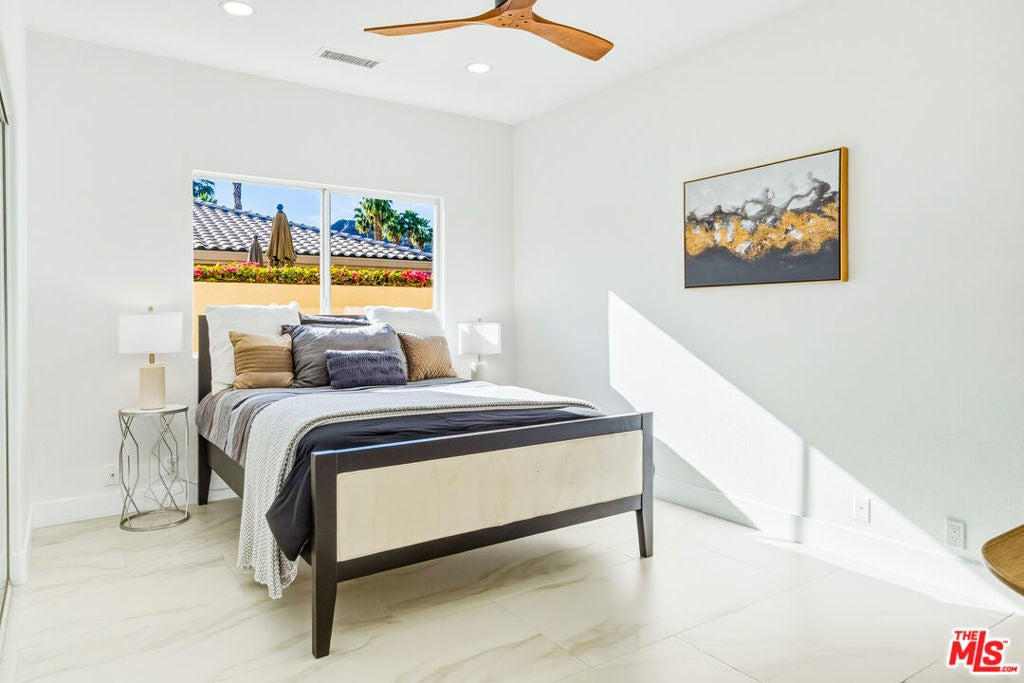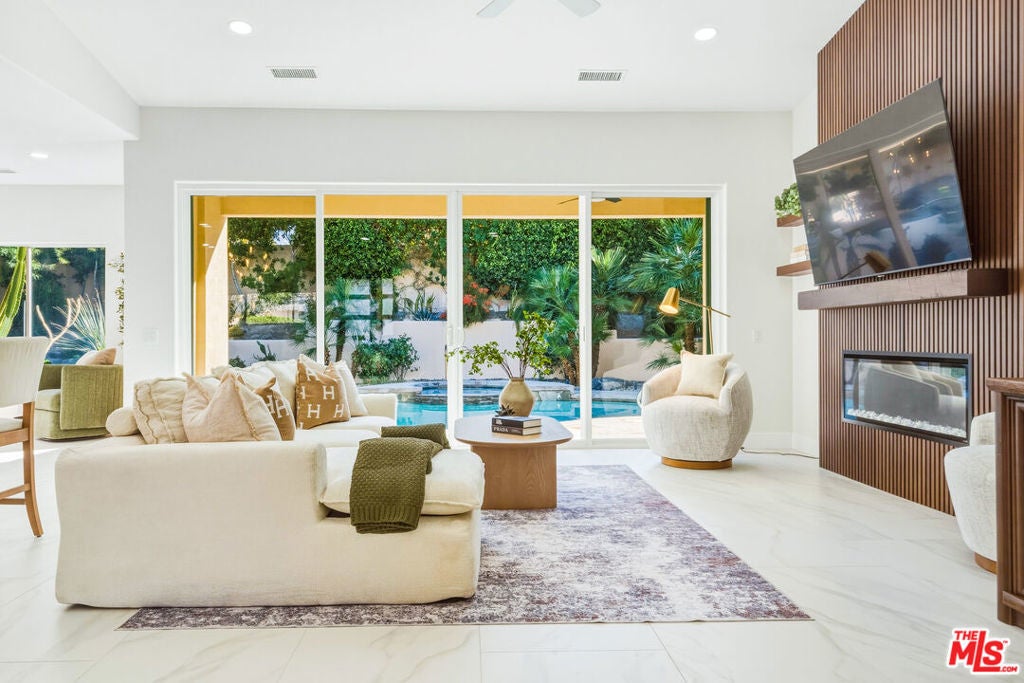 Discover a rare and compelling offering in the popular 24-hour guard-gated community of Lake La Quinta. This extensively reimagined 4-bedroom, 3 full-bath residence delivers a level of design, finish, and privacy seldom found at this price point. Positioned between the community's lower and upper price tiers, this home offers elevated architectural quality without reaching the highest price echelon, a strategic opportunity in one of La Quinta's most desirable lake enclaves. Completely revitalized under the oversight of a meticulous, experienced real estate investor, all improvements were completed with permits and City of La Quinta supervision. The interior was opened and redesigned for light and flow, finished with large-format 24 x 48 porcelain tile, and enhanced with new doors, appliances, hardware, lighting, and refined detailing throughout. A sculptural electric fireplace wrapped in floor-to-ceiling acoustic wood paneling anchors the living space, complemented by a 75-inch display on a 180-degree mount and a custom 14-foot sliding glass wall that seamlessly connects indoors to the resort-style exterior. The living room's one-of-a-kind Asian-inspired wooden wet bar and expansive open-concept layout create a true centerpiece for entertaining. The expanded chef's kitchen is both architectural and functional, featuring a generous breakfast bar, porcelain countertops, custom cabinetry, roll-out storage, wine cubbies, a beverage cooler, a statement island, a professional 36-inch gas range with pot filler, matte black fixtures, and curated lighting. All bathrooms are fully remodeled with curbless showers, spa-inspired finishes, and updated design, including a reconfigured primary suite with a private wet room, soaking tub, rain shower, and ADA-conscious layout. A former office has been converted into a true fourth bedroom. Outdoors, the revitalized pool and spa with a flowing water feature create a private retreat, complemented by refreshed hardscape, upgraded landscaping, and a custom built-in gas grill with granite counter and storage designed for effortless entertaining. Lake La Quinta offers a 25-acre private lake with electric boating, kayaking, fishing, tennis courts, pool, park space, boat docks, and a shared boat club, ideally located on Adams Street between Highway 111 and Avenue 48. To fully appreciate the design, quality, and scope of this residence, experience it in person or review it alongside the extensive improvement list. We can't wait to impress you!