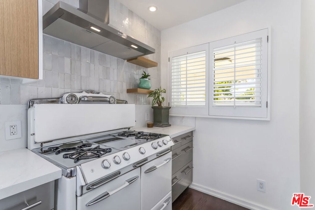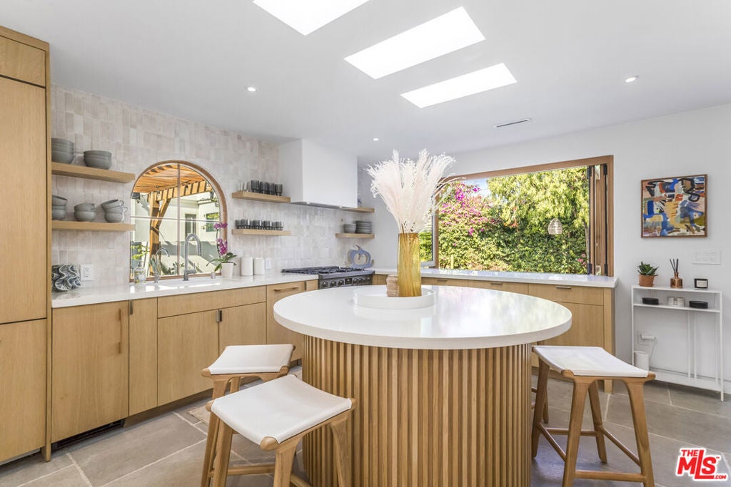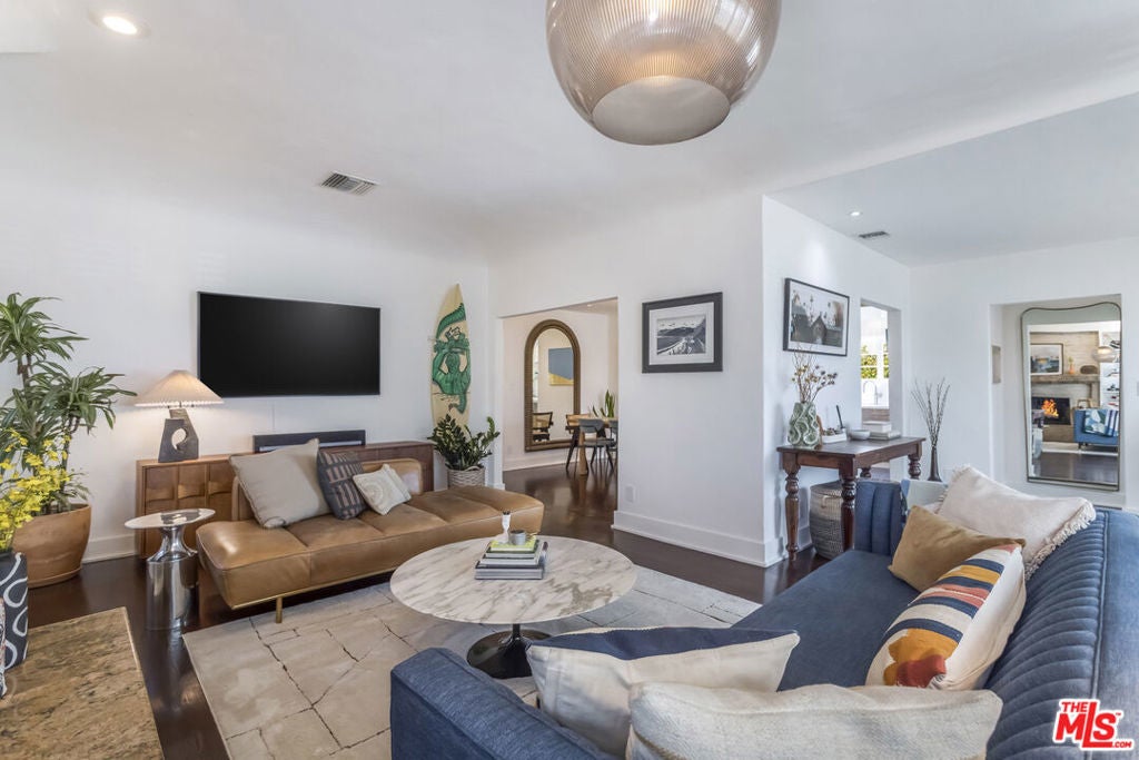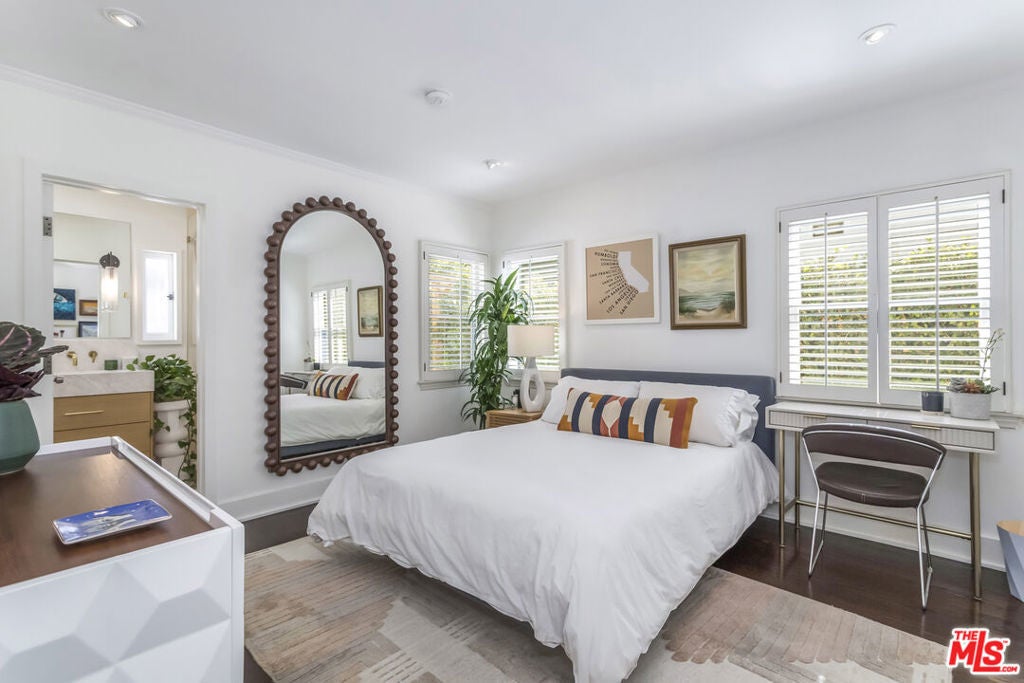 Step onto the grounds of this completely reimagined 1923 Spanish Revival, perfectly positioned on a coveted, quiet street near Hancock Park and Larchmont Village. This residence offers the rare combination of historic architecture and uncompromising modern function. As you enter, the main house immediately showcases a brilliant, single-level floor plan laid with premium Real Oak flooring and modern upgrades throughout. Your eye is drawn to the formal living room, anchored by a stately gas fireplace, leading effortlessly into the expansive dining and entertaining spaces. The home's renovation is a testament to quality, defined by luxurious, custom finishes and integrated technology. The gourmet kitchen features appliances from Fisher Paykel and Bosch, charmingly complemented by a vintage O'Keefe and Merritt range, all set against a backdrop of artisan tiles, stainless steel, and rich wood finishes. Every door you touch is a piece of quality, as the home and the detached ADU boast custom solid wood doors throughout. The three full bathrooms stand as bespoke sanctuaries, offering a touch of refined luxury. They feature wall-hung Swiss Madison toilets, custom cabinetry, and the comfort of heated flooring, all accented by stunning artisan tile selections from Heath Ceramics, Zie, Cle, and Terrazzo. Modern living is seamlessly integrated throughout. The entire home is optimized with smart features, including keyless entry, Nest thermostats, indoor and outdoor speaker music system, and security provided by Ring. For the modern commuter, convenience is secured with a universal charger offering integrated electric vehicle readiness. The flow continues beautifully outdoors, where the Unrivaled Bonus itself a stunning, permitted Accessory Dwelling Unit (ADU) truly transforms into a spectacular pool house and entertaining hub. This casita is designed for effortless hospitality: its large Fleetwood sliding door and accordion windows open up the entire space next to the pool, welcoming you into a secluded Entertainer's Paradise. The backyard is completely private, setting the scene for spectacular gatherings around the centerpiece: the immaculately redone salt water pool, featuring exquisite Heath tiles and a new, remote-controlled equipment system. The adjacent outside bar seating and the romantic outdoor dining table under a pergola strung with cafe lights complete this luxurious resort atmosphere. As a true differentiator in the L.A. market, this structure is fully self-sufficient, boasting its own full gourmet kitchen, separate laundry, heated flooring, and custom finishes, allowing it to be utilized as a private guest suite, a high-income rental opportunity, or a sophisticated work-from-home office, offering unparalleled flexibility and value. This is more than a home; it's a ready-made lifestyle for the discerning buyer who appreciates historic charm enhanced by modern, impeccable design. This turn-key residence offers 4 Bedrooms and 3 Bathrooms across 2,219 square feet. Listed at $2,595,000, it represents a premier opportunity to acquire the pinnacle of life near Hancock Park.