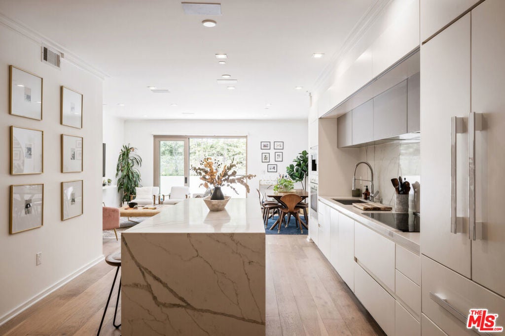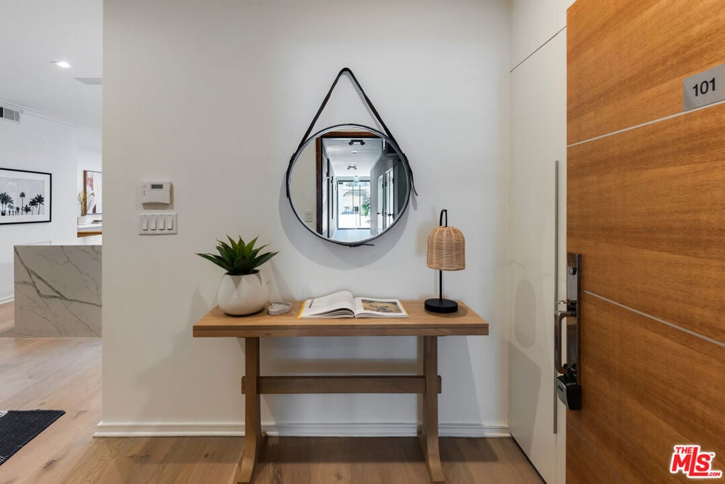 A rare opportunity to own a turnkey residence offering exceptional value in a prime location. 132 N. Swall is a stunning 2-bedroom, 2-bath residence located in one of Los Angeles' most desirable neighborhoods. The open-concept living space is sophisticated and inviting, perfectly designed for both relaxed living and effortless entertaining. Contemporary finishes, sleek hardwood floors, and a spacious, thoughtfully designed layout create a seamless flow throughout the home.Unit 101 features a coveted oversized patio, offering exceptional indoor-outdoor living ideal for al fresco dining, morning coffee, or enjoying the California sunshine. The chef's kitchen is equipped with custom Miele appliances, including a built-in coffee system, wine cooler, and induction cooktop.Ideally situated within walking distance to Robertson boutiques, Beverly Hills and West Hollywood shopping and dining, and Cedars-Sinai Medical Center, this home combines luxury, convenience, and lifestyle.