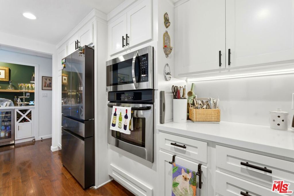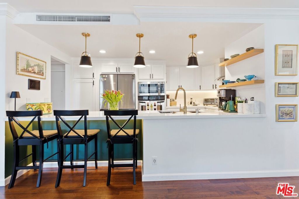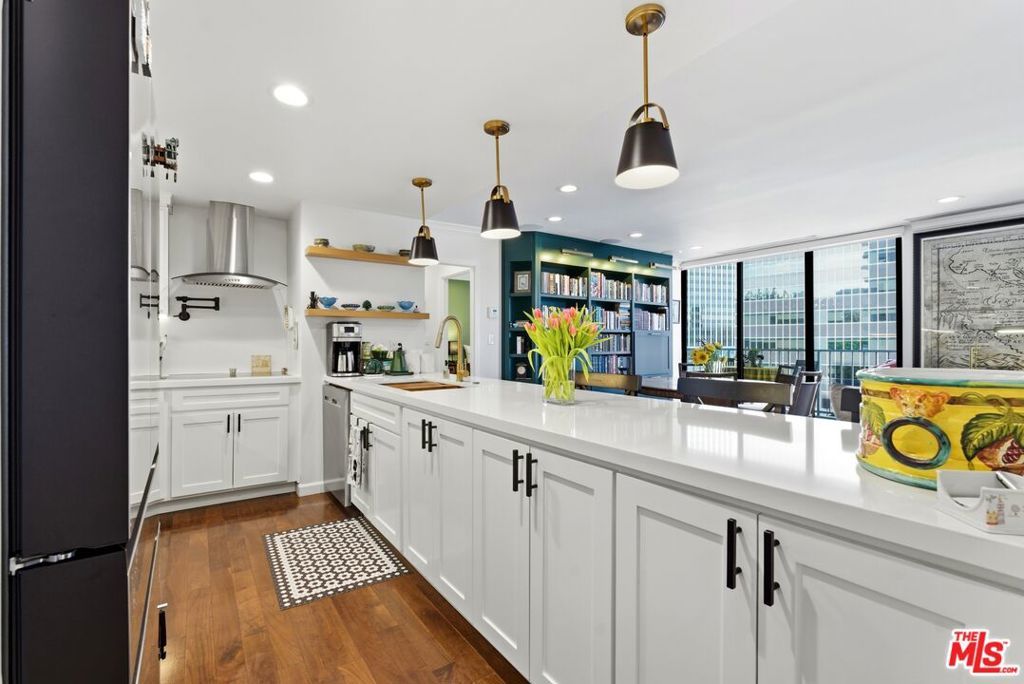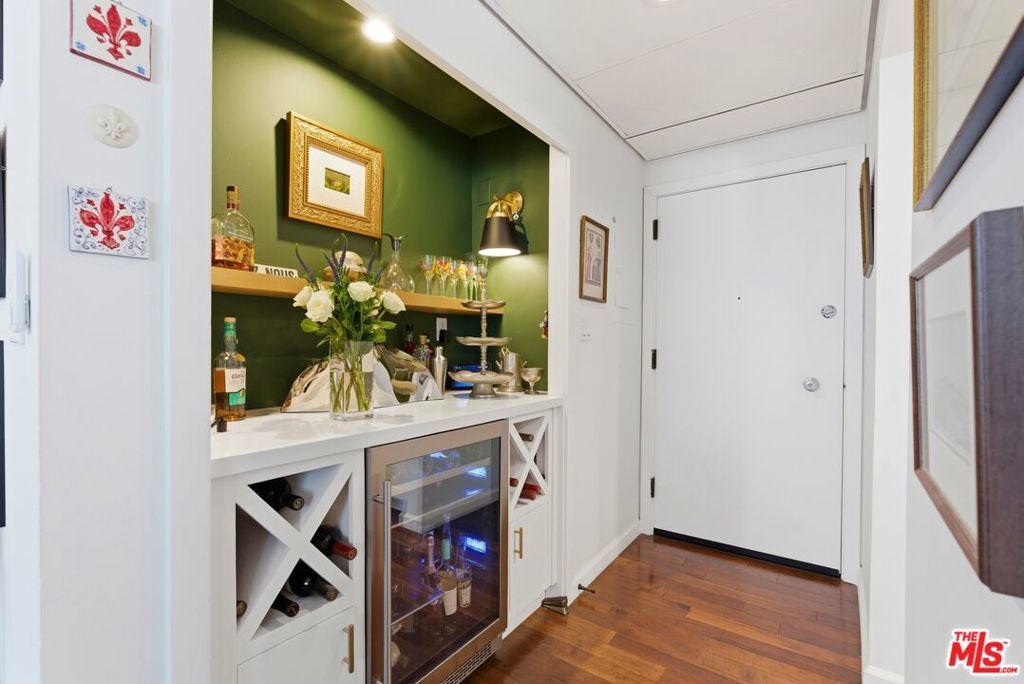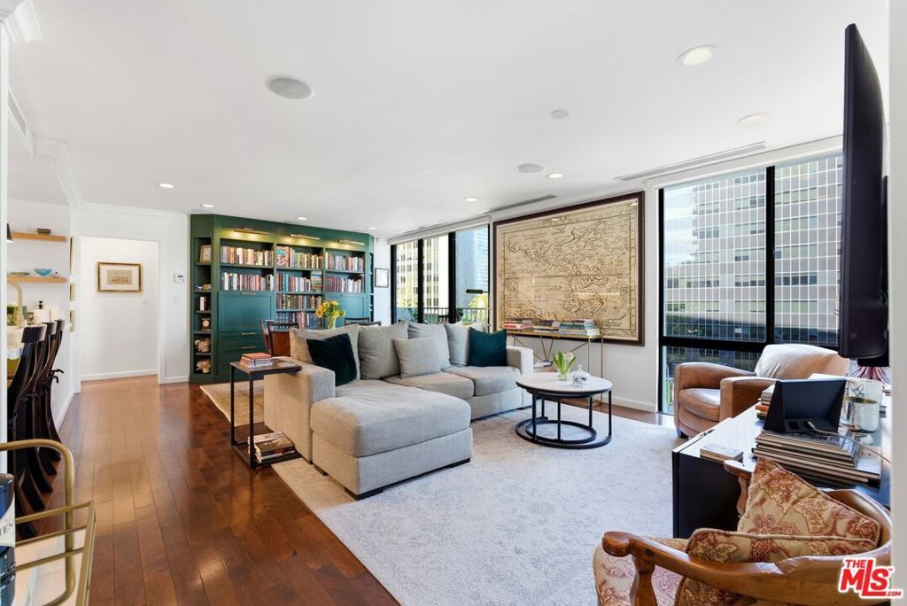 Beautifully remodeled 2-bedroom, 2-bath residence in the renowned Century Park East community in the heart of Century City. The updated interior features hardwood floors, recessed lighting, double-pane windows, electric blinds, and a bright open living and dining area framed by floor-to-ceiling glass and access to a private north-facing balcony with city views. As you enter, a custom wine bar with built-in refrigerator creates a stylish welcome and functional entertaining space. The updated kitchen offers quartz countertops, stainless steel appliances, and a breakfast peninsula with seating. The spacious primary suite includes a walk-in closet with custom built-ins and a renovated bath with dual-sink vanity and modern finishes. The secondary bedroom provides flexibility for guests, office, or den use, with an adjacent updated bath and added linen storage. Century Park East is a full-service high-rise offering 24-hour valet, concierge, and guest parking. Resort-style amenities include an Olympic-sized heated pool with lounge areas, north/south tennis court with pickleball lines, state-of-the-art fitness center with sauna, children's playground, dog park, and landscaped grounds. Located moments from Westfield Century City, Beverly Hills, UCLA, and major Westside destinations. Listing includes video tour.