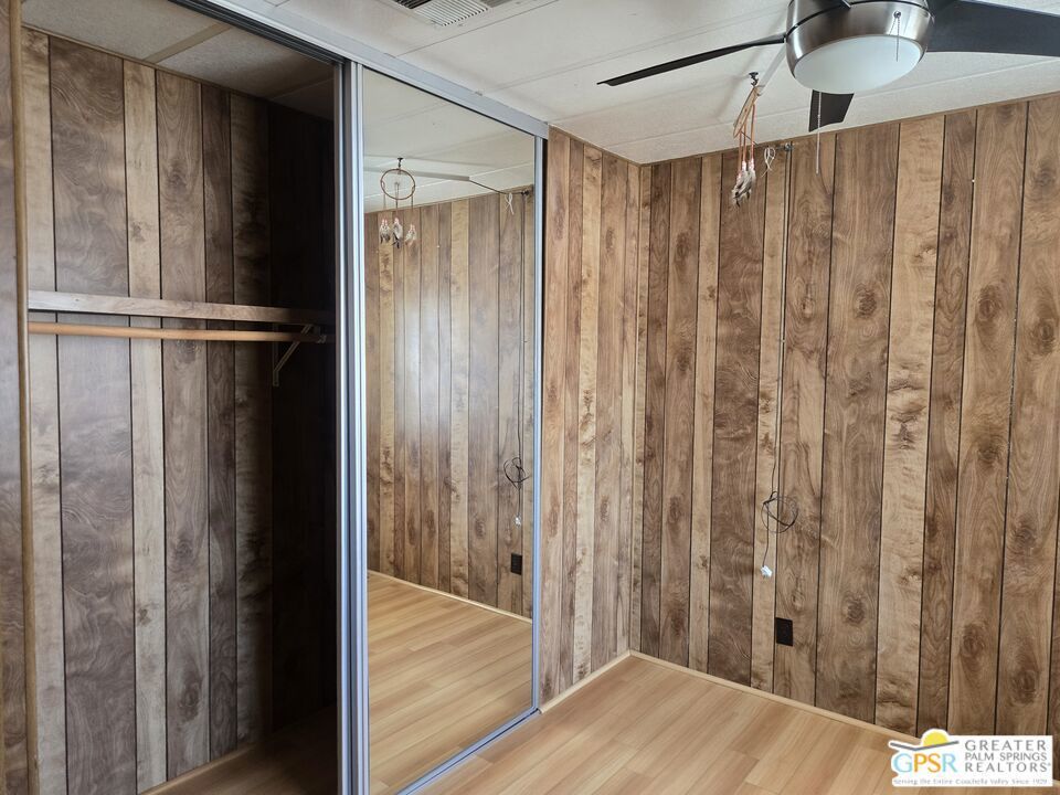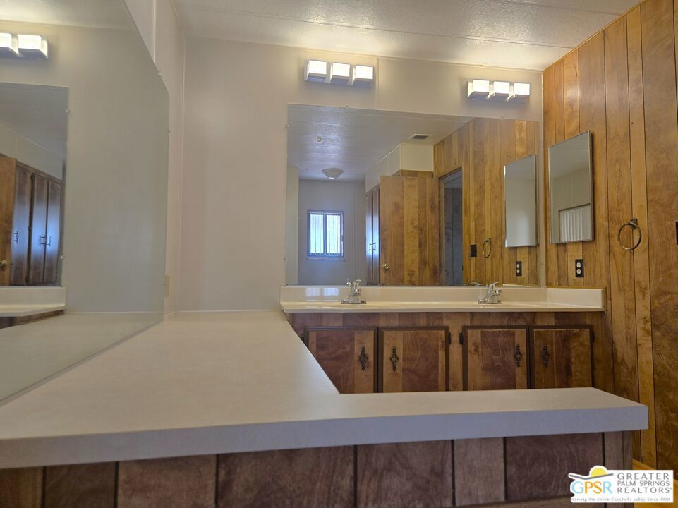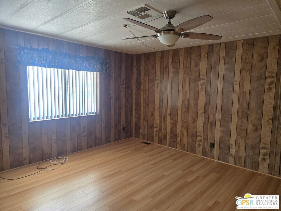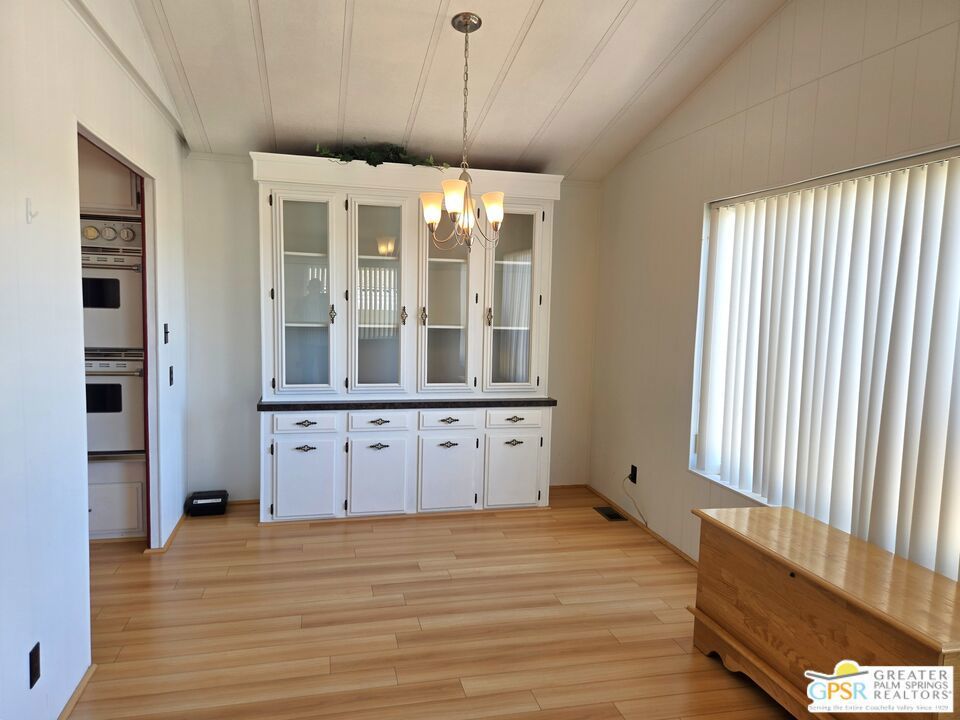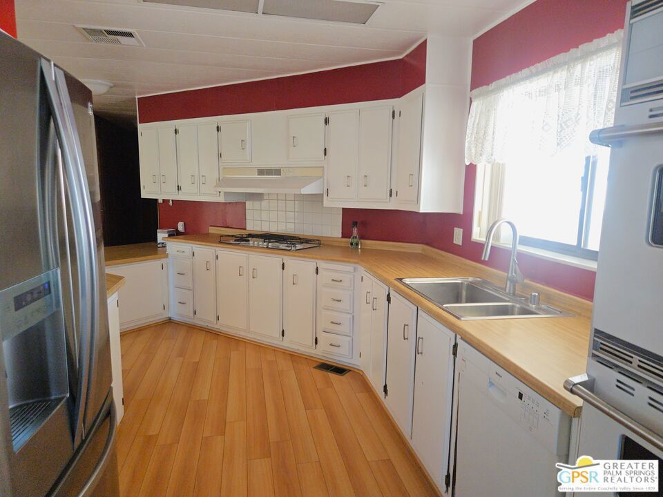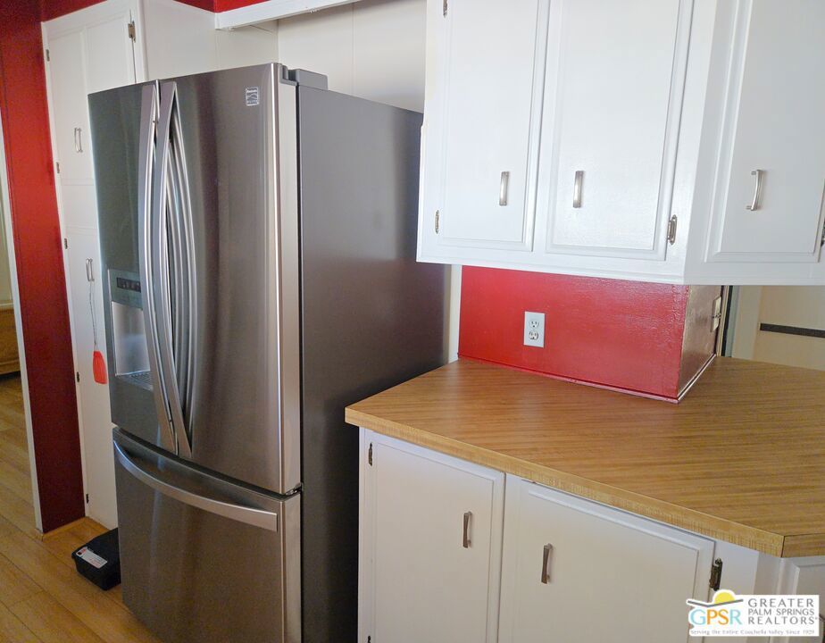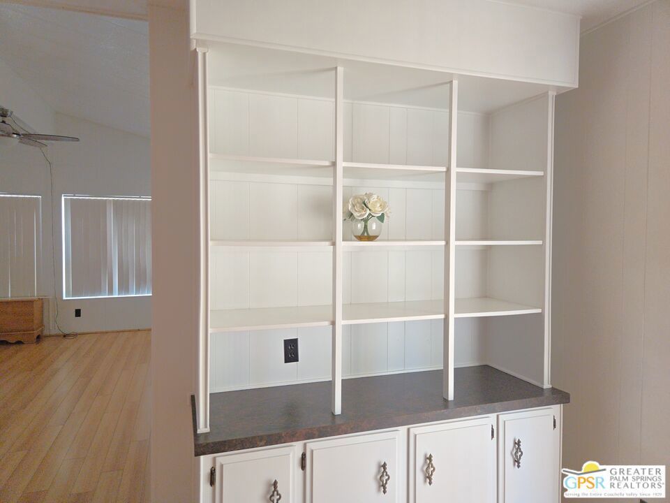 Boasting panoramic views to the East and perfectly set in a gorgeous rural setting within the lively golf and active 55+ community of Desert Crest Country Club, this exceptional Two Bedroom & Two Bath, 1440 SF manufactured home that was built in 1981 offers a unique blend of comfort and convenience tailored for those seeking an active and vibrant lifestyle. Located in the Southeast corner of Desert Crest Country Club yet just around the corner from the golf facilities that are free to the Owners and just down the way to the huge Clubhouse with natural mineral spring water Pool & several Spas, this home enjoys the perks of a lively existence, surrounded by the scenic beauty of the desert landscape in the Western Coachella Valley. This well-maintained home, built in 1981, gives some very private space on the covered Southside Patio that is your entry to the home. You come into an interior that includes updated laminate flooring throughout. The massive Living & Dining Room combo stretches the width of the front of the home with a built-in Hutch, while a separate Family Room with more built-ins attaches to both the Living & Dining Room with entry to the large Kitchen. Of special note is the massive amount of butcher-block look counterspace and cabinetry for toms of storage, while the appliances include a Viking double-wall Oven, gas Cooktop, Dishwasher, and modern Banquet Refrigerator. An extra Bonus is the oversized Laundry Room that has easy access to the Carport. Matching Washer and Dryer amongst more storage completes the interior. Two Bedrooms and two full Baths offer both comfort and functionality, catering to the needs of daily living within the spacious interior. The Primary Bedroom stands as a serene haven, complete with the enormous ensuite Bath that has dual sinks, makeup mirror seating space, and deep soaking Tub with a separate Shower. The second Bath is full sized too. Newer ceiling fans are installed throughout. A large attached Shed tucked away to the rear of the 2 Vehicle Carport handles your storage needs. The covered South patio makes an inviting space designed for relaxation and entertainment while the Rear Yard is an oasis of calm and serenity. It's the ideal spot to revel in the beauty of the desert evenings, fostering moments of tranquility and social gatherings. The low-maintenance landscaping, fenced for privacy, ensures that upkeep remains effortless, allowing residents to focus on the joys of community living. The Carport is decidedly spacious enough for two vehicles and a Golf Cart. The Desert Crest Country Club community boasts a 9-hole golf course, inviting residents to enjoy leisurely rounds amid the picturesque setting of pond and mature trees that boast views of Mounts San Jacinto and San Gorgonio and the iconic windmills of the Banning Pass. This oasis extends beyond the golf course, offering a multitude of amenities enhancing your daily life. Owners enjoy a multi-faceted Clubhouse that features a healthy mineral water Pool and Spas, providing a serene escape and a hub for plenty of social connections. Indoor Shuffleboard and other activities are a welcome diversion here at the Clubhouse, with many interior facilities to keep you moving. The onsite cafe caters to culinary cravings, the dog groomers attend to furry companions, and the real estate office ensures all needs are met with ease. These conveniences foster not just a residence but a sense of belonging within a home and community bound by shared experiences and vibrant camaraderie. This home represents a harmonious blend of comfort, style, and functionality, creating a delightfully private haven within the heart of Desert Crest Country Club. Whether indulging in a round of golf, luxuriating in the mineral water pool, or simply savoring the serenity of the surroundings from your very private rear deck, this property offers a unique and fulfilling 55+ living experience, where every moment resonates with the essence of a life well-lived.