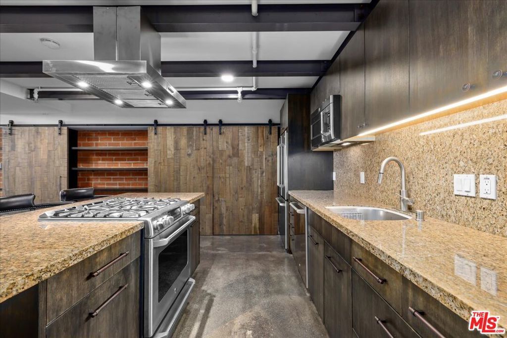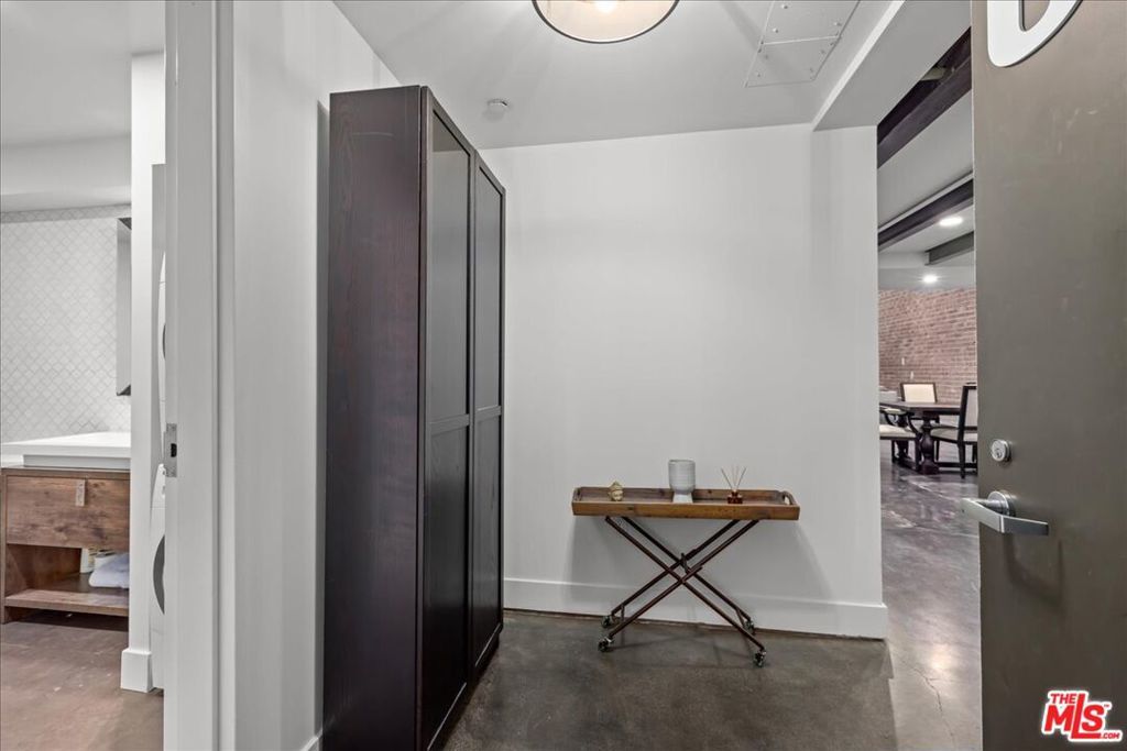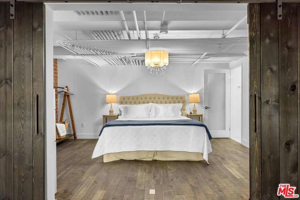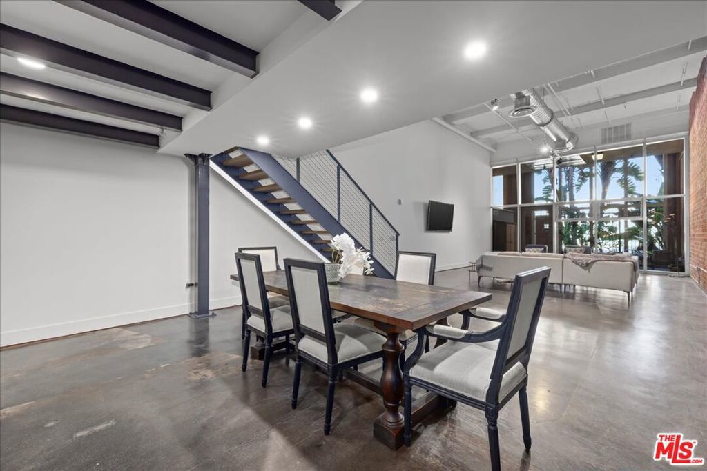 Welcome to Gallery Lofts, a live work community located in the heart of Arts District. This private oversized loft creates the perfect creative sanctuary for artists, musicians, and other like minded individuals. The expansive living area features soaring 16 foot ceilings, polished concrete flooring, an exposed brick wall, and 200 sf private patio that is not included in the total interior square footage. A rare amenity that offers so many possibilities. Also on the first floor is a spa-like full bath and gourmet kitchen with granite countertops, stainless steel appliances, and plenty of built in storage space. Walk up the floating staircase to the primary with bright en-suite bath, and an an option for extra privacy provided by the sliding barn doors. Before entering the primary there is ample space on the mezzanine for a home office or exercise area overlooking your spacious lower level. Experience all of Arts District's bustling galleries, restaurants, and nightlife. Community features gated security entrances, outdoor atrium, fountains, and a secure mailroom. One assigned parking space with convenient and direct access to the private patio entrance. HOA dues include high speed internet, water, gas, trash, sewer, and community security system.