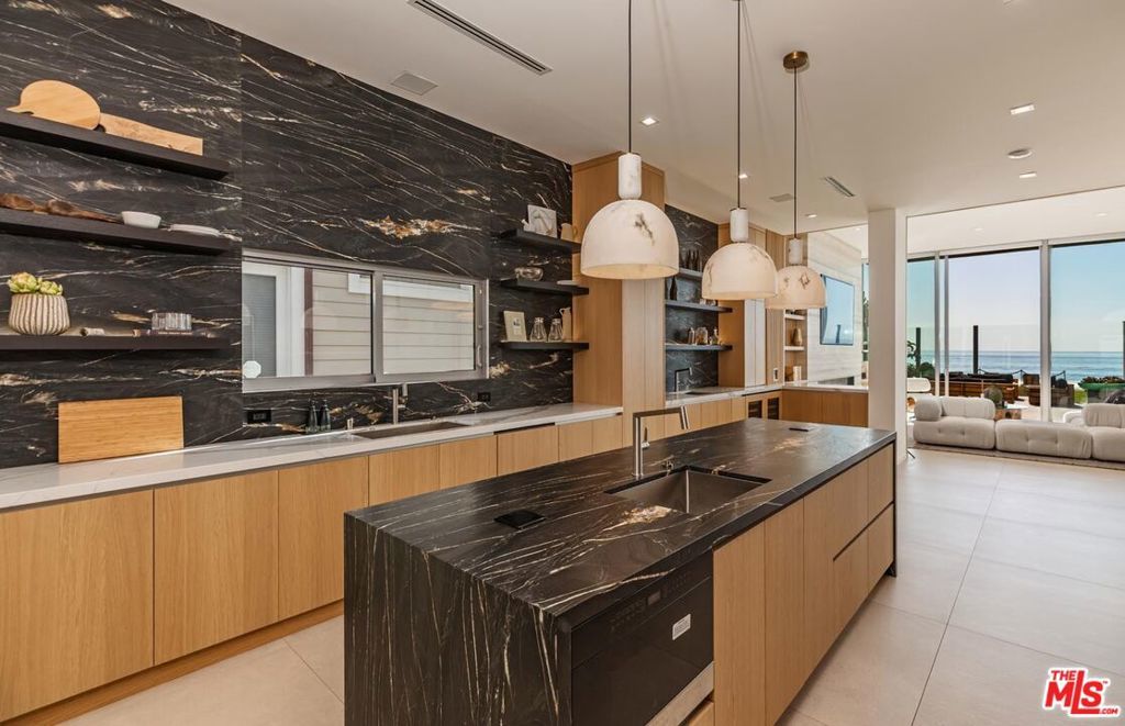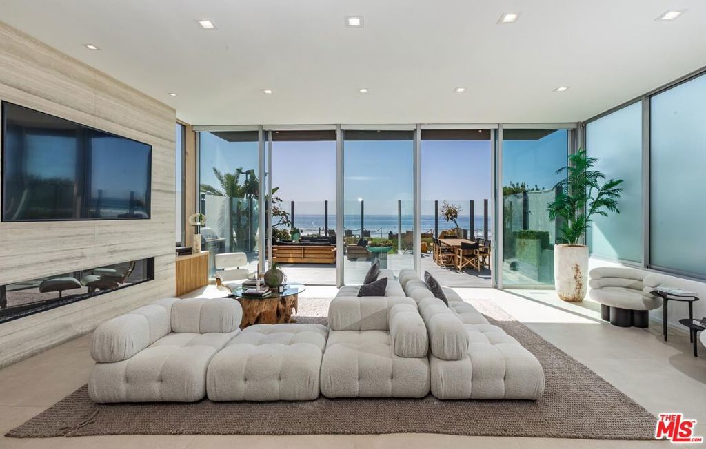 Set behind a refined teak wood facade and approached through a private courtyard, this Broad Beach architectural residence offers rare privacy with direct access to the deep, sandy beach. Fully reimagined with white oak floors, custom wood detailing, electric shades, and a calming coastal palette, the home is designed for seamless indoor-outdoor living. The main living spaces feature soaring ceilings and floor-to-ceiling glass framing unobstructed ocean and coastline views. A stone fireplace anchors the living and dining areas, flowing into a chef's kitchen with quartzite finishes, oversized island, and Miele appliances. The ocean-facing primary suite occupies the upper level, offering full-width glass, high ceilings, a private deck, fireplace, walk-in closet, and spa-like bath. The main residence includes four bedrooms, a lower-level media room, and a detached one-bedroom guest house with kitchenette. Outdoor amenities include a glass-protected dining deck, fire pit lounge, private lawn, and direct access to the sand. A rare offering combining architectural design, privacy, panoramic views, and a separate guest house - this is a true Broad Beach trophy property.