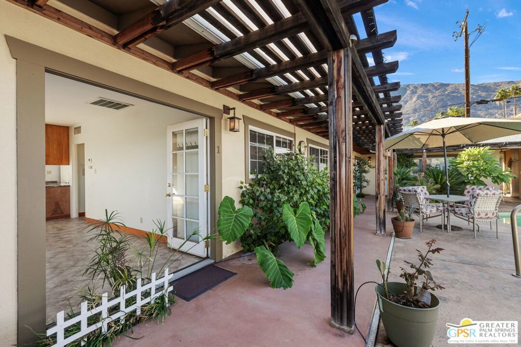 Exclusive Clothing Optional Oasis in Warm Sands! Escape to your own private desert retreat in the sought-after Warm Sands neighborhood of Palm Springs. This inviting 1-bedroom, 1-bath apartment (#1) sits in a charming, intimate 6-unit community renowned for its relaxed, clothing optional lifestyle and beautifully maintained grounds. It truly feels like a year-round resort escape. Imagine starting your day on your spacious private patio with coffee in hand, surrounded by gentle desert breezes, or unwinding there after exploring downtown. The patio includes your own in-unit washer and dryer for ultimate convenience in everyday living. The community is a serene haven centered around a sparkling pool and soothing spa, where you can soak up the sun, take refreshing dips, or simply relax in the lush, tropical landscaping. It's the perfect low-key backdrop for embracing Palm Springs ' laid-back luxury. Whether you're lounging poolside, enjoying quiet evenings, or connecting with the welcoming neighborhood vibe. Inside the unit, an open and airy layout flows seamlessly, featuring a cozy bedroom retreat, modern bathroom, and smart design that blends comfort with sophistication. Natural light pours in, creating that effortless, resort-inspired elegance. Location couldn't be better: Steps from downtown Palm Springs world class dining, shopping, entertainment, and cultural scene. Easy access to hiking, golf, and major routes, yet tucked away in peaceful Warm Sands, Palm Springs iconic enclave for relaxed, community-oriented desert living. This isn't just an apartment. It's your personal slice of paradise in one of the desert's most desirable spots. Ideal for someone seeking privacy, tranquility, and that signature Palm Springs resort energy in a long-term home.