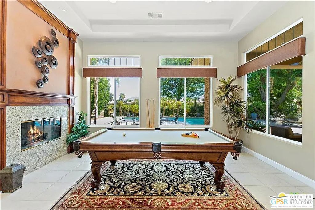 This magnificent and expansive residence presents an exquisite lifestyle, boasting four opulent bedrooms and five luxurious baths. Beyond the grand entrance, you'll discover a family room and an elegant formal living room, an inviting eat-in kitchen alongside a stately formal dining room. The kitchen, sprawling in its size, is a culinary masterpiece. The colossal main suite and bath provide a sanctuary of unparalleled grandeur. An inspiring office space is provided, as well as an attached casita for utmost versatility. A capacious garage ensures ample space for your vehicles. Each bedroom is graced with its own en-suite bathroom, promising utmost privacy and comfort. Step into the backyard paradise, oriented towards the sun-drenched south, and be enchanted by a pool and spa that rival those of a luxury hotel. A built-in outdoor kitchen, overlooking the golf course, adds an aura of sophistication to this outdoor oasis, all while affording majestic mountain vistas. Ideally situated on a corner lot within the prestigious Mira Vista golf course community in the highly sought-after Rancho Mirage, this home is the epitome of refined living. Entertainment options abound, with surround sound throughout in and outside, a room for a Billiards table in the family room, and a space for a fully equipped gym thoughtfully housed in the garage. As an added bonus, this splendid home can be sold furnished, elevating the turnkey convenience outside of escrow. This property is more than a home; it is an entertainer's dream, the embodiment of grandeur and style. Renter to pay $200 for electricity per month, pool and yard maintenance, water and gas