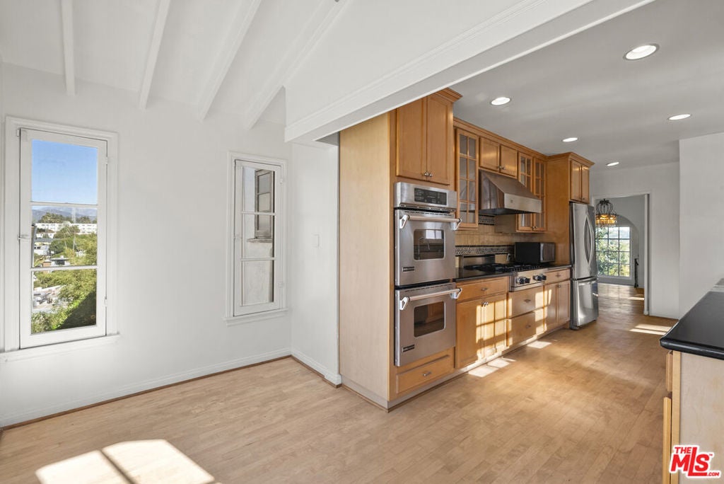 Traditional Spanish, top floor unit with walled private courtyard. Kitchen features stainless steel appliances and eat-in kitchen. Living room has high ceiling and large windows. Formal dining room with large windows. There is a roomy classic tiled bathroom featuring a separate bathtub and shower. Great Silver Lake location. Available as of April 15th.