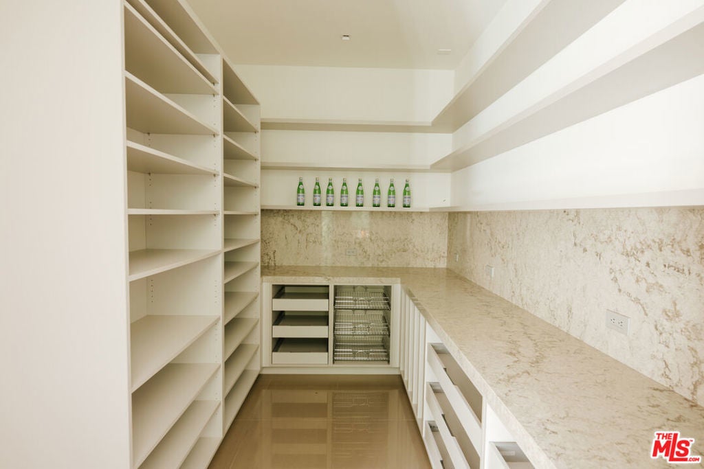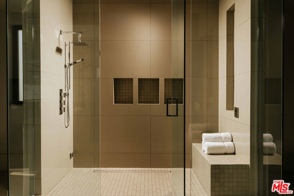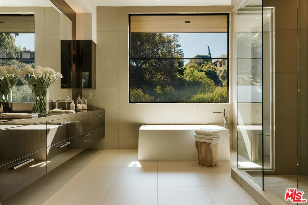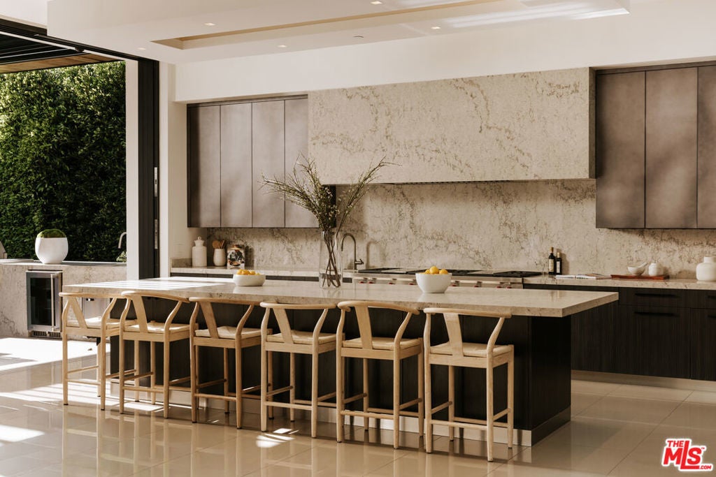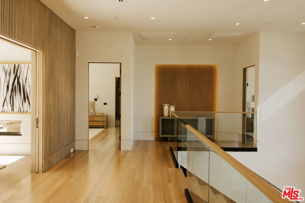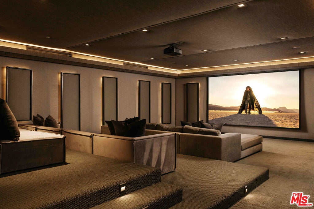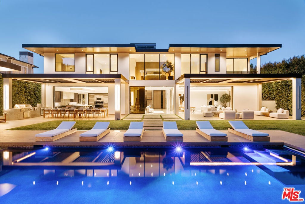 This Contemporary Enclave presents sophisticated design, unparalleled amenities, and quality details. This estate offers an abundance of space and privacy featuring 7 bedrooms, 9 bathrooms, a beautifully landscaped backyard with pool, spa, and detached guest house. Upon entry you're met with a large foyer with soaring ceilings and a seamless view of your outdoor oasis. The main level features a formal living room with an exquisite fireplace, a large family room radiating warmth throughout with wood-paneled walls, gourmet kitchen with top-of-the-line appliances and over-sized island. Near the family room sits an intimate formal bar, perfect for entertaining guests. Upstairs, the primary bedroom offers a sun-drenched sitting room with dual-sided fireplace, en suite spa like bathroom and dual closets. Three other guest suites with en suite baths and expansive balconies complete the top level. The lowest level is an entertainer's dream, showcasing a walk-in temperature-controlled wine cellar with lounge area, spacious screening room, recreational room, health spa and guest suite. The resort-like amenities continue in the backyard with floor to ceiling pocket doors leading out to multiple heated patios complete with a firepit and BBQ, providing quintessential al-fresco dining and entertaining areas. This estate complete with a three-car garage and large motor-court in front is the epitome of effortless, refined living in the heart of Brentwood.