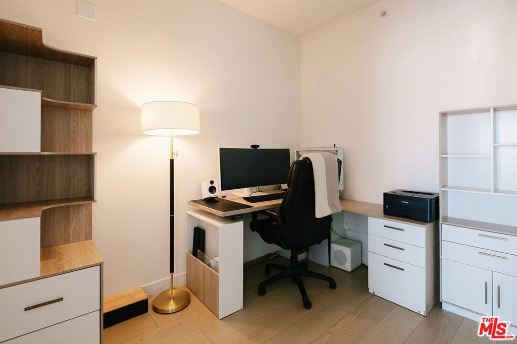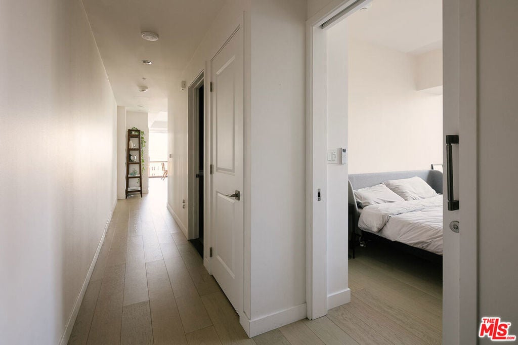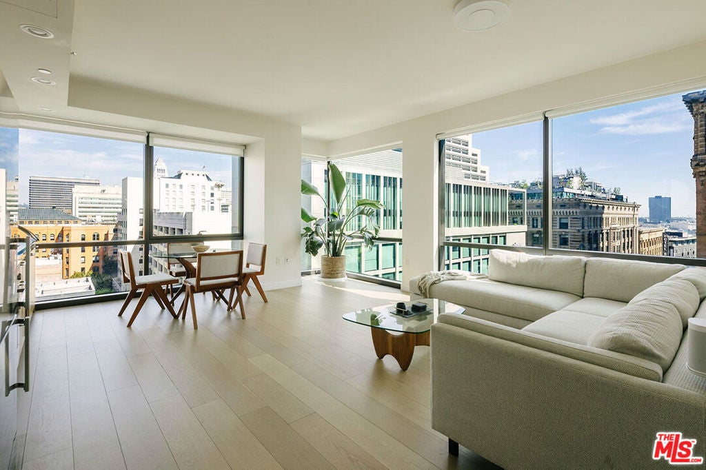 Rare corner unit with incredible south-facing views in Perla on Broadway. This 1-bedroom + den condo sits inside one of DTLA's newest architectural standouts and offers a clean, modern space that feels both elevated and effortless.Inside, the layout is open and airy, with hardwood floors, oversized windows, and city views that flood the space with natural light throughout the day. The flexible den works perfectly as a home office, creative studio, or guest space. The kitchen is dialed in with Bertazzoni appliances, sleek cabinetry, and a streamlined design that makes cooking and entertaining feel easy.Life at Perla on Broadway is all about the amenities. Residents enjoy 49,000 square feet of thoughtfully designed shared spaces, including a rooftop pool, fitness centers, lounges, and a 36th-floor observation deck with sweeping skyline views. The building also offers 24-hour security, concierge service, and low HOA dues that cover water, trash, and gas.The sale includes a designated EV parking space, a rare and valuable perk in the heart of Downtown.Right in the heart of DTLA's Historic Broadway corridor, walk to Grand Central Market, The Last Bookstore, Blue Bottle Coffee, Go Get Em Tiger, the Bradbury Building, Angels Flight, and The Broad, with restaurants, wine bars, galleries, and historic theaters just outside your door.