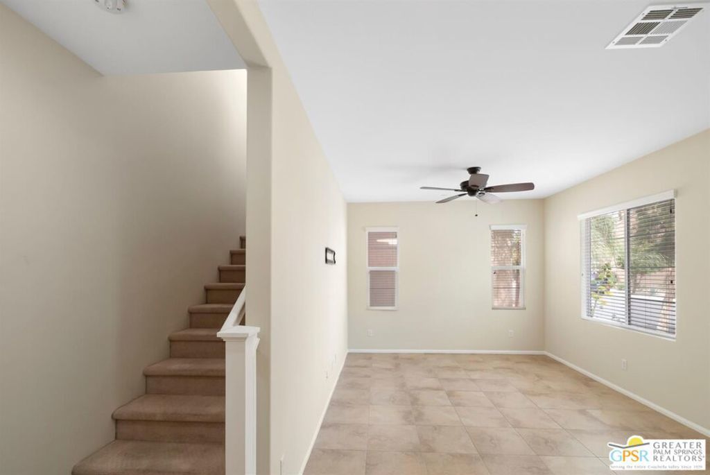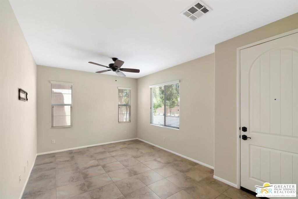 Beautiful Home in Highly Sought-After Spanish Walk Community! Located in the highly desirable Spanish Walk community of Palm Desert, this 3-bedroom, 3-bathroom home offers comfort, style, and resort-style living in a beautifully planned, gated neighborhood. This Spanish Mediterraneaninspired home features high ceilings, a neutral color palette, and a blend of tile and carpet flooring throughout. The kitchen is designed for both function and style with granite surfaces, stainless steel appliances, espresso-colored cabinetry, and a combination of recessed and pendant lighting. Ceiling fans throughout enhance comfort, while the open layout creates an inviting atmosphere for everyday living and entertaining. Enjoy outdoor living in the private rear patio and yard area, perfect for relaxing or hosting guests. Additional highlights include a dedicated laundry room and a two-car garage with storage. Community amenities offer a true resort-style experience and include: Three community pools and spas, fitness center and billiard room, playground and community park, BBQ areas, walkable, well-planned neighborhood design, low HOA dues. Conveniently located just minutes from golf courses, shopping, dining, entertainment, hiking, and freeway access, this home offers the perfect blend of lifestyle and location in one of Palm Desert's most popular gated communities.