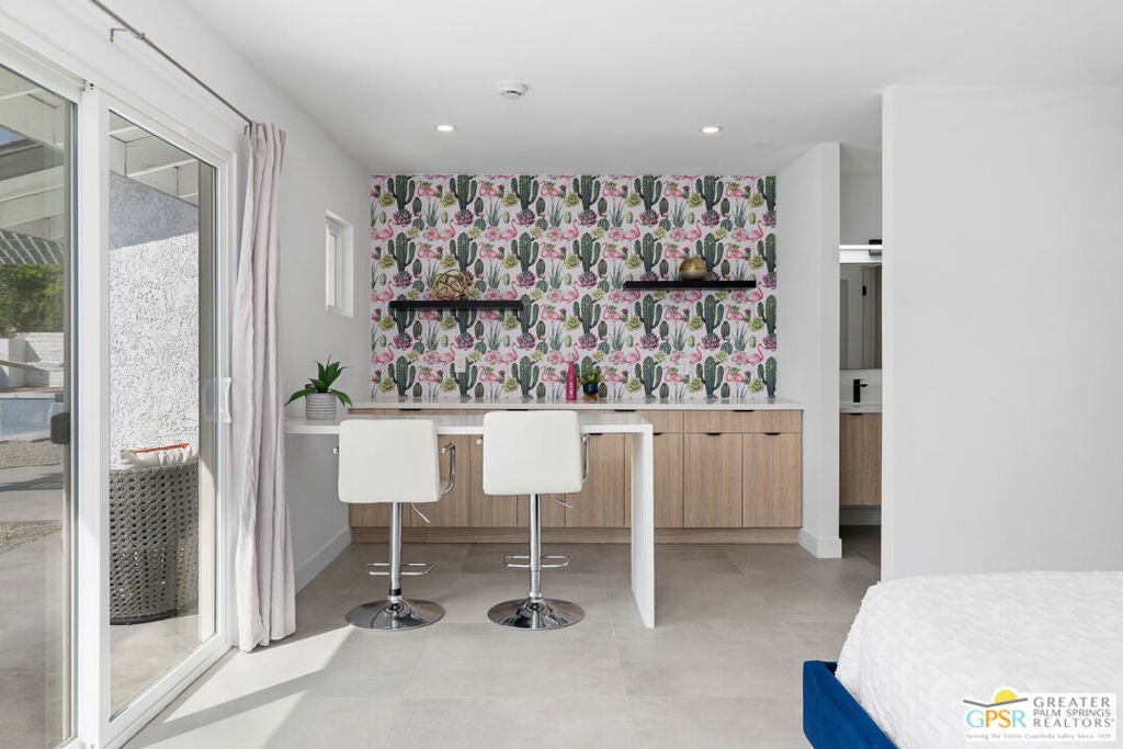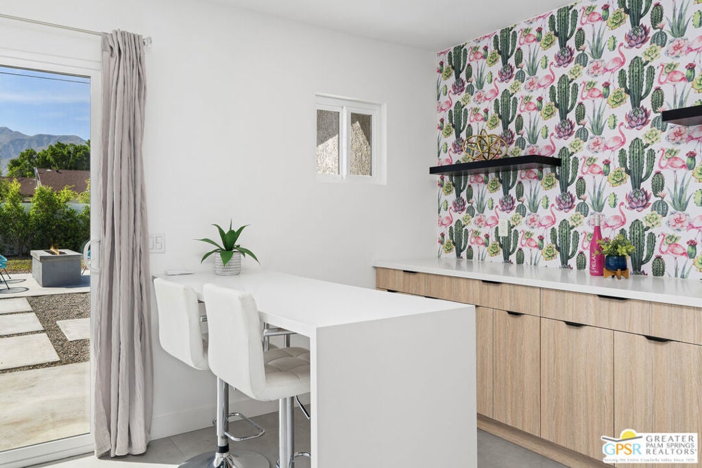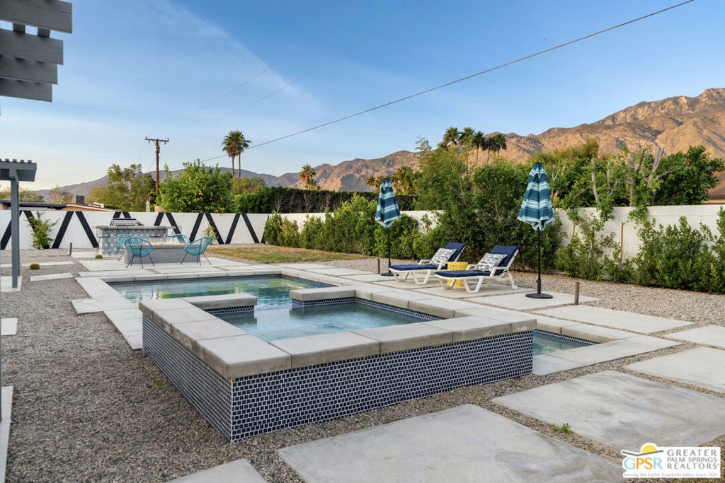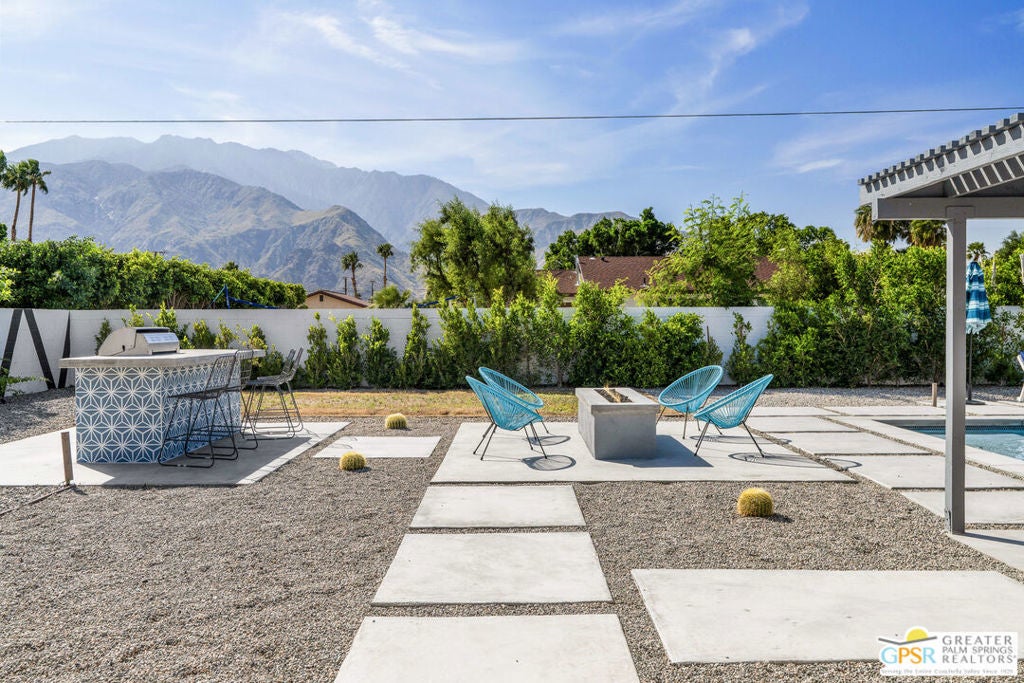 Welcome to 2175 N Sandra Rd, located in the Palm Springs neighborhood of Desert Park Estates. This 4 bedroom 3 bath home with amazing mountain views has been updated from top to bottom. As you walk into the open concept main living area you will notice all the custom touches throughout. The primary suite with its completely updated bathroom has direct access to the backyard. The backyard with its stunning mountain views, is perfect fo entertaining with a resort style pool and spa with tanning shelf, built in barbeque area, and a fire feature for enjoying the desert nights under the stars. The garage has been converted into a casita with a private entrance and its own mini split system make it a perfect area for guest or family that enjoy their own space away from the main house. Additional features include an extended driveway offering ample parking, including space for RV parking. Make an appointment today to view this wonderful opportunity to own your desrt oasis where you can Live your life in Shorts.