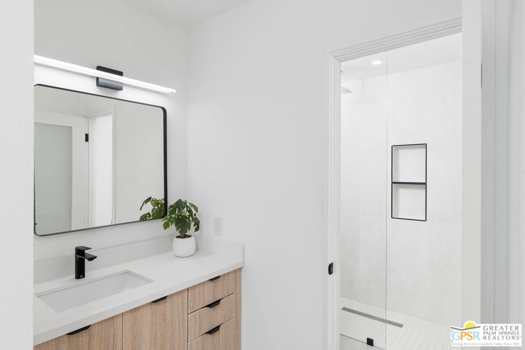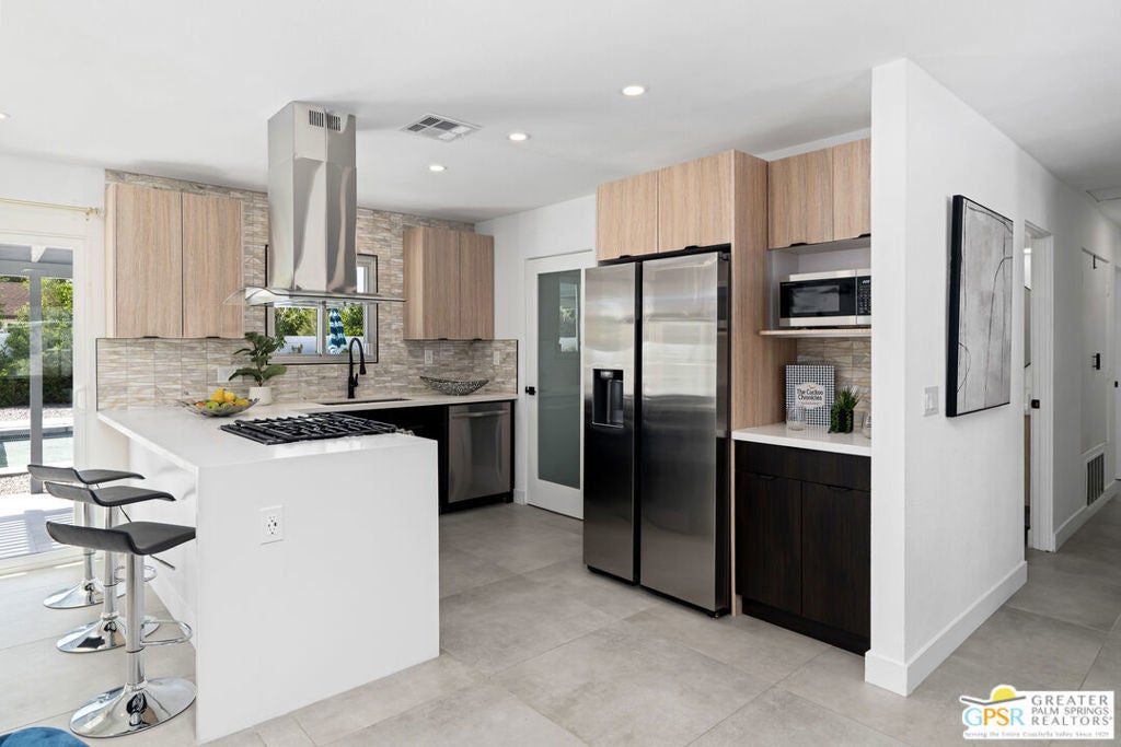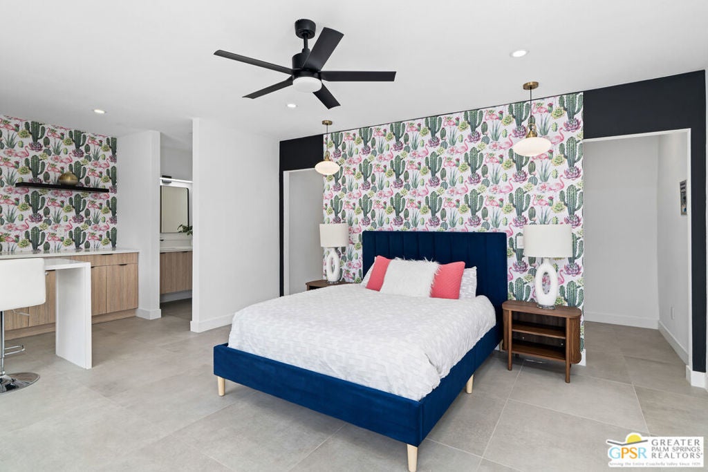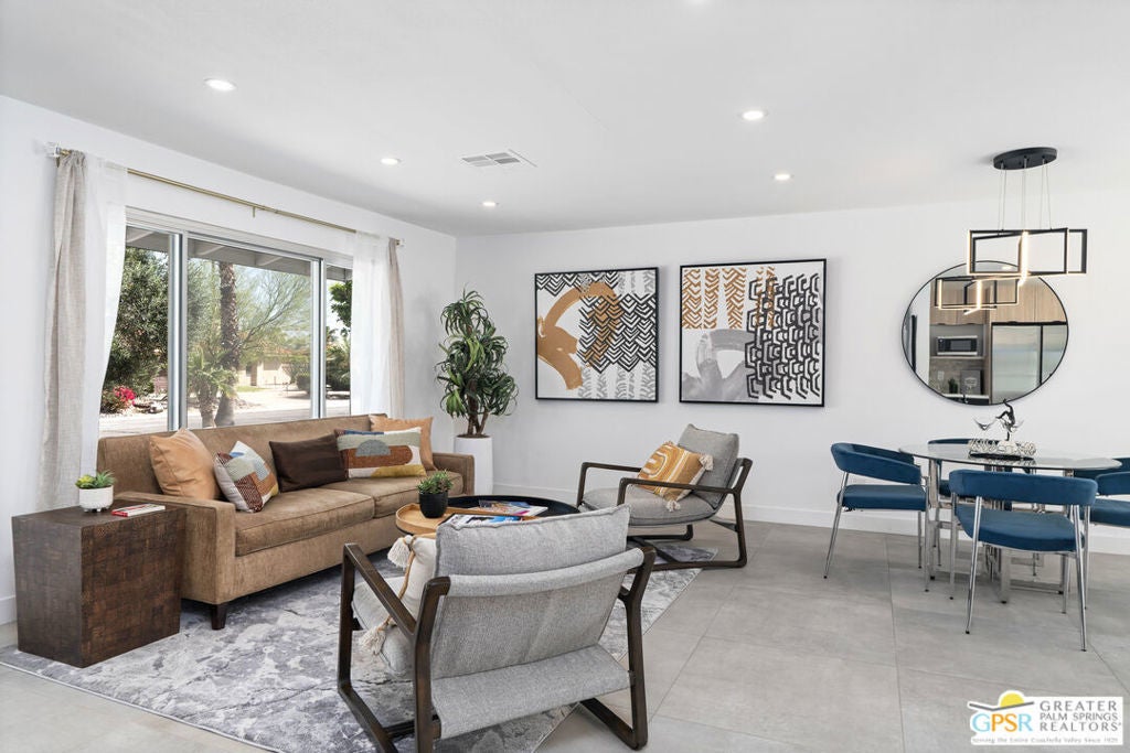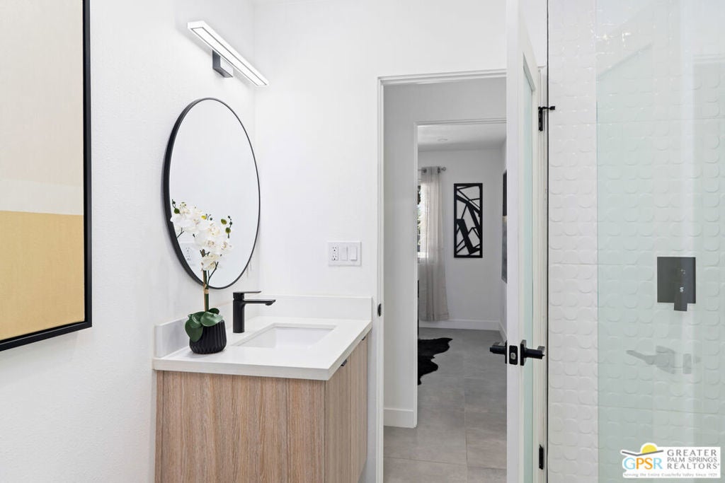 Welcome to 2175 N Sandra Rd, located in the Palm Springs neighborhood of Desert Park Estates. This 4 bedroom 3 bath home with amazing mountain views has been updated from top to bottom. As you walk into the open concept main living area you will notice all the custom touches throughout. The primary suite with its completely updated bathroom has direct access to the backyard. The backyard with its stunning mountain views, is perfect fo entertaining with a resort style pool and spa with tanning shelf, built in barbeque area, and a fire feature for enjoying the desert nights under the stars. The garage has been converted into a casita with a private entrance and its own mini split system make it a perfect area for guest or family that enjoy their own space away from the main house. Additional features include an extended driveway offering ample parking, including space for RV parking. Make an appointment today to view this wonderful opportunity to own your desrt oasis where you can Live your life in Shorts.