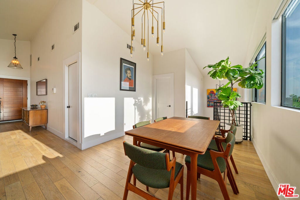 Located in the hills of Mt. Washington, this home captures breathtaking panoramic views that stretch from the Downtown Los Angeles skyline to the Griffith Observatory and the iconic Hollywood Sign. Vaulted ceilings and an open floor plan create a bright, airy living space, with walls of windows designed to showcase the sweeping city vistas from nearly every room. The kitchen opens directly to the living and dining areas, making the layout ideal for both everyday living and entertaining.Downstairs, the primary suite feels like its own retreat, complete with a beautifully appointed bathroom, sun deck, and an oversized walk-in closet. Two additional bedrooms and a media room open to the lush backyard, offering flexible space for guests, work, or relaxing at home.A separate living space with its own private entrance provides added versatility for guests, extended family, or a workspace (buyer to verify permits and use).Expansive decks and terraced outdoor areas are perfect for entertaining, weekend BBQs, or simply enjoying sunset views and the city lights below. Situated on a quiet, low-traffic street, this peaceful hillside home offers a tranquil setting just minutes from Highland Park, Downtown LA, Pasadena, and Hollywood the best of Mt. Washington living.