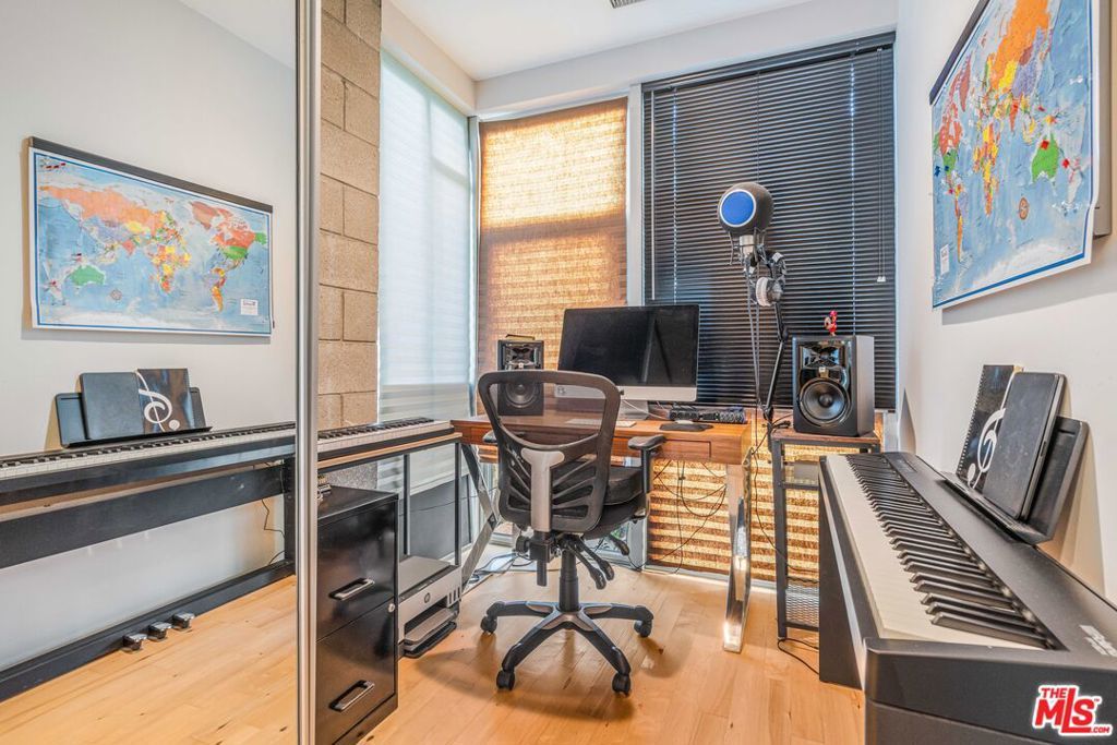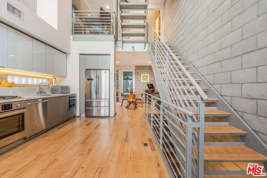 This four-level townhouse style residence in a secure gated community features open-concept living with abundant natural light. Soaring 18-foot ceilings along with unique wood, steel and glass architectural details set the tone of industrial elegance and create a wow factor upon entry. This is the most desirable floor plan of the two-bedroom, three-bathroom units and is fully updated with high-end finishes, including Bosch stainless steel kitchen appliance suite, LED lighting throughout and refinished floors. This highly coveted end unit is extra quiet and enjoys added privacy with only one shared common wall, three balconies, and seven additional windows. The primary suite is situated on its own level with its own office space, spa-like bath and built-in closet system. An enclosed secondary bedroom (rare for the complex) is adjacent to a full bath and is also on its own level ensuring maximum privacy for guests. You will appreciate an oversized garage that is currently in use as a gym but can easily accommodate two cars with additional room for storage. Recent updates include a new water heater and washer/dryer installed in 2025. The complex offers community BBQ and lounge areas along with a dog park all within a private gated setting with a low HOA. Take advantage of the many benefits of residing in one of the rare live/work communities in Los Angeles. This unbeatable location where the Hollywood Hills and Studio City merge is close to anywhere you need to be in the Los Angeles area. Enjoy the feel of a single-family home with features like a private attached garage and direct ground level entry along with the comfort and safety of living in a gated community.