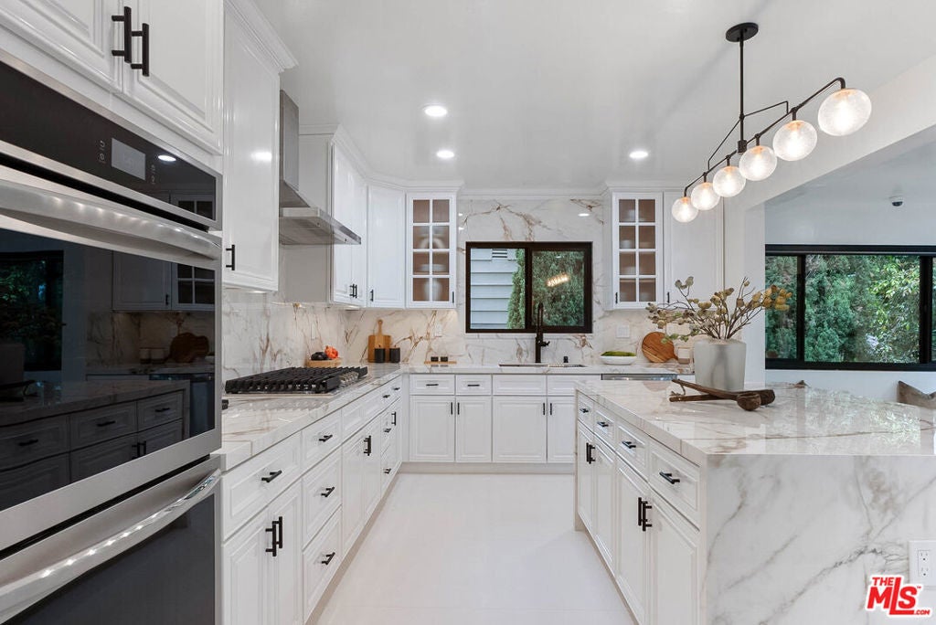 Located in highly sought-after Lower Bel Air, this beautifully remodeled home offers approx. 3,800 sq ft of living space on a serene, private lot. With 5 bedrooms and 5 bathrooms, this spacious residence features a functional layout with 3 bedrooms and 3 bathrooms on the main floor, 2 additional bedrooms and 2 bathrooms on the lower level. Ideal for guests, office space, or extended family. The home includes a formal dining room, a bright breakfast area with a breakfast counter, and a generous living room with fireplace that overlooks the backyard and pool. A separate family room with its own fireplace, a stylish bar, and a dedicated laundry room enhance the comfort and convenience of daily living. Additional features include a two-car garage and a peaceful backyard oasis with a sparkling pool and jacuzzi. Perfect for entertaining or relaxing in total privacy. This turnkey property offers the ideal blend of space, style, and tranquility in one of Bel Air's most prestigious neighborhoods. Photos are from when the property was staged. Home is not currently furnished