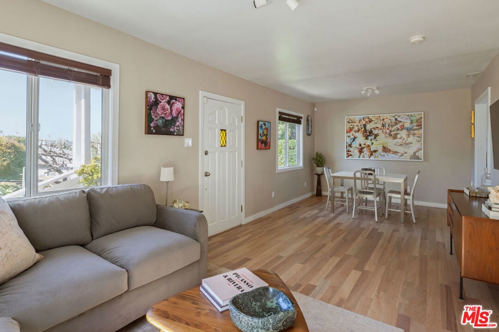 Glassell Park is the setting for this private retreat featuring a one-bedroom California Bungalow and detached ADU nestled above the street. From the covered front porch, enter the open, light-filled interior where hardwood floors extend throughout. The updated kitchen features stainless appliances and provides generous storage and prep space; an adjacent sunny bonus room is ideal for a home office. The ensuite bedroom enjoys a walk-in closet, and the bath is remodeled with Old Hollywoodinspired design. Fully detached with its own address, the ADU includes a kitchen, built-in bed, and a bath with a skylight. The versatile unit is perfect for hosting guests, a creative studio, or generating rental income. Relax in the wraparound yard, a serene backdrop for morning coffee or starlit dining with multiple patios and a deck anchored by a fountain. Amenities include gated driveway and AC. You're a short hop to Lemon Poppy Kitchen, Wife of Somm, Dunsmoor, Verdugo Bar, and Glassell Park Tennis Courts.
