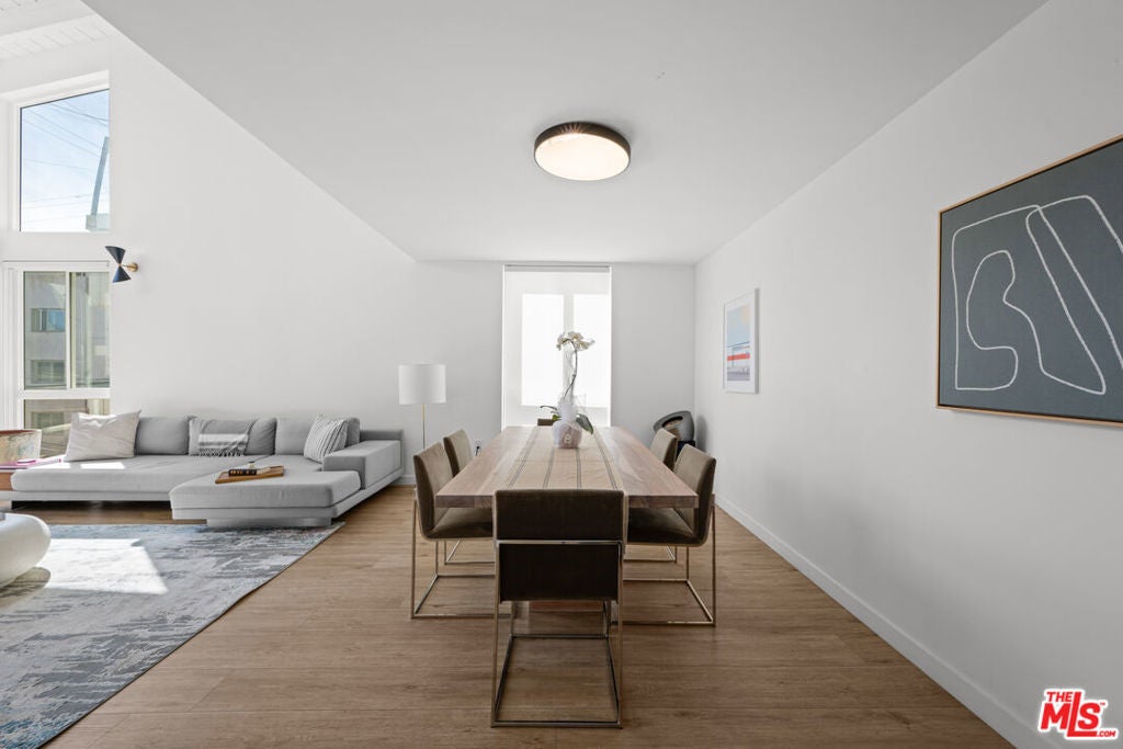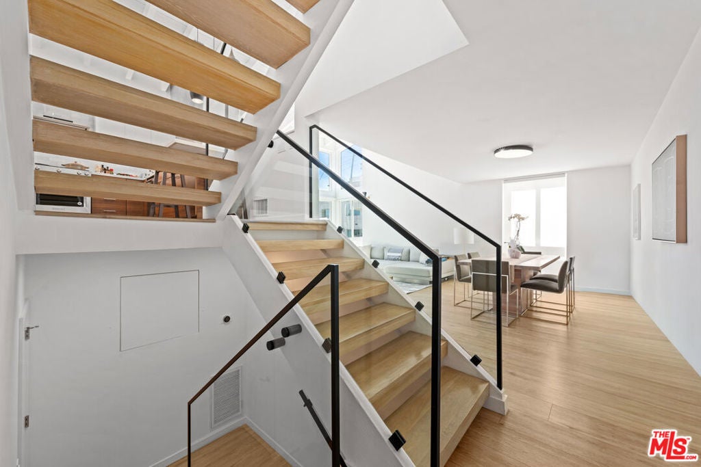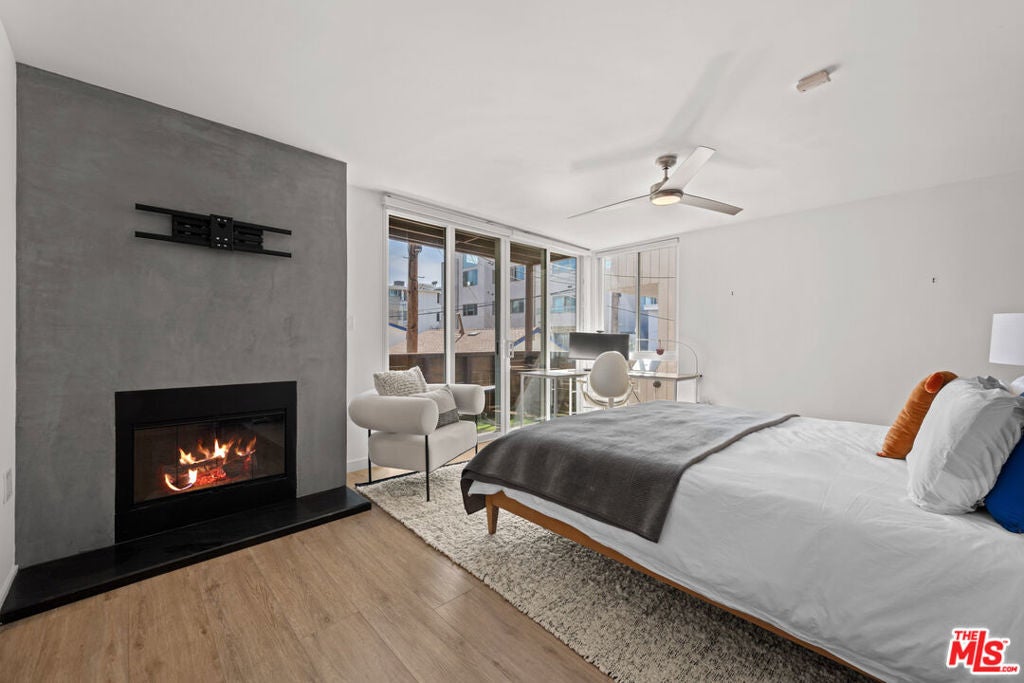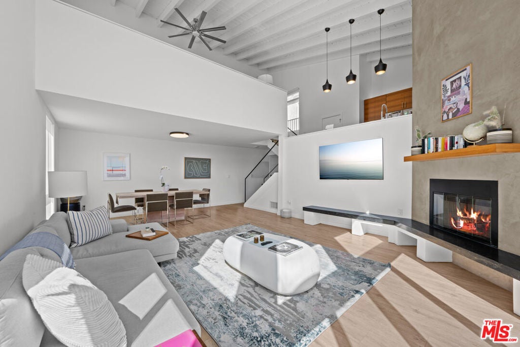 Live the Marina Peninsula beach lifestyle steps from the sand in this light-filled contemporary residence on a quiet walk street in Marina del Rey. Ideally positioned onthe sought-after southern end of the Peninsula, this multi-level condo offers airy interiors, architectural volume, and effortless coastal living. Spanning approximately 1,752 square feet, the open concept floor plan features soaring ceilings, expansive windows, wood flooring, and a gas fireplace that anchors the spacious living room. Natural light fills the great room, creating an inviting setting for both relaxed daily living and entertaining. The main level flows to a private patio where ocean breezes and walk-street charm define the experience. The modern kitchen features stainless steel appliances, stone countertops, andstreamlined cabinetry, opening seamlessly to the dining and living areas. Upstairs, the primary suite feels bright and serene with its own private balcony and a spa-inspired bath complete with a spacious walk-in shower and dual vanity. The secondary bedroom is generously sized with ample closet space and access to a well-appointed full bath. Overlooking the living space below, the loft provides exceptional flexibility as a thirdbedroom option, home office, or creative retreat. Additional highlights include a powder room, a dedicated laundry room with bonus flexspace, substantial interior storage, two tandem covered parking spaces, and a rareadditional storage closet. The community front patio offers an inviting outdoor space forlounging and entertaining. Located moments from the beach, the Venice Canals, Marina Jetty, scenic bike paths, and the dining and shopping along Abbot Kinney Boulevard, this home captures the essence of refined Peninsula living. Turnkey, coastal, and ideally positioned on the Marina Peninsula.