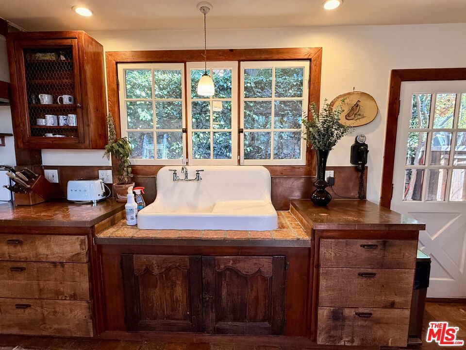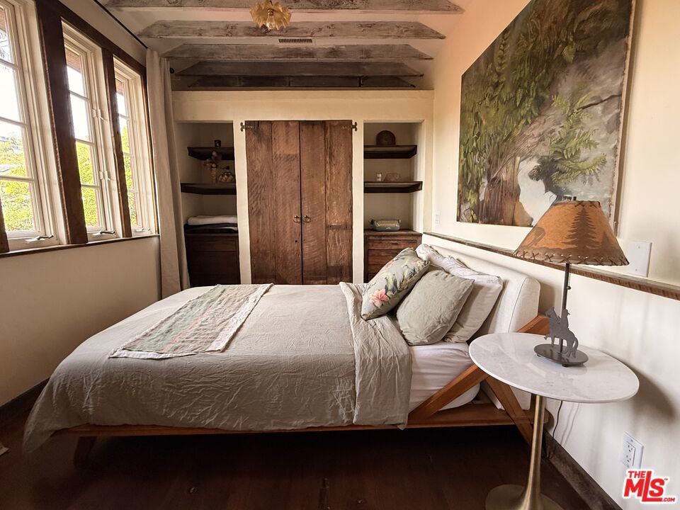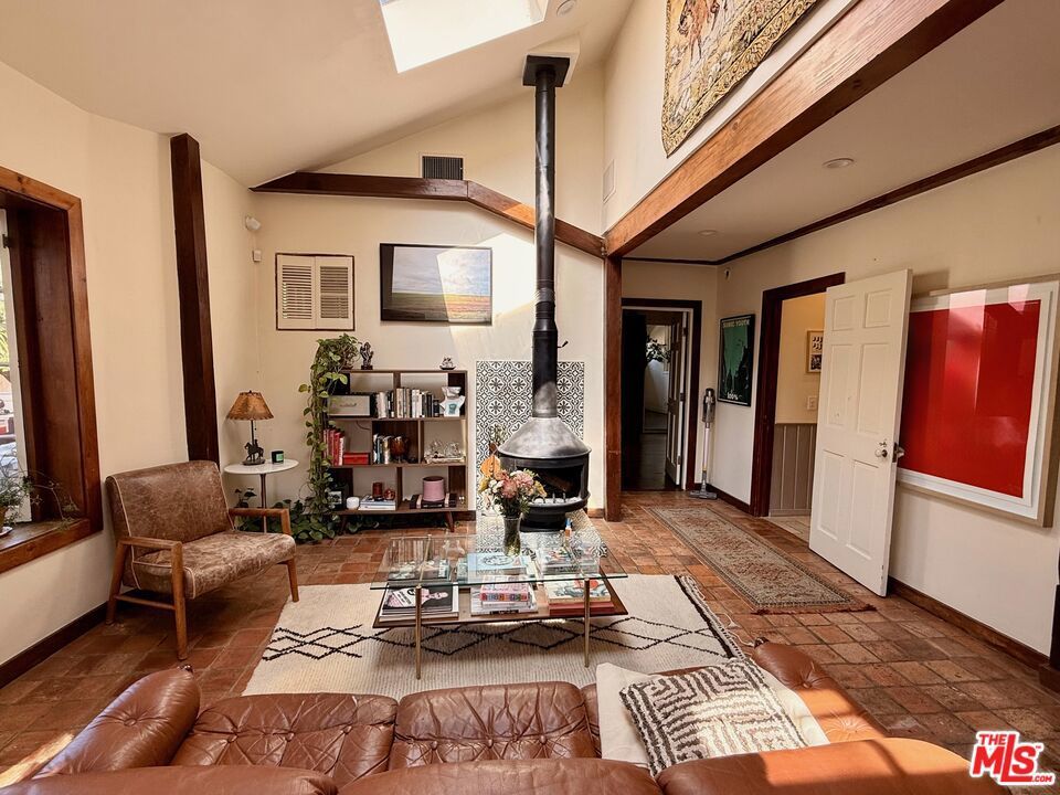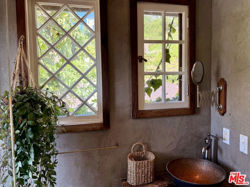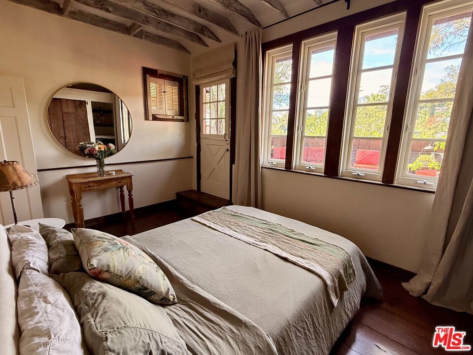 Furnished 1940s Beachwood Canyon Retreat with Treetop Deck & Creative Loft! Drenched in history and tucked into the lush hills of Beachwood Canyon, this 1940s lower canyon retreat feels like a private treehouse sanctuary above the city. Set well above the street and wrapped in an expansive treetop deck with an outdoor kitchen and grill, the home offers rare seclusion just minutes from the energy of Franklin Village. The home offers 2 bedrooms and 2 full bathrooms, including an oversized loft-style third bedroom with a half bath ideal as an art studio, recording space, or inspiring creative retreat. The primary suite is a true escape, complete with a serene yoga room and spa-like luxury bath designed for restoration and calm. In the kitchen, striking copper countertops and a farmhouse sink create a bold yet timeless aesthetic, complemented by a separate laundry room for convenience. A rare opportunity to own a secluded canyon masterpiece in one of Los Angeles' most iconic hillside neighborhoods. Private. Creative. Authentic.