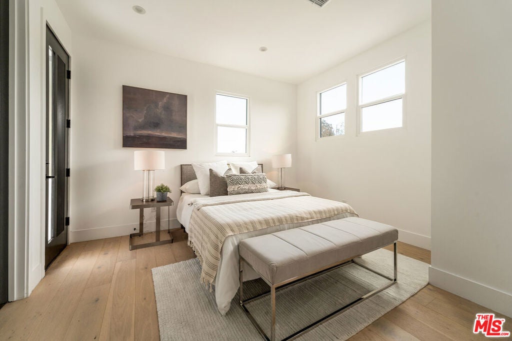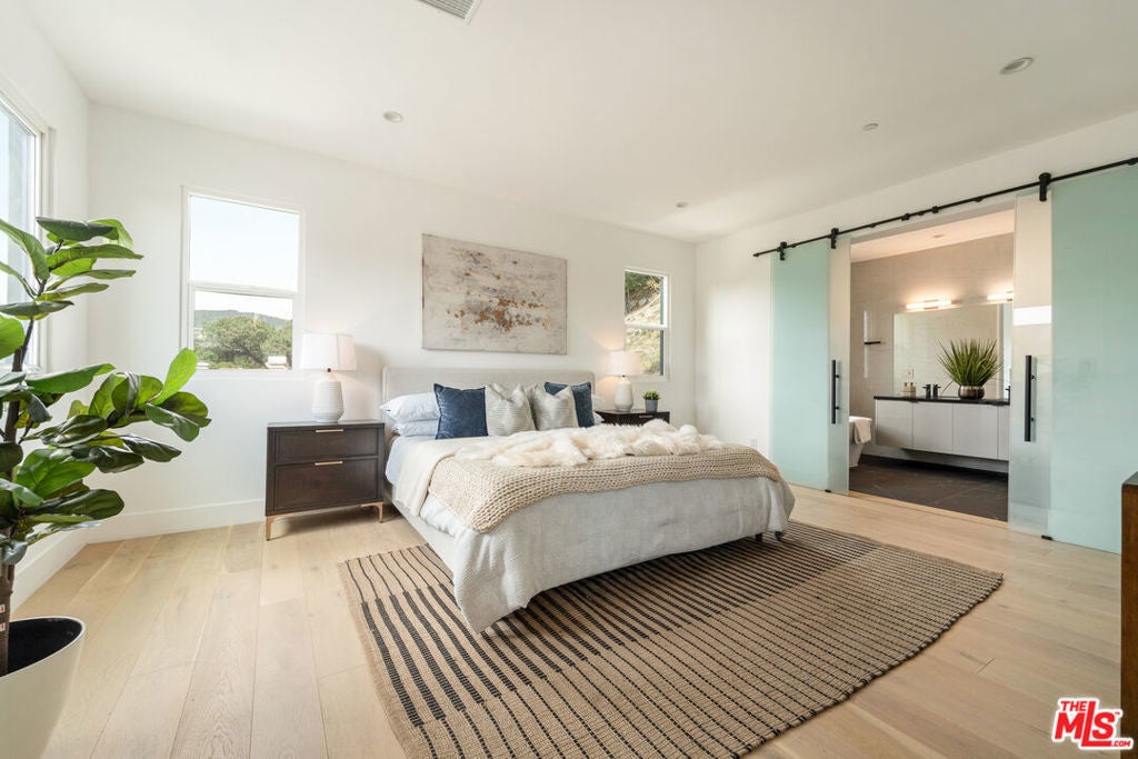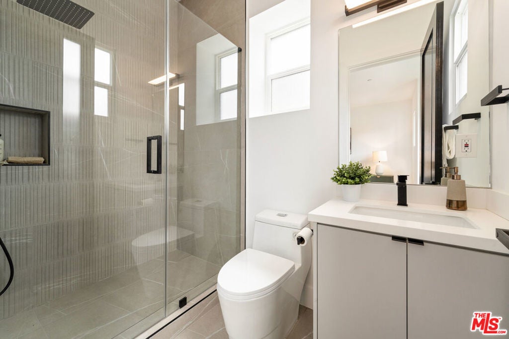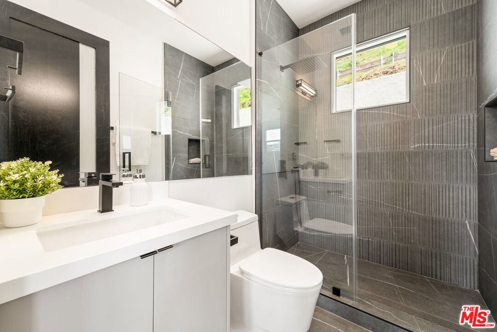 This newly constructed modern home features bright, open living spaces and premium finishes throughout. Featuring four bedrooms and five bathrooms, every bedroom is designed with comfort and convenience in mind, each complete with its own en-suite bathroom and custom walk-in closet. The main level welcomes you with a bright, open floor plan. Double doors lead into the living space, where a sleek glass staircase railing was chosen to enhance the open feel of the home. This level features both a living room and a family room, offering flexible spaces for relaxation and entertaining. You'll also find one bedroom with an en-suite bath and walk-in closet, a powder room for guests, and a spacious kitchen alongside the formal dining area. The kitchen is thoughtfully designed with both style and function in mind. An oversized two-tiered waterfall island becomes a natural gathering place, surrounded by high-end appliances from Miele, Bosch, Wolf, and Bertazzoni, custom cabinetry, a wine fridge, and a dedicated bar area. Upstairs, three additional bedrooms each feature their own en-suite bathrooms and custom walk-in closets. The primary bedroom is spacious, highlighted by a spa-like bathroom with a standalone tub, dual sinks, and a separate shower. Additional highlights include a two-car garage with epoxy flooring, abundant natural light throughout the home, and incredible privacy with only one neighbor and streetside privacy hedges. Ideally located in the heart of Glendale, this home provides easy access to downtown Glendale, Eagle Rock, Pasadena, and Silver Lake. Conveniently located near the freeway for easy access, the home's well-designed interiors remain peaceful and quiet. This is a rare opportunity to purchase at an exceptional value!