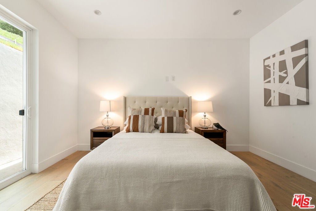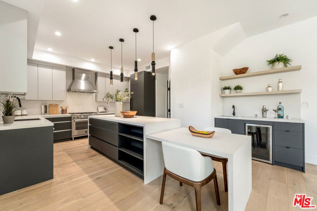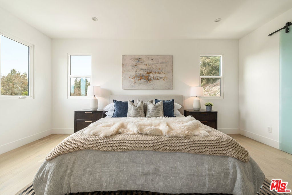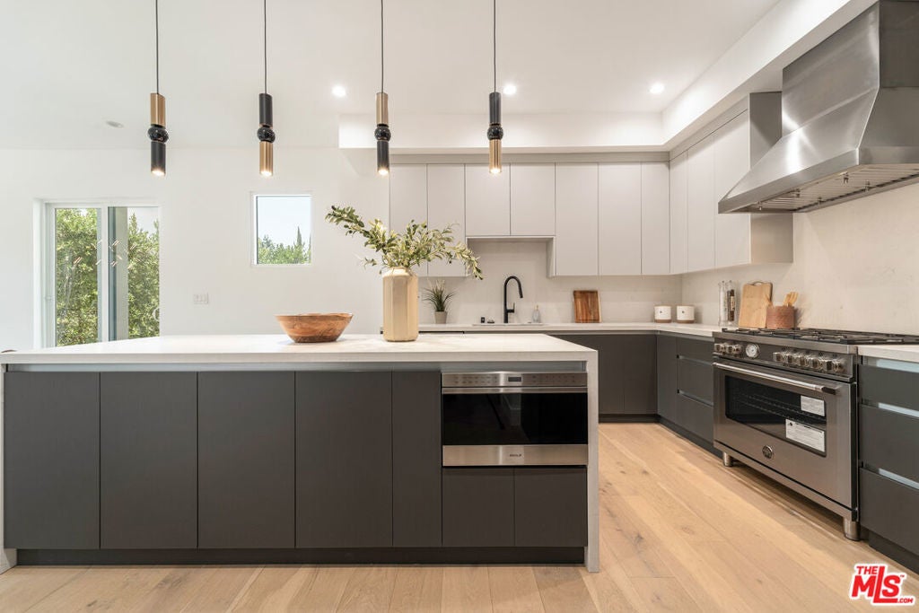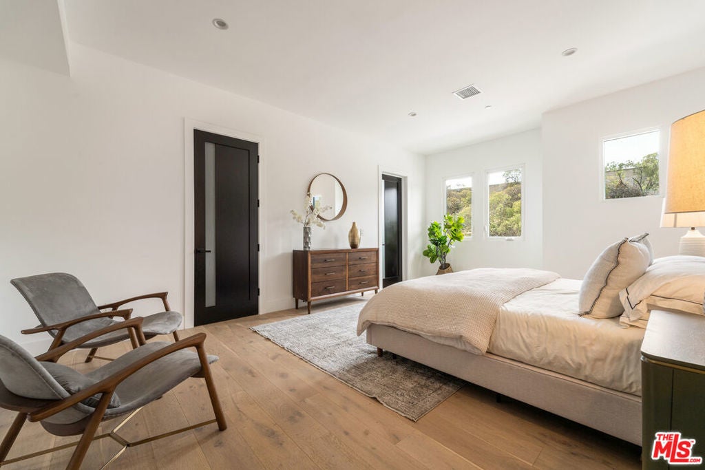This newly constructed modern home features bright, open living spaces and premium finishes throughout. Featuring four bedrooms and five bathrooms, every bedroom is designed with comfort and convenience in mind, each complete with its own en-suite bathroom and custom walk-in closet. The main level welcomes you with a bright, open floor plan. Double doors lead into the living space, where a sleek glass staircase railing was chosen to enhance the open feel of the home. This level features both a living room and a family room, offering flexible spaces for relaxation and entertaining. You'll also find one bedroom with an en-suite bath and walk-in closet, a powder room for guests, and a spacious kitchen alongside the formal dining area. The kitchen is thoughtfully designed with both style and function in mind. An oversized two-tiered waterfall island becomes a natural gathering place, surrounded by high-end appliances from Miele, Bosch, Wolf, and Bertazzoni, custom cabinetry, a wine fridge, and a dedicated bar area. Upstairs, three additional bedrooms each feature their own en-suite bathrooms and custom walk-in closets. The primary bedroom is spacious, highlighted by a spa-like bathroom with a standalone tub, dual sinks, and a separate shower. Additional highlights include a two-car garage with epoxy flooring, abundant natural light throughout the home, and incredible privacy with only one neighbor and streetside privacy hedges. Ideally located in the heart of Glendale, this home provides easy access to downtown Glendale, Eagle Rock, Pasadena, and Silver Lake. Conveniently located near the freeway for easy access, the home's well-designed interiors remain peaceful and quiet. This is a rare opportunity to purchase at an exceptional value!