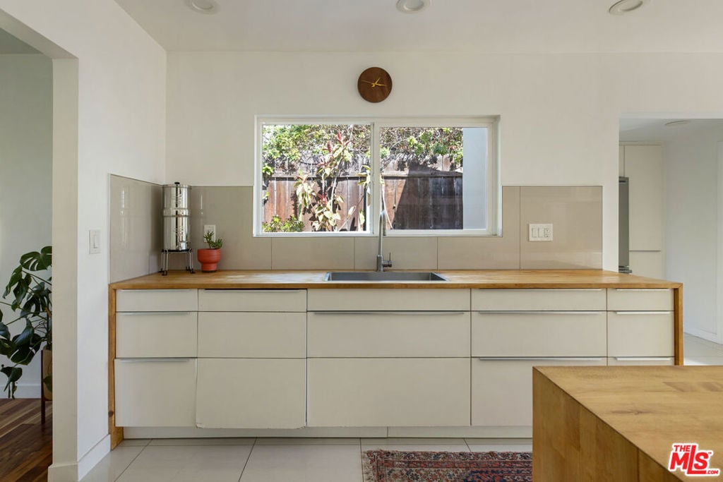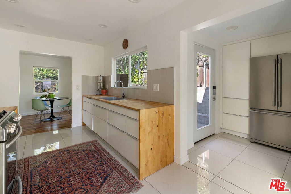 Rise above it all with this private hilltop retreat perched above Elysian Park. The updated 1947 Traditional feels fresh and modern, with light-filled living and dining spaces and beautiful wood floors throughout. The kitchen features butcher block countertops, stainless appliances, and generous storage. Three bedrooms provide room to spread out; two bathrooms include one with dual vanity sinks and a guest bath with a walk-in shower. Unwind on a porch swing in the fenced front yard facing the park, a peaceful setting to take in the lush greenery. An oversized rear deck, several patios, and ample outdoor space set the stage for alfresco dining and entertaining, with the DTLA skyline and Dodger Stadium fireworks illuminating the view. Amenities include radiant heat flooring, a one-car garage, and driveway parking. The location places you near the trails of Elysian Park and the dining, bars, and fitness studios along Sunset in Echo Park.