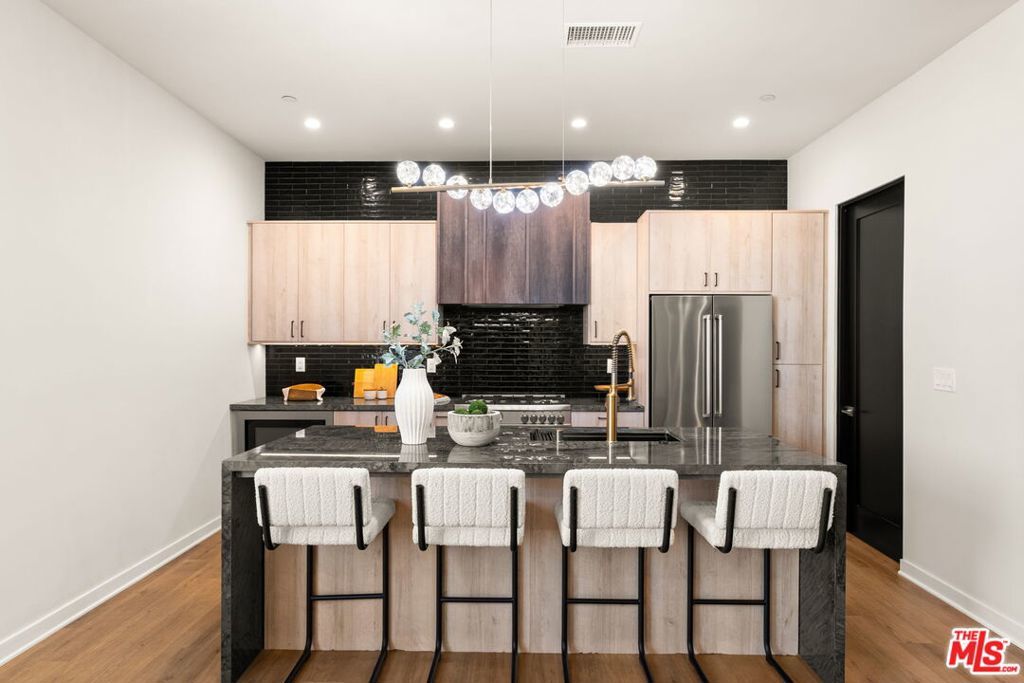 Step into refined loft-style luxury living in the heart of Costa Mesa, where this exceptional home is designed to impress. Ideally located near Triangle Square, you'll have effortless access to top-tier dining, shopping, and entertainment, while remaining just minutes from Newport Beach, Lido Village, and John Wayne Airport. Inside, dramatic 12-foot ceilings and sleek, modern finishes create a bright and open ambiance. The second floor serves as the heart of the home, showcasing a chef's kitchen equipped with premium Bertazzoni appliances, custom cabinetry, and elegant quartzite countertops. Warm vinyl flooring flows throughout, complementing the open-concept layout that seamlessly connects the kitchen, dining, and living areas. A cozy office or sitting nook provides a private retreat, while the adjoining space is thoughtfully designed as a refined cigar lounge or wine cellar - perfect for elevated in-home enjoyment. The third level unveils a thoughtfully designed retreat, where three spacious bedrooms and two bathrooms reflect a careful attention to detail throughout. The luxurious primary suite offers a serene escape, featuring an oversized walk-in closet and a spa-inspired bathroom with dual vanities and a generously sized walk-in shower. Just beyond, an expansive private rooftop patio invites you to unwind amid ocean breezes and sweeping city-light views. Two additional well-appointed bedrooms and a full bathroom complete this elevated living space with both comfort and style. Thoughtfully designed to balance comfort and functionality, the home is equipped with fire sprinklers on every level, offering an added layer of peace of mind. Car enthusiasts will appreciate the impressive two-car garage, distinguished by soaring 13-foot ceilings and a sleek epoxy finish. Upon entry, you'll also find a well-appointed laundry area and two spacious storage rooms, enhancing everyday convenience. Blending luxury, versatility, and an exceptional location, this distinctive residence is truly best appreciated in person.