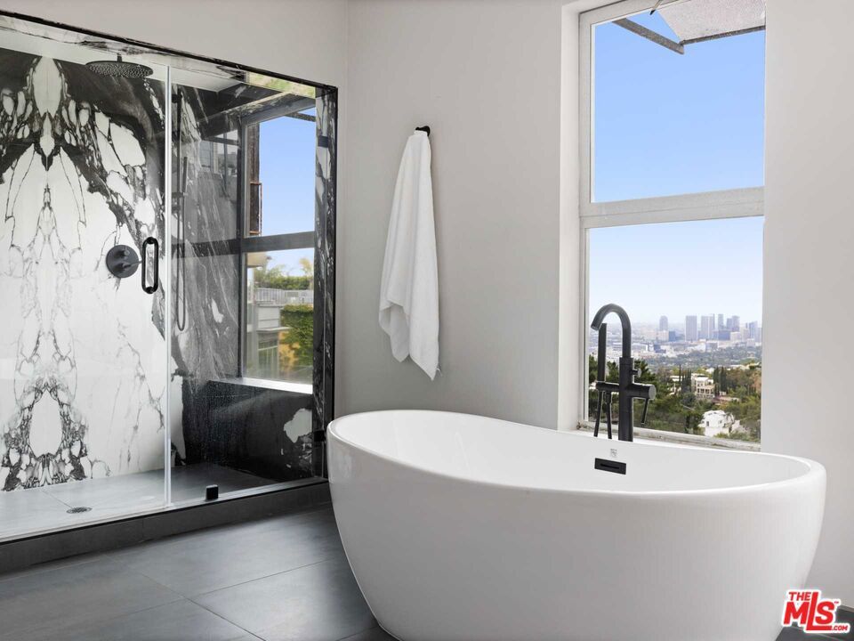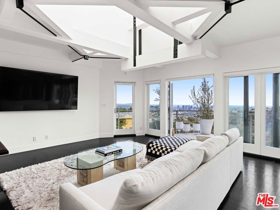 Perched high above the Sunset Strip on iconic Sunset Plaza Drive, this striking contemporary residence captures sweeping views across Century City, the ocean and the surrounding canyon landscape. Designed by noted architect Brian Murphy and featured in Elle Decor, the home is a rare example of timeless Hollywood Hills architecture paired with modern livability. Spanning approximately 2,933 square feet, the residence offers three en-suite bedrooms arranged across three light-filled levels. At the top of the home, a dramatic great room showcases soaring ceilings, skylights that flood the space with natural light, and walls of glass that open to a private balcony framing panoramic city and canyon vistas. The open-concept kitchen is both sleek and functional, appointed with black marble countertops, a Gaggenau refrigerator, and premium Miele appliances. A sculptural floating staircase connects each level, creating a sense of architectural flow throughout the home. Each bedroom features distinctive design elements, private outdoor access, and captivating views. The primary suite is a true retreat with double-height ceilings, expansive floor-to-ceiling windows, a private balcony, and a spa-inspired bath complete with soaking tub, dual vanities, LED-lit mirrors, and a striking marble shower. With a two-car garage and the world-class dining, shopping, and nightlife of the Sunset Strip just moments away, this architectural residence offers an exceptional opportunity to experience refined hillside living in one of Los Angeles' most coveted locations.