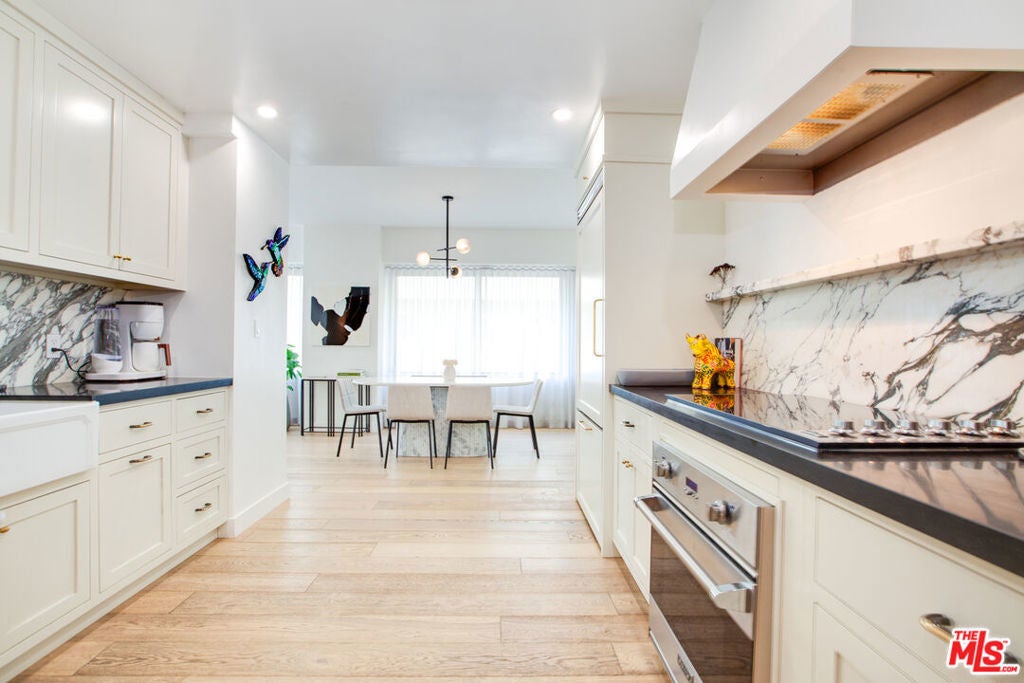 A rare opportunity to own one of the Wilshire Corridor's most coveted full-service luxury residences, offering the ultimate in refined hotel style living. Ideally situated in the center of Westwood, just minutes from Rodeo Drive, Beverly Hills, Century City, UCLA, Westwood Village, and the Los Angeles Country Club, this stunning residence delivers sophistication and unparalleled convenience. Completely remodeled with impeccable design and plush comfort in mind, this 3bedroom, 3bath residence spans approximately 2,071 square feet and features an open, light filled floor plan ideal for both elegant entertaining and everyday living. Beautiful hardwood floors flow throughout, complemented by a curated designer palette and generous natural light. The chef caliber gourmet kitchen is a masterpiece, showcasing top of the line stainless steel appliances, a Viking glass cooktop and oven, custom cabinetry with sleek hardware, exquisite marble accents, farmhouse sink, and a gracious dining area perfect for hosting. A formal dining space and expansive living room complete the main living areas with an effortless style. Designed for comfort and privacy, the home offers two luxurious primary suites. The main primary retreat features a grand walkin closet and a spa inspired en-suite bathroom with a standalone soaking tub, separate rain shower, water closet, dual sink vanity, and premium finishes throughout. Additional highlights include custom closets, a full size in-unit laundry room, custom drapes, and thoughtful upgrades at every turn. Residents of The Dorchester enjoy an exceptional array of five-star amenities, including 24hour concierge and doorman security, full time valet parking, rooftop pool, sauna, newly renovated fitness center, meeting room, and attentive onsite staff renowned for gracious service. The comprehensive HOA also includes package and grocery delivery, maintenance, and trash and recycling services. Additional features include gated garage parking for two vehicles, elevator access, and proximity to renowned cafes, dining, shopping, entertainment, and cultural destinations. Experience true luxury condominium living in one of Westwood's finest full-service buildings.