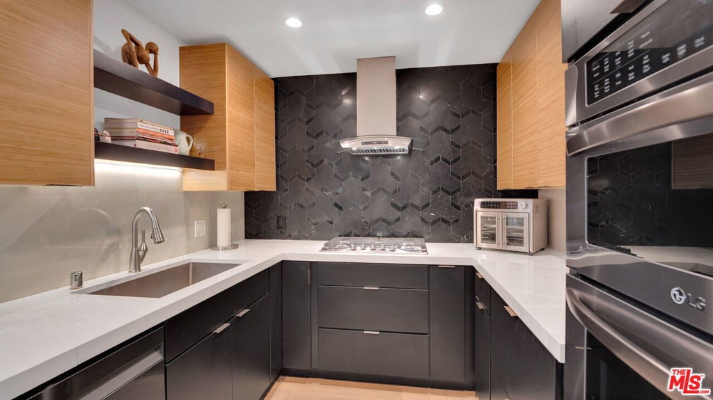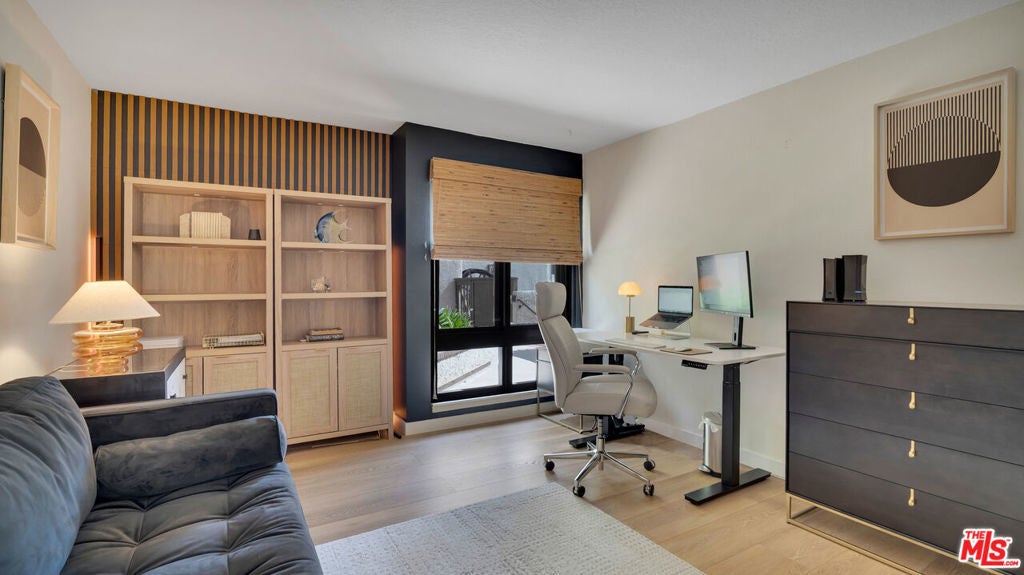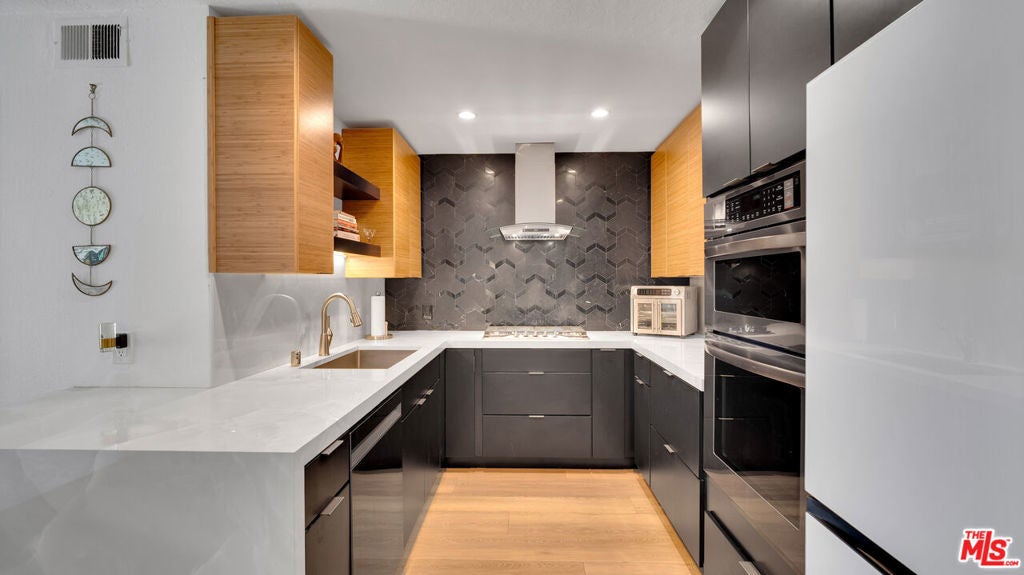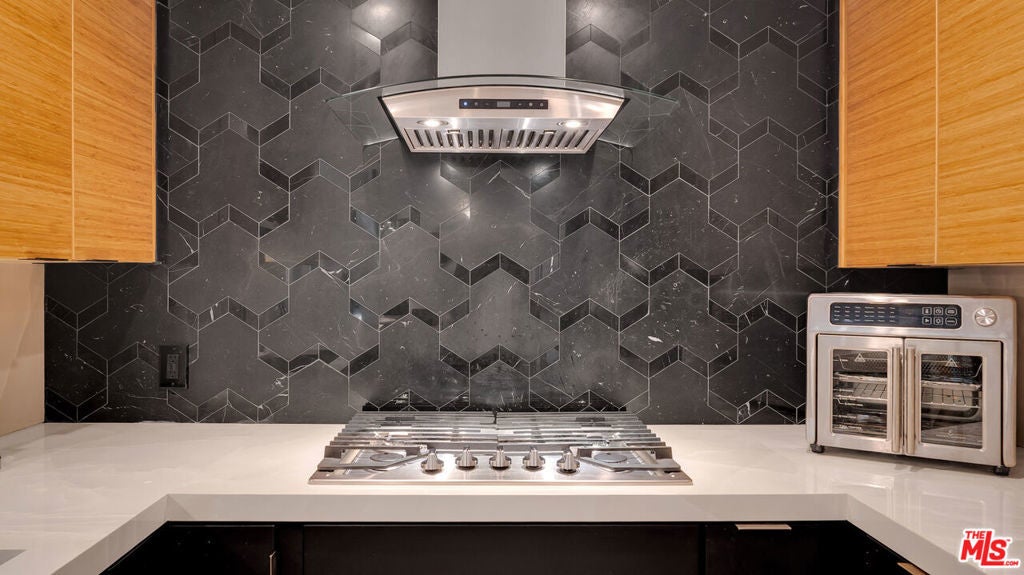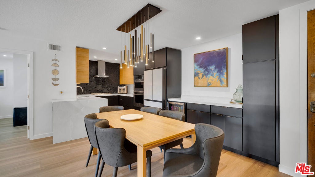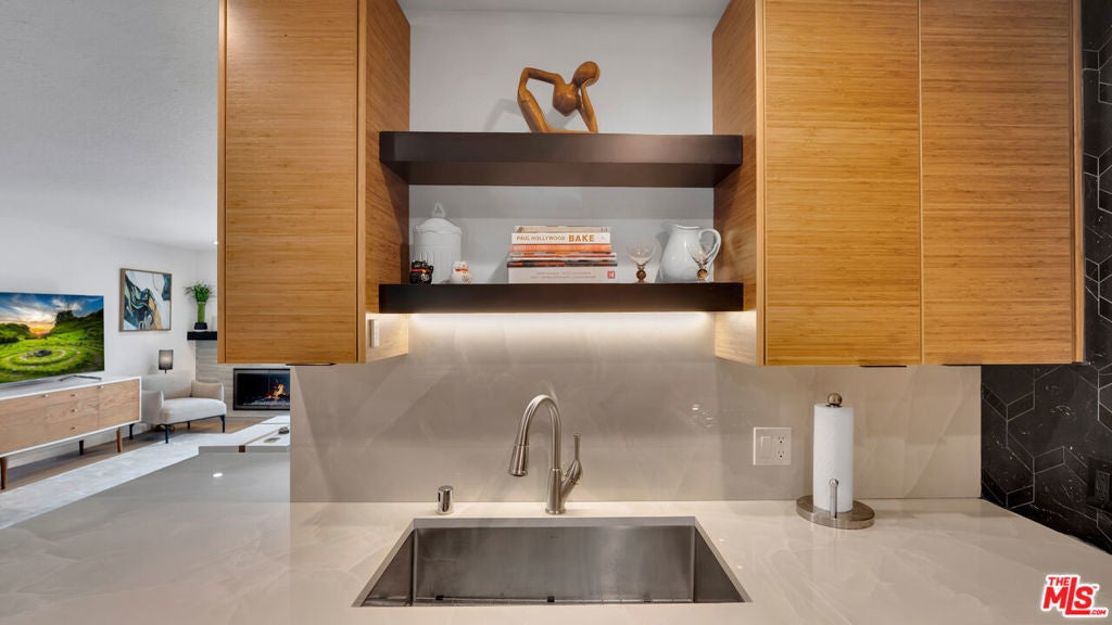 Designer-Renovated 3-Bedroom Condo with Expansive Private Terrace in Playa del ReyWelcome to Villas del Rey, one of the most desirable gated communities in the charming coastal neighborhood of Playa del Rey. This beautifully renovated 3-bedroom, 2-bath residence offers approximately 1,367 square feet of thoughtfully designed living space and an ideal split-bedroom layout that provides both privacy and flexibility.The home opens into a spacious open-concept living and dining area featuring luxury vinyl plank flooring, recessed lighting, and a contemporary fireplace with custom surround, creating a warm yet sophisticated space for relaxing or entertaining. Large sliding doors lead to an exceptionally spacious private terrace (approximately 23' x 17')perfect for outdoor dining, entertaining guests, gardening, or enjoying the coastal breeze.The fully remodeled designer kitchen is a standout feature of the home, showcasing striking Italian porcelain backsplash and waterfall countertops, custom bamboo wood upper cabinetry paired with velvet black lower cabinets, and a full suite of Samsung appliances including a Bespoke refrigerator, new dishwasher, stove, oven, and microwave. A built-in beverage refrigerator and elegant 42" Santana dining chandelier complete the space, creating a stunning focal point for gatherings and everyday living.The primary suite offers a spa-inspired retreat, complete with a fully renovated bathroom featuring custom Kohler fixtures, dual sinks, and an oversized walk-in shower with dual water distribution and integrated stability bars for enhanced comfort and accessibility. Two additional bedrooms provide flexible space for guests, a home office, or creative studio.Additional highlights include:* In-unit laundry* Modern lighting throughout* Designer finishes and fixtures* Walk-in closet in primary suite* Abundant storage throughout* Luxury vinyl plank flooringResidents of Villas del Rey enjoy resort-style amenities, including a pool, spa, tennis courts, fitness center, sauna, clubhouse, and beautifully landscaped grounds within a secure gated community.Ideally located just minutes from Playa del Rey Beach, Marina del Rey, Playa Vista, Silicon Beach, and LAX, this home offers the perfect balance of coastal living and urban convenience.