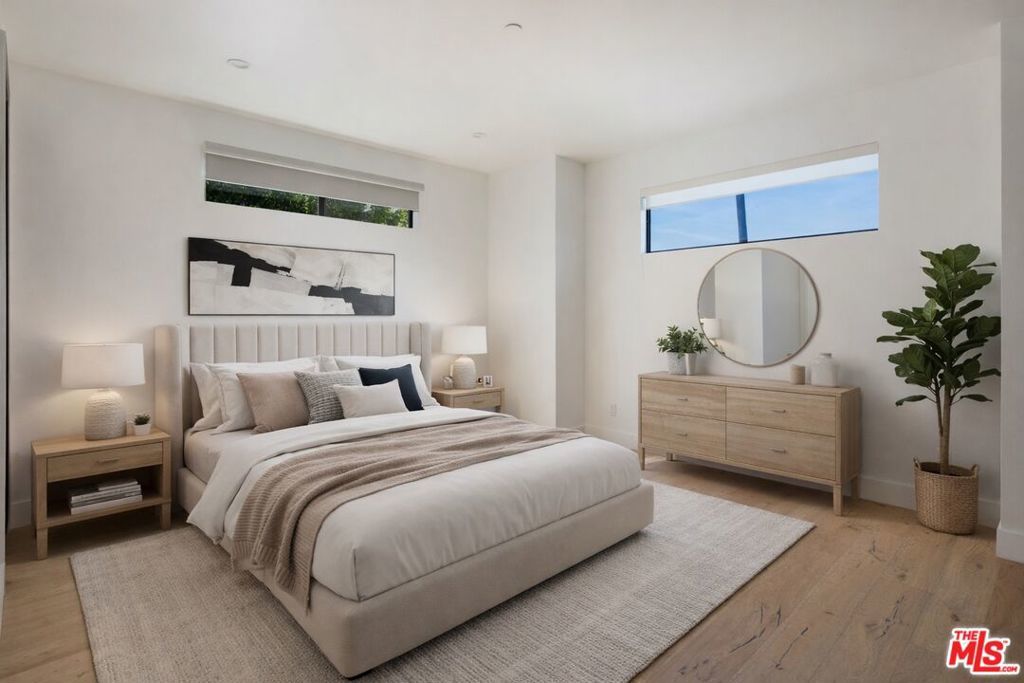 Experience elevated living in Prime Beverly Grove. This newly constructed, gated modern architectural residence offers a rare blend of privacy, scale and refined design. Walls of glass and soaring ceilings flood the interiors with natural light, while wide-plank hardwood floors, designer tile and curated finishes create a sophisticated, contemporary palette. The open two-story floor plan (plus basement media/screening room) flows beautifully for both relaxed family life and grand gatherings. At the heart of the home is the chef's kitchen featuring top-of-the-line Viking appliances, elegant countertops, a massive center island, three ovens, dual sinks and a large walk-in pantry. Fleet wood sliding doors from the living room open to a private backyard retreat designed as a true resort setting with a full-size pool and spa, fire-pit, built-in BBQ, tranquil waterfall and a shaded cabana enveloped by mature landscaping, ideal for effortless year-round entertaining. Upstairs, the primary suite unfolds as a private serene retreat, complete with a fireplace, secluded balcony, spa-inspired bath with soaking tub and rain shower and an expansive walk-in closet. Located on a quiet, tree-lined street just moments from West Hollywood, The Grove, and Beverly Center, this modern estate delivers a rare balance of scale, sophistication, and seamless indoor-outdoor living in one of Los Angeles' most vibrant lifestyle settings.