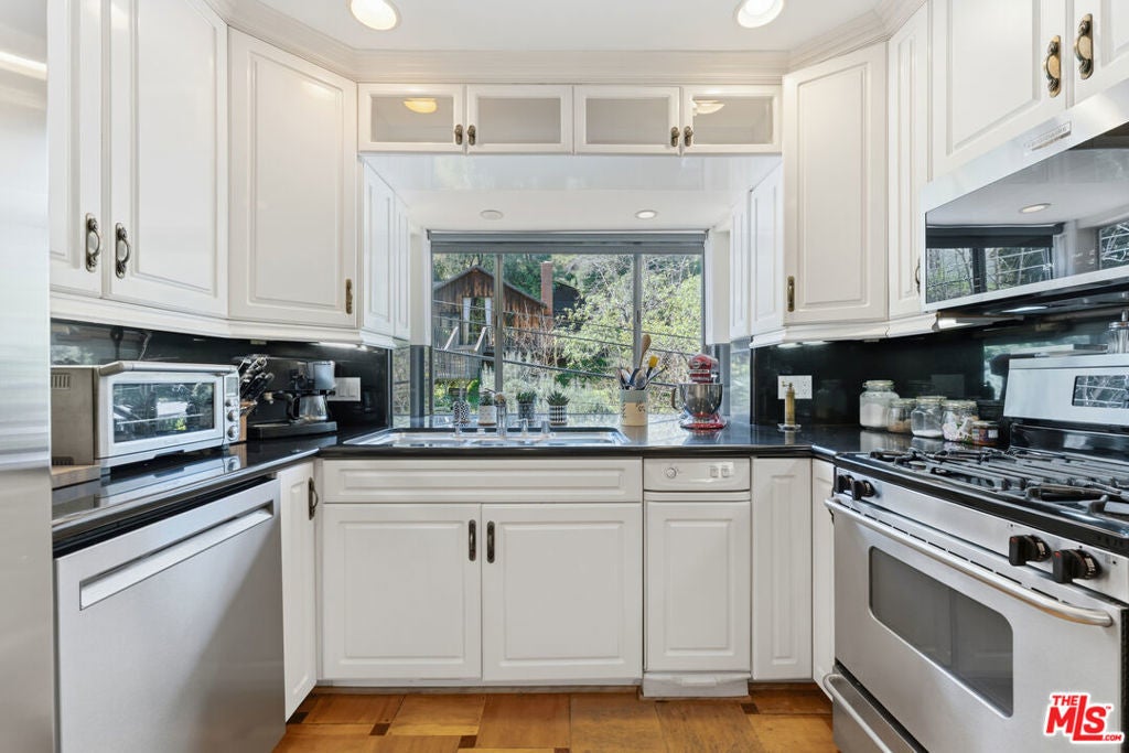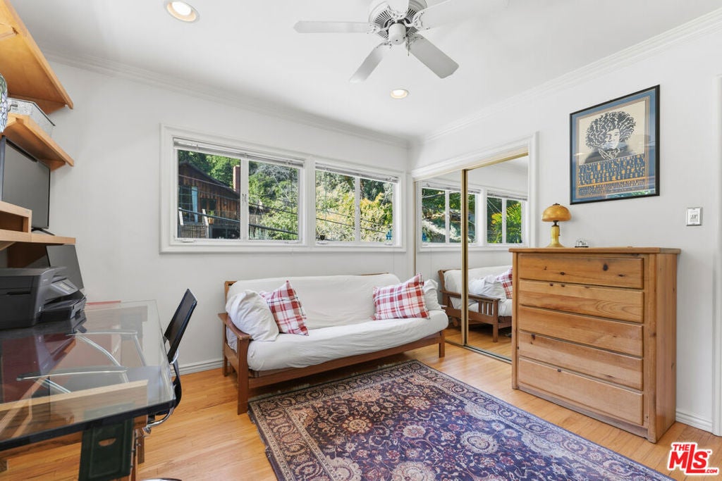 First Time on the Market in Over 20 Years, this inviting two-story traditional home is nestled in the serene setting of Laurel Canyon. With approximately 1,547 square feet of living space sited on a generous lot of over 8,000 square feet, this warm and cozy residence offers classic charm in a peaceful canyon backdrop. The upper level features two bedrooms and two bathrooms, along with a welcoming living room centered around a fireplace. The primary suite and main living areas open to a lovely, private backyard that borders protected open space, creating a tranquil indoor-outdoor connection. Downstairs, a bonus space with separate entrance includes a full bathroom and kitchen offering flexibility for guests, work or additional living options. The property also includes a good-sized two-car garage and additional third off street parking space. Located within the desirable Wonderland Avenue Elementary School district and just minutes from Hollywood to the south and Studio City to the north, this special property presents a rare opportunity for its next owner to move right in or update and personalize in one of Los Angeles' most iconic canyon neighborhoods.