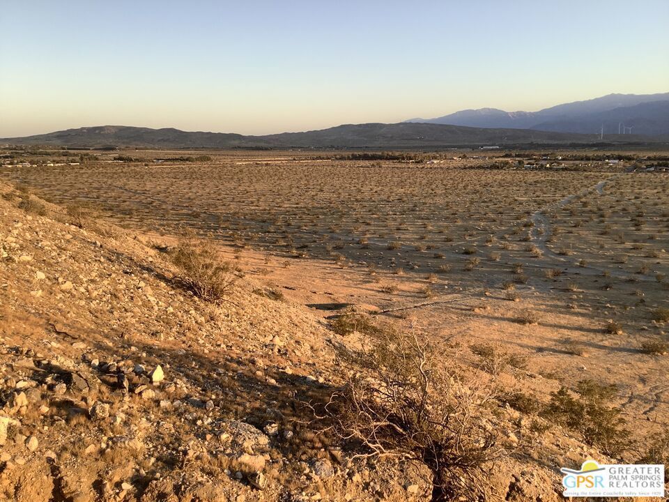 3.32 Private acres with level building site and mountain top view point. This property offers amazing sunset mountain views and privacy. W-2 zoning allows for many different types of use. Electricity available nearby and a unique opportunity to drill your own private well. Desert Hot Springs is known for its award winning mineral water and this property offers you the opportunity to drill your own personal well. Buyers and agents to perform their own due diligence to verify electric, water, lot size and use.