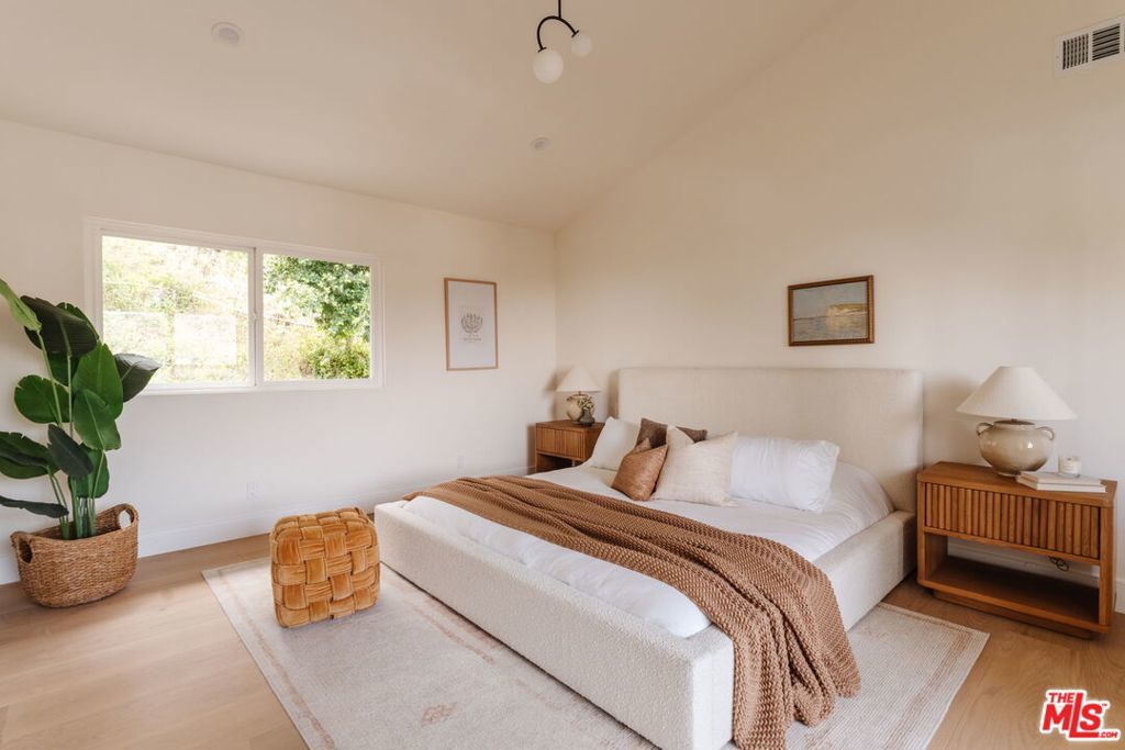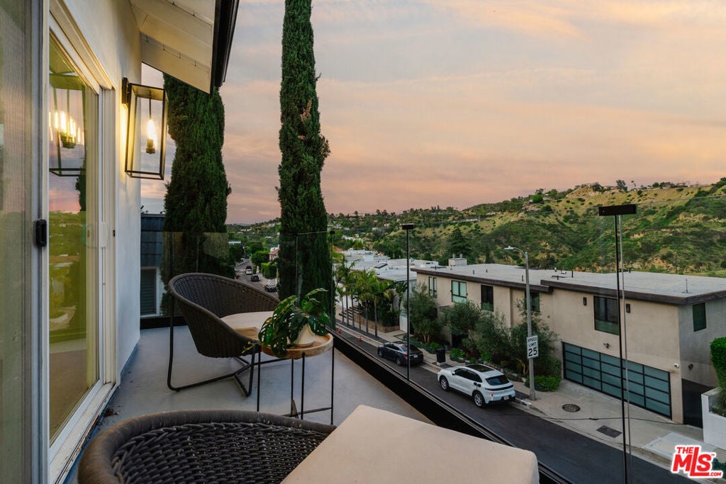 Welcome to 2339 Jupiter Drive, a beautifully reimagined multi-level residence offering hillside views in the prestigious Mount Olympus enclave of the Hollywood Hills. Set on a wide street with abundant parking, this fully renovated home blends elevated design, thoughtful upgrades, and effortless indoor-outdoor living. The exterior features smooth stucco accented by fire-resistant metal wood-look siding, creating a clean, modern facade. Enter through the dramatic pivoting frosted tempered-glass front door to light-filled foyer with marble entry, engineered white oak floors, and custom glass railings. The redesigned staircase, illuminated with built-in LED step lighting and creates a striking architectural centerpiece. The main living areas flow seamlessly to front-facing balconies where views of rolling hills provide a breathtaking backdrop from sunrise to sunset. A gas fireplace with ceramic logs anchors the living room, adding warmth and ambiance next to the formal dining room. The reimagined kitchen features oak shaker cabinetry, ocean-grey quartz countertops, a stylish wet bar, a spacious eat-in peninsula, complemented by a full suite of stainless appliances. Upstairs, 4 bedrooms and 3 bathrooms have been fully remodeled with modern finishes, LED fogless mirrors, and a cohesive, spa-like aesthetic. The principal suite boasts vaulted ceilings, a walk-in-closet, ensuite bathroom with soaking tub, washlet toilet, and a private balcony that overlooks the city lights. Extensive system upgrades include a new all-electric furnace, new AC compressor, updated 220 electrical wiring, integrated CCCT wiring for cameras, speakers, and security. Located just moments from the Sunset Strip, West Hollywood, and Studio City, this turnkey Mount Olympus residence delivers iconic Hollywood Hills living with modern comfort and design. Welcome home!