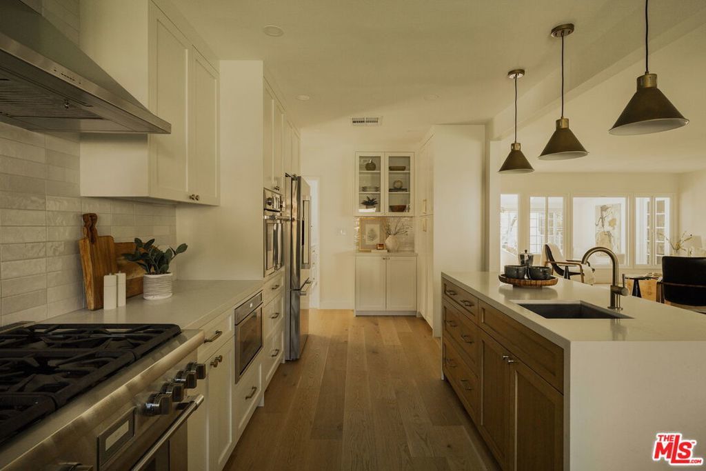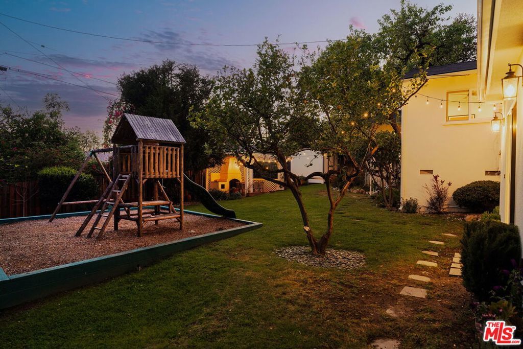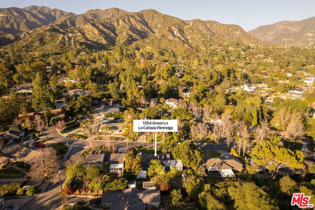 Extensively remodeled and thoughtfully upgraded, 1354 Green Lane blends timeless charm with modern comfort. Located on a quiet, tree-lined street near the end of a cul-de-sac, this 4-bedroom plus office, 3-bath residence offers a warm and inviting layout. Enter to a light-filled living room with new gas fireplace that opens to a fully redesigned, stunning chef's kitchen. Kitchen features stainless steel appliances, including 6 burner Thermador range with pot filler, a large island, quartz countertops, custom cabinetry and built-ins, along with a spacious dining area. Past the kitchen is a sun-drenched coffee bar alcove with wine fridge next to a home office, which could easily be a 5th bedroom. Beyond the main living room lies a welcoming sunroom, ideal for a family reading nook, playroom, or afternoon tea with garden view. A few steps down from the coffee bar sits a family room with an additional fireplace, providing flexible living space and access to the backyard. A private backyard retreat features a spacious lawn, covered dining area with fireplace, productive fruit trees, raised planting beds, a smart drip irrigation system, large storage shed, and even a play structure for the kids. Throughout the home, you'll find recently installed white oak engineered wood floors, along with designer tile in the 3 remodeled bathrooms that include Kohler and Toto fixtures. Major system upgrades include a new roof, windows, lighting, tankless water heater, updated plumbing, water softener, air ducts, attic insulation, new sump pump, and earthquake retrofit. Enjoy the convenience of a 2-car attached direct entry garage and a separate laundry room with bonus refrigerator, along with ample built-ins and counter space. Set in a highly sought-after neighborhood known for its friendly community and beautiful seasonal foliage, the home is a short distance to Memorial Park and La Canada Elementary. A rare opportunity to enjoy a fully upgraded home in one of La Canada's most charming and peaceful settings.