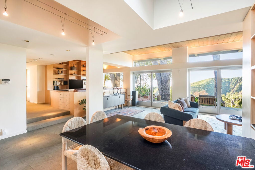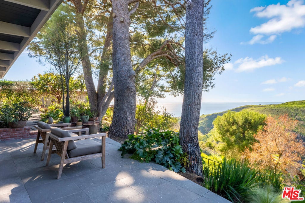 Leave the big city stresses behind when you enter this Zen-like retreat with breathtaking views of the ocean, canyon and mountains. Walls of glass provide the ultimate inside/outside environment, while skylights and clerestory windows allow the infusion of natural light.There is an open floorplan, with the entrance leading to the living room, dining area and family room, all with expansive views and opening to the rear patio and garden.Enjoy similar views from the serene primary suite, with a spacious walk-in closet that could also function as a private office. The second bedroom is also ensuite.The landscaped rear yard features fruit trees and multiple inviting spaces designed for relaxation and entertaining. The garage has direct entry into the house.This home provides a unique opportunity to experience a tranquil lifestyle while still having access to local schools and all the Palisades Village has to offer just moments away.