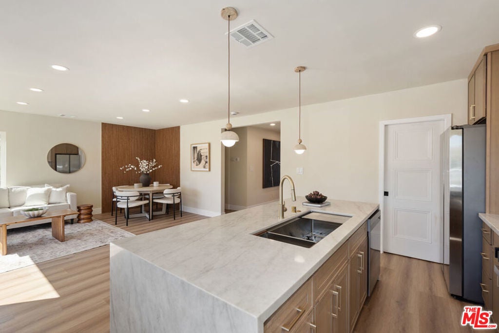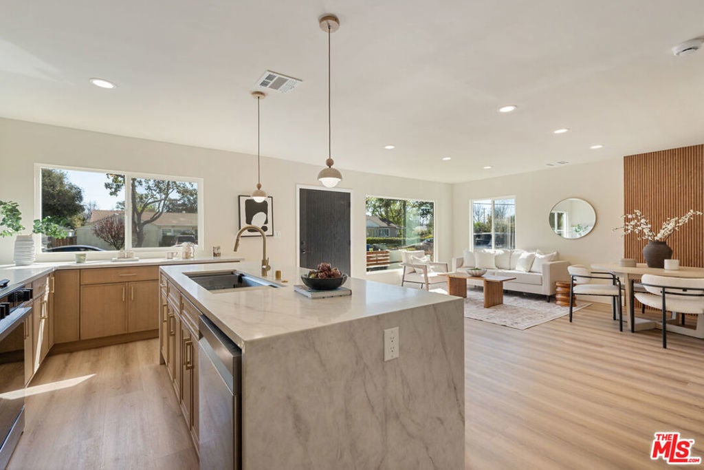 Welcome to a beautifully reimagined retreat in the heart of the Lake Balboa, located at 17643 Haynes Street where thoughtful design, effortless flow, and radiant natural light come together to create a home that truly elevates everyday living.This 3-bedroom, 2-bathroom residence was designed with connection and comfort in mind. The open-concept layout unfolds seamlessly, allowing the living, dining, and kitchen spaces to breathe and interact in perfect harmony. Expansive windows invite impeccable natural light to pour through the home, creating a warm, uplifting atmosphere and the perfect setting to start your mornings with coffee and calm before the day begins.Every detail has been curated to feel both elevated and inviting an ideal backdrop for intimate dinners, lively gatherings, or quiet evenings at home. The design celebrates simplicity, light, and livability, offering a space that feels both modern and timeless. Set so centrally located you're just moments from some of the area's most loved destinations from Ventura Blvd Encino Commons with hot spots like " The Spot" and " More then Waffles" or Enjoy a morning stroll through the peaceful grounds of The Japanese Garden, spend a sunny afternoon at Lake Balboa Park, or meet friends for coffee at the ever-popular Black Heart Coffee. Dining favorites like Casita Taco Al Carbon are also nearby, making it easy to enjoy some of the Valley's most beloved local spots. This is more than just a home it's an invitation to experience light, space, and lifestyle in one of the Valley's most accessible and vibrant neighborhoods.