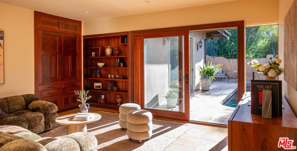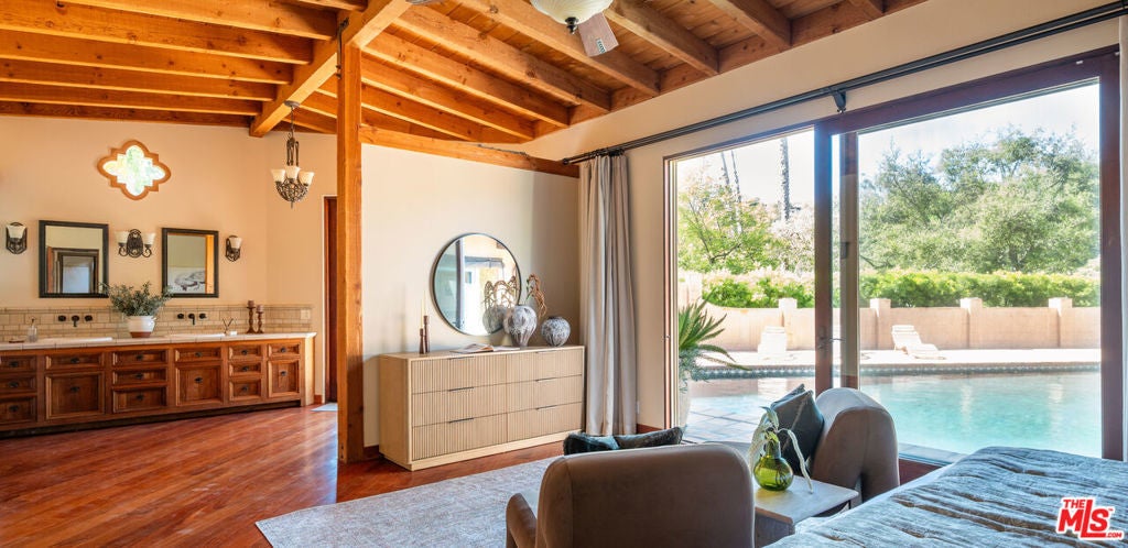A beautifully preserved vintage Spanish retreat, this sun-filled residence blends classic architectural character with the effortless elegance of mid-century design. Spanning almost 2700 sq ft with four bedrooms and five baths, the home is filled with natural light and thoughtfully designed spaces that feel both refined and inviting. Interiors offer seamless indoor-outdoor flow with versatile living areas ideal for both everyday comfort and entertaining. The chef's kitchen anchors the home and opens to a private backyard oasis designed for relaxed California living. Outdoors, a sparkling solar heated pool is framed by lush landscaping and mature palms, with generous lounging areas, a firepit, and space for sun-soaked afternoons or dining under the stars. The serene primary suite offers a peaceful escape, complete with a spa-like bathroom and steam shower. A rare blend of character, comfort, and resort-style living, the home offers an effortlessly sophisticated lifestyle.
