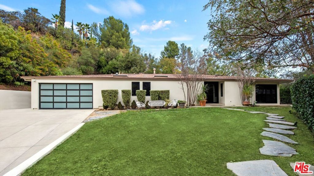 Hilltop Sanctuary nestled in the prestigious "Clark Gable Estates" built in 2015 by Famed Architect Jon Brouse. Privately Gated Poolside Oasis. Furnished 4 Bed 4.5 Bath includes separate Bungalow + Office. Single level Designer Dream home, 7ft Glass Pivot Door Entry & Open Floor Plan, Fleetwood Glass Doors disappear into walls to create a Flowing Indoor/Outdoor Lifestyle. En-suite Bedrooms, Master Suite includes Elegant Bath equipped w/ freestanding tub by Albert Napoli, Walk in Shower, Pivoting Wall accesses adjoining private room for use as Office, Yoga Studio. Floors & ceilings of Distressed French Oak. Sky lights, Sexy 5' Linear Fireplace. Speakers indoor/out. Chef's Kitchen, Stainless Steel Appliances, Large Center Island w/ bar seating, Pocket Windows, Glass Walls open to Lush Pool Area, Wood Decking, Water Features, Heated Bar, Multiple Patios w/ built-in seating, Fire Pit, Outdoor Kitchen, Guest House w/ pocket windows that vanish open to a Poolside Bar. The epitome of luxury, offering a serene and sophisticated lifestyle in one of the most exclusive settings.