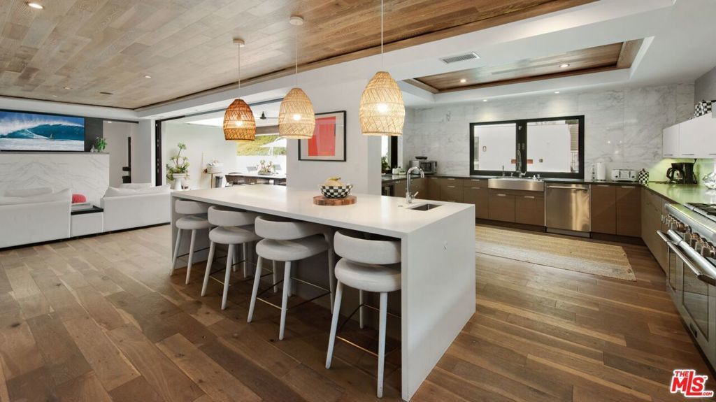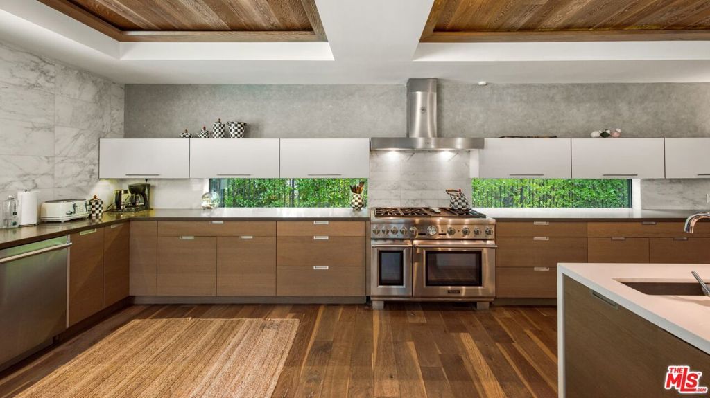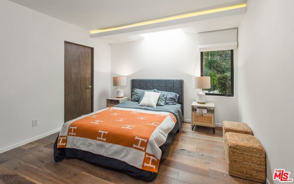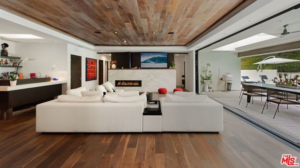 Hilltop Sanctuary nestled in the prestigious "Clark Gable Estates" built in 2015 by Famed Architect Jon Brouse. Privately Gated Poolside Oasis. Furnished 4 Bed 4.5 Bath includes separate Bungalow + Office. Single level Designer Dream home, 7ft Glass Pivot Door Entry & Open Floor Plan, Fleetwood Glass Doors disappear into walls to create a Flowing Indoor/Outdoor Lifestyle. En-suite Bedrooms, Master Suite includes Elegant Bath equipped w/ freestanding tub by Albert Napoli, Walk in Shower, Pivoting Wall accesses adjoining private room for use as Office, Yoga Studio. Floors & ceilings of Distressed French Oak. Sky lights, Sexy 5' Linear Fireplace. Speakers indoor/out. Chef's Kitchen, Stainless Steel Appliances, Large Center Island w/ bar seating, Pocket Windows, Glass Walls open to Lush Pool Area, Wood Decking, Water Features, Heated Bar, Multiple Patios w/ built-in seating, Fire Pit, Outdoor Kitchen, Guest House w/ pocket windows that vanish open to a Poolside Bar. The epitome of luxury, offering a serene and sophisticated lifestyle in one of the most exclusive settings.