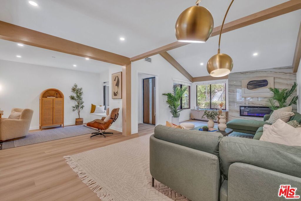 Pristine renovation in one of Culver City's most desirable communities. Raintree Townhomes is a gated, guard-attended enclave known for its private lake, lush landscaping, and tranquil walking paths that create a true sense of retreat. This beautifully updated tri-level townhome lives like a single-family residence, offering generous space, privacy, and thoughtful design throughout. The main living area showcases soaring pitched ceilings, new luxury vinyl flooring, and elegant box beam detailing across the first floor. A stunning marbled mantel anchors the space, featuring a sleek modern LED electric fireplace. A dedicated office with a built-in window nook overlooks serene greenery an ideal setting for work or quiet reflection. The newly reimagined kitchen embraces an open-concept design with high-grade custom cabinetry, a spacious center island perfect for entertaining with additional storage, and stylish white Forno Espresso stainless steel appliances accented by elegant antique brass finishes. Enjoy seamless indoor-outdoor living from the spacious balcony off the formal dining room perfect for grilling or dining al fresco. All kitchen and bathroom spaces have been tastefully updated with new vanities, fixtures, finishes, and lighting. The main level also features a formal dining area, the private office with custom cushion seating, and a beautifully renovated bathroom with a newly tiled shower. The lower level offers an expansive flex space with double-door entry, walk-in closet, and en-suite bath ideal for studio-style living, a guest retreat, home office, or creative space. A private two-car garage & 220 plug for EV charging with direct access and additional storage adds everyday convenience. The top floor presents a bright, light-filled layout with soaring ceilings, three generously sized bedrooms, and two beautifully appointed full bathrooms. Additional upgrades include new dual-pane windows, new water heater and a stackable washer and dryer conveniently located inside the first-floor bathroom. A rare opportunity to own a truly turnkey home in a resort-like community. Residents enjoy beautifully maintained grounds with scenic walking trails, streams, a private lake, tennis courts, pool, clubhouse, and recreation areas with billiards and ping pong. The HOA includes internet and basic cable, earthquake insurance, and maintenance of the common grounds. No rental restrictions, with a minimum lease term of 30 days.
