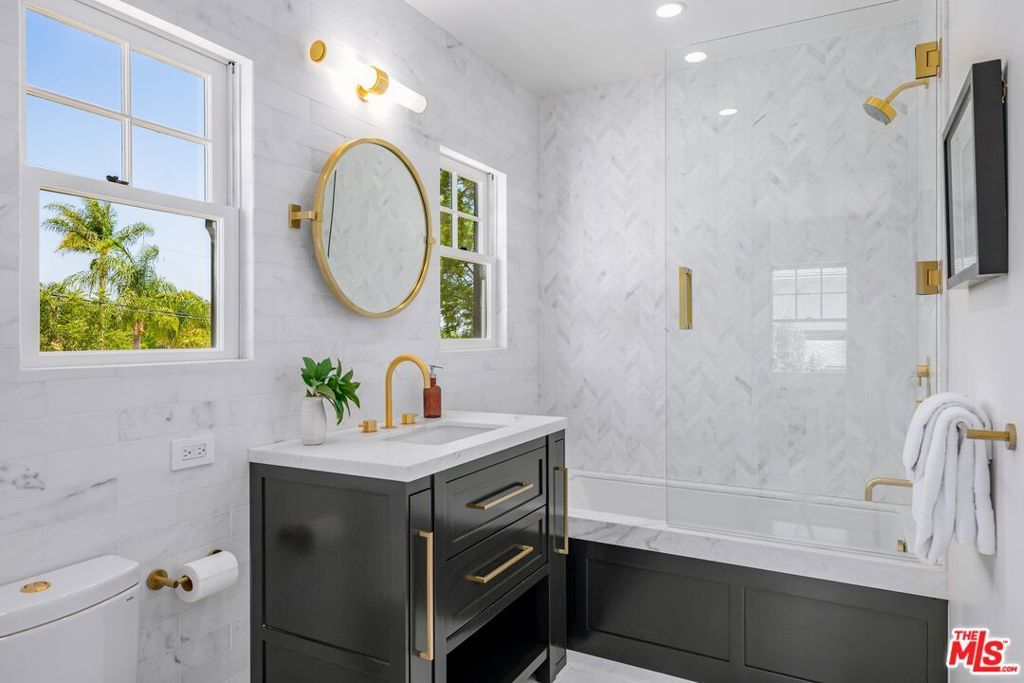 Restored, extensively renovated, walled and gated 1920's Colonial in Sunset Square with 4 bedrooms, 5 baths, and large pool. The property features a formal entry, light oak herringbone floors, custom marble fireplace, large dining room, chef's kitchen with extensive island, premium appliances, double sinks, double dishwashers, and the finest fixtures. A separate breakfast room opens to custom family/media room. A wine chamber is downstairs. Upstairs a dramatic glass and steel atrium leads to 3 bedroom suites including primary suite which expands across the entire south side of the house with private terrace, large custom closet, freestanding and double vanities The outdoor areas are distinctly landscaped, with over-sized pool, outdoor kitchen/BBQ, formal dining area, and spacious play area. And finally a one-bedroom, one bath guest house with fully-equipped designer kitchen. Perfect for a work-from-home office, music studio or creative space.
