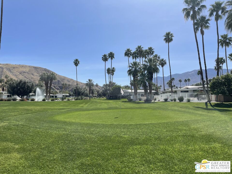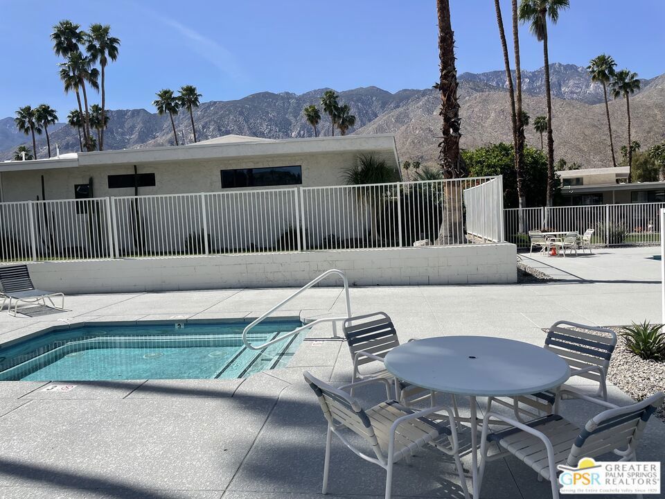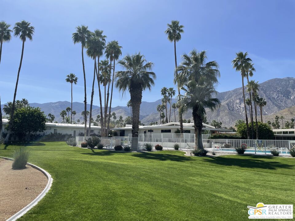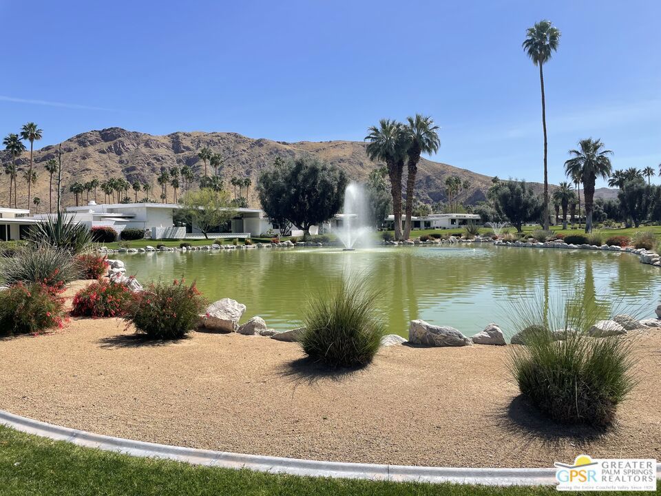 South Palm Springs mid-century gem designed by Charles Du Bois. This freestanding almost 2600 sq. ft. condominium feels like a single-family residence. The home features a primary bedroom suite with walk-in closet, a large second bedroom, and a converted third bedroom functioning as den and office space. A generous kitchen, built-in bar, clerestory windows, double front doors, and private patio with open glass doorways make for easy indoor/outdoor living and entertaining. Canyon Estates offers landscaped open green areas surrounding 15 pools and 12 spas. Recreational facilities include two tennis courts, a pickleball court, a 9-Hole Par-3 golf course, clubhouse, fitness center, library, and game room. Additionally, two ponds and spectacular mountain views highlight the beauty of this location.