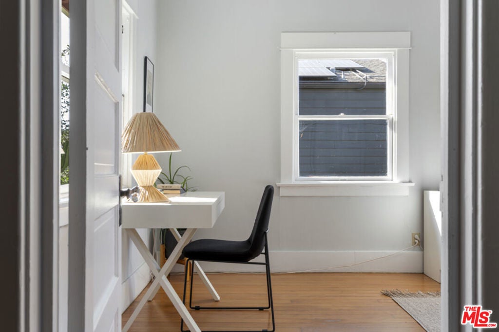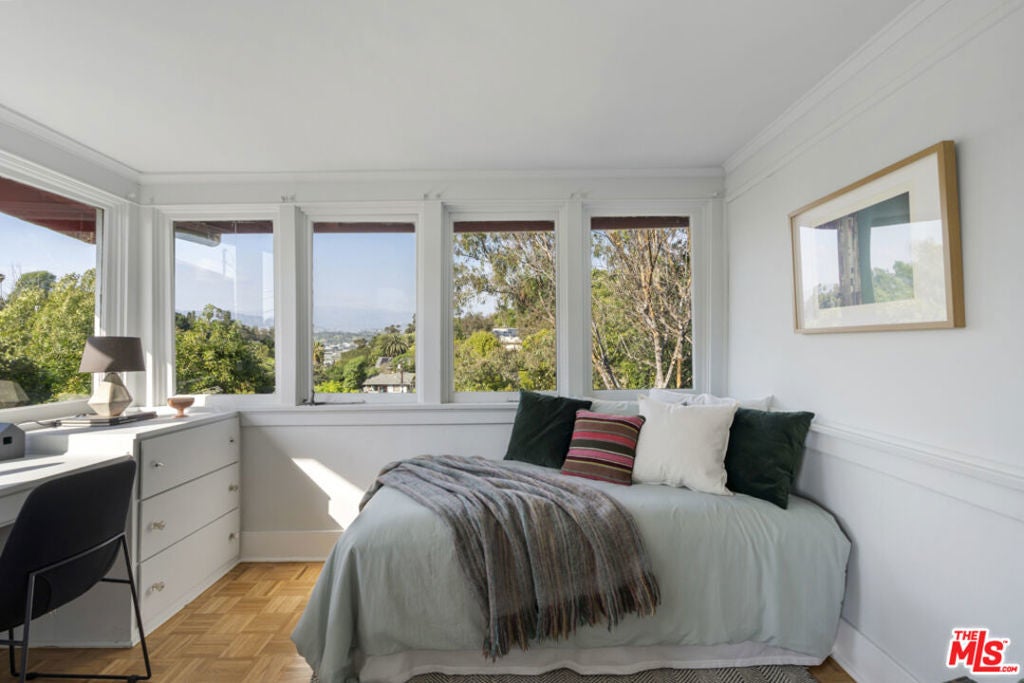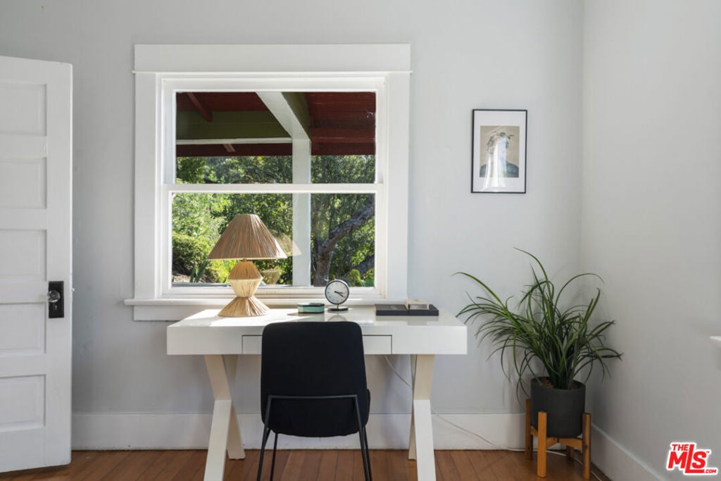 Perfect starter home in coveted Elysian Heights. Tucked into a quiet hillside with views to the north and south, this classic 1912 bungalow offers a rare opportunity to reimagine a piece of the neighborhood's early charm. A welcoming front porch invites slow mornings with coffee or relaxed evenings with a glass of wine, as owls call from the canyon and hawks ride the thermals above Kite Hill. The home has been recently painted inside and out, and the wood floors beautifully refinished. Enter directly into the living room, anchored by a whimsical decorative fireplace, and continue into the kitchen, a generous space awaiting your vision. The primary bedroom is unusually large and may have originally been 2 bedrooms at an earlier time. A "second bedroom" is tandem, and more akin to a sleeping porch or study, offering a peaceful spot to take in the soft northern light and mountain vistas. The lower level, accessed from the backyard, is a perfect project room or workshop. And, the yard itself has both a gated dog-friendly area and an inviting space to entertain. Beyond, the wooded lot descends to Donaldson and presents a dream canvas for landscaping, with ample space to imagine the addition of an ADU. Avon Terrace is an opportunity to shape something truly your own in one of Elysian Heights' most beloved hillside enclaves.