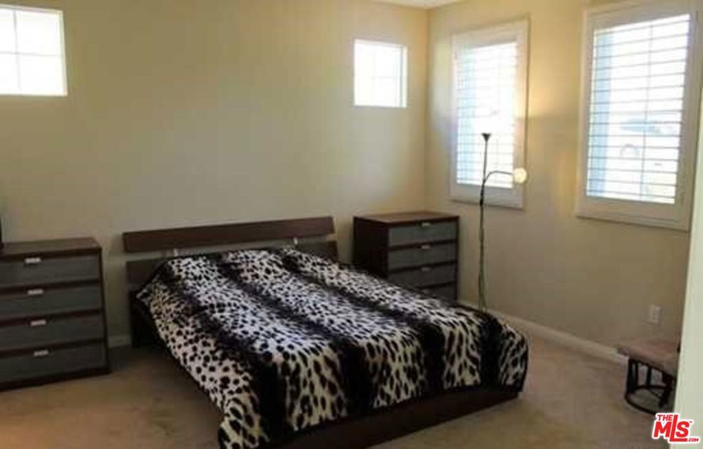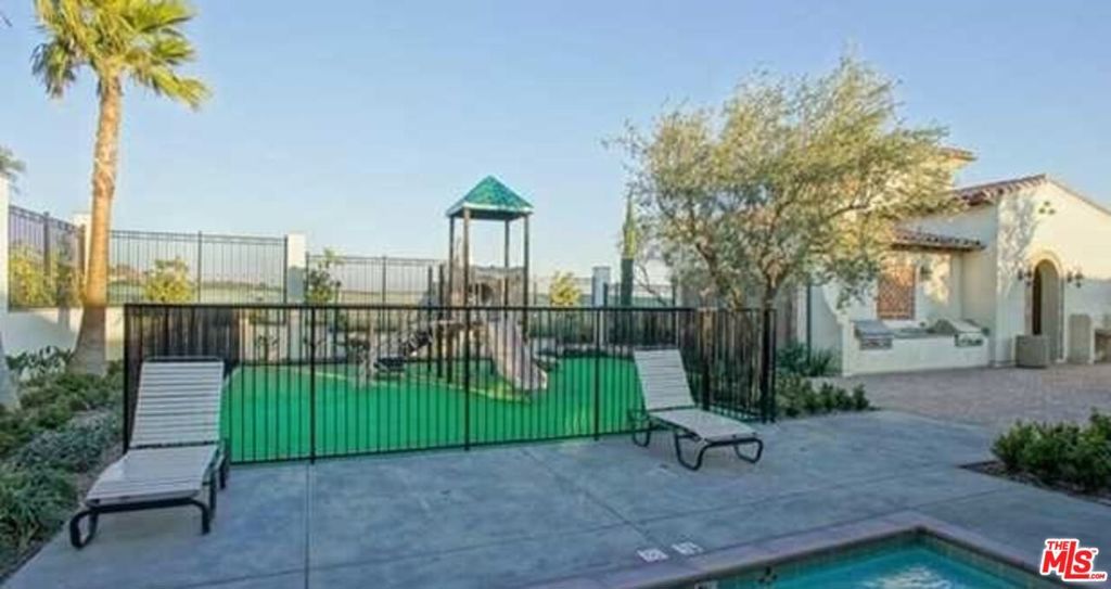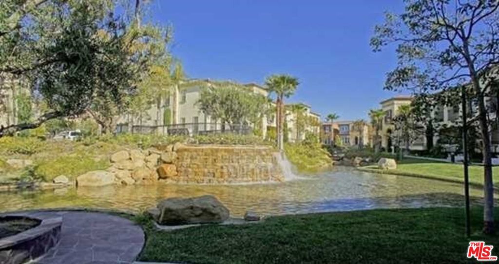 Beautiful two-level townhome located in the highly sought-after, guard-gated Seville at Aldea community in Porter Ranch. Built in 2013, this well-appointed home offers 4 bedrooms and 3 bathrooms, including a convenient first-floor bedroom and bath perfect for guests or a home office. Interior highlights include a designer entry door, plantation shutters throughout, and an oversized upgraded patio ideal for outdoor entertaining. The gourmet kitchen features granite countertops, a full backsplash, and stainless steel GE Energy Star appliances, and opens to the spacious living and dining areas. Upstairs, you'll find three additional bedrooms, including a generous primary suite with dual sinks, Corian countertops, and a large mirrored walk-in closet. A full bathroom with dual sinks and a laundry room with a side-by-side washer and dryer complete the second level. Community amenities include a resort-style pool and spa, children's wading pool, outdoor kitchen with BBQs, covered lounge area, fireplace, and playground. Conveniently located near Porter Ranch Community School (K8) and Porter Ranch Town Center.