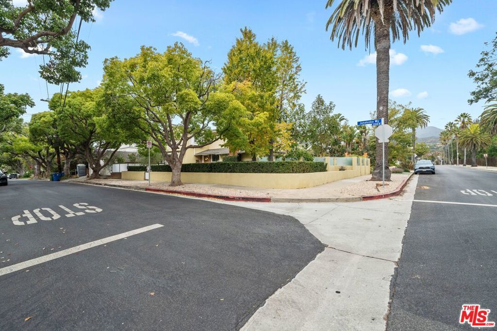 Traditional 2 story home on a 6,727 sq. ft. FLAT CORNER LOT in the El Medio Bluffs area of Pacific Palisades - just a minutes walk to Palisades High School and a couple of minutes to Palisades Village. 3 BR, 2 BA upstairs and 1 BR, 1 BA downstairs. Living room with stone fireplace & Den open to private courtyard. Remodeled kitchen & Dining area open to covered patio with rear garden & Fountain. Air Conditioning & Heating (2 zone), Enviroblind retractable security shutters, remodeled kitchen and bathroom. Great family home as is - but also an old mined diamond in the ruff for a builder or owner who wants to modernize and expand on a A+ corner lot location in Prime Palisades.