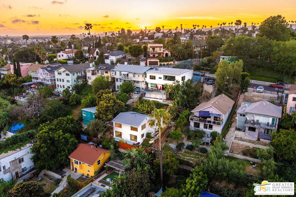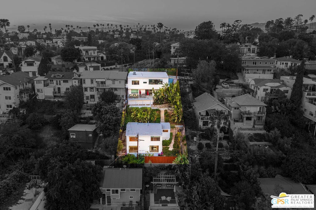 Seize this rare opportunity to own one primary residence and a private, detached ADU all on one lot, providing many lifestyle choices and investment opportunities. Live in an epicenter Silver Lake location, between Silver Lake Blvd and Sunset, with unobstructed and expansive views of downtown, the Silver Lake hills and beyond. The main contemporary 3BR, 3 full en-suite bath, upper house is striking, bright, and has a dramatic open floor plan with high ceilings and crisp finishes. The main living space offers varied entertaining possibilities and is quintessential LA living at its best! In addition to the main living area, an adjacent bedroom or den offers quiet when privacy calls. The Primary bedroom and a large guest BR are located on the lower level with a cozy TV/den area that opens onto an inviting deck for entertaining, dining or just enjoying the views and breezes outdoors. The lower 2BR, 2BA ADU house also enjoys expansive views of the hills and surrounding mountains, is private and accessed through a hillside of native and drought-tolerant landscaping. There are many use options--it has been a great rental property or could be an in-law, au pair, home office or whatever you need it to be. This is a great opportunity to live in the center of Silver Lake within close proximity to many of the eclectic shops and signature restaurants that make this such a vibrant neighborhood.
