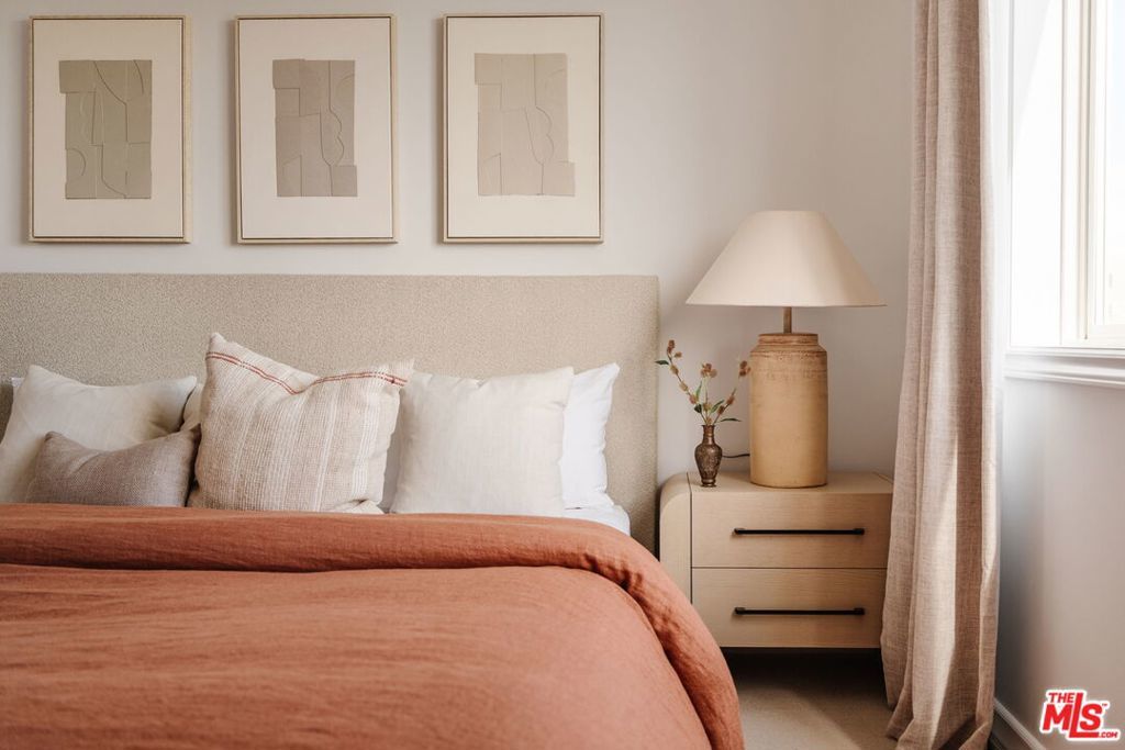 RARE REMODELED CORNER PENTHOUSE. Located in prime Beverlywood-adjacent, this designer-done smart home is fully renovated and offers sweeping views of the Hollywood Hills, snow-capped mountains, and the downtown skyline. Spacious, quiet, and soaked in natural sunlight, this unit features a thoughtfully-designed open layout with a living room anchored by a fireplace and custom built-ins, opening to a private balcony. The updated kitchen connects seamlessly to the dining and living areas with clean modern finishes and new top-of-the-line appliances. The primary suite includes a walk-in closet, motorized blackout shades, and an en-suite bath with dual sinks and separate tub and shower, while two additional bedrooms (including one with a Juliette balcony and floor-to-ceiling windows) provide flexibility for guests, family, or workspace. The unit also features the following new additions: automatic smart toilets, Nest climate control, app-controlled Phillips Hue lighting, recessed LED strip lighting in the entry closet, walk-in closet, and laundry area, USB-C and USB outlets, new carpets, and updated sconces and light fixtures. Additional amenities include in-unit laundry with folding and drying stations, two-car tandem parking in a secure subterranean garage, two large private storage lockers, and controlled access. Centrally located near Beverly Hills, Century City, and the shops and restaurants of Pico-Robertson.