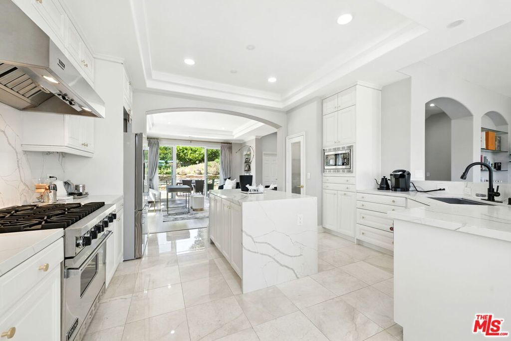 END UNIT! Exquisite remodel with beautiful wide-open views from every room and abundant natural light throughout. Nestled within Toscana, one of Malibu's most coveted gated communities. This contemporary 2-bedroom, 3-bath residence boasts spacious rooms, open-concept living and dining areas, perfect for entertaining or relaxing in style. The sophisticated chef's kitchen features a generous center island, Viking range, pantry, breakfast bar seating that flows seamlessly into a cozy family room, which opens to a private outdoor patio, one of the largest in the entire complex. Main living room area has beautiful end unit views, a large patio and private grassy yard. Ascend to the upper level, where you'll find a welcoming guest room and bath, a convenient laundry room along with a versatile bonus office/den area. The crowning jewel is the ocean view primary suite, complete with a delightful balcony, a spa-like bathroom showcasing a rejuvenating jacuzzi tub, glass enclosed shower, double-sided fireplace and a sizable walk-in closet for all your luxury needs. With soaring high ceilings and skylights, this home exudes elegance and warmth. There is an attached two car garage with storage. Residents of Toscana enjoy a wealth of community amenities, including a sparkling pool, recreation center and gym, all just a stone's throw from the vibrant offerings of Pepperdine University, Malibu Racquet Club, fine dining, trendy shops, Whole foods, hiking trails and beaches. Embrace the Malibu lifestyle that awaits you in this desirable gem of a community.